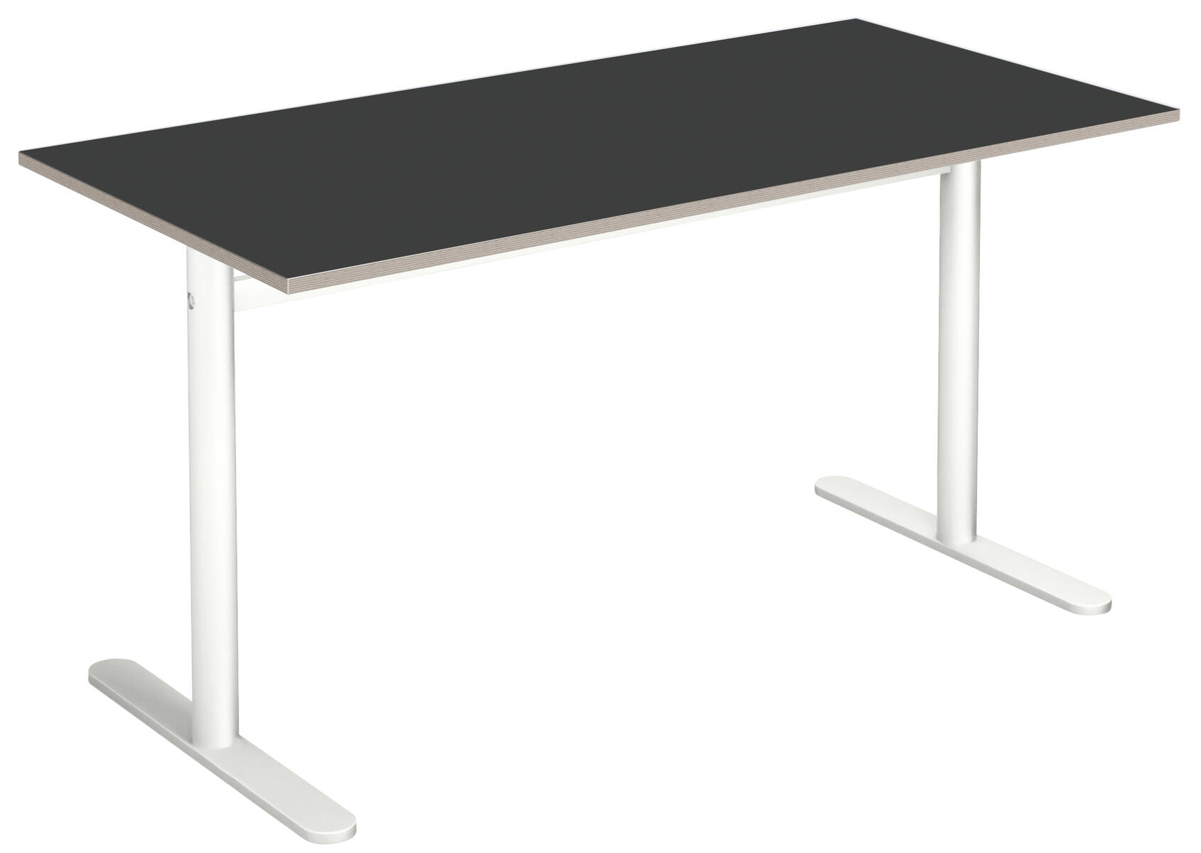 Bordplade i højtrykslaminat. T-understel lakeret i sort RAL 9005.