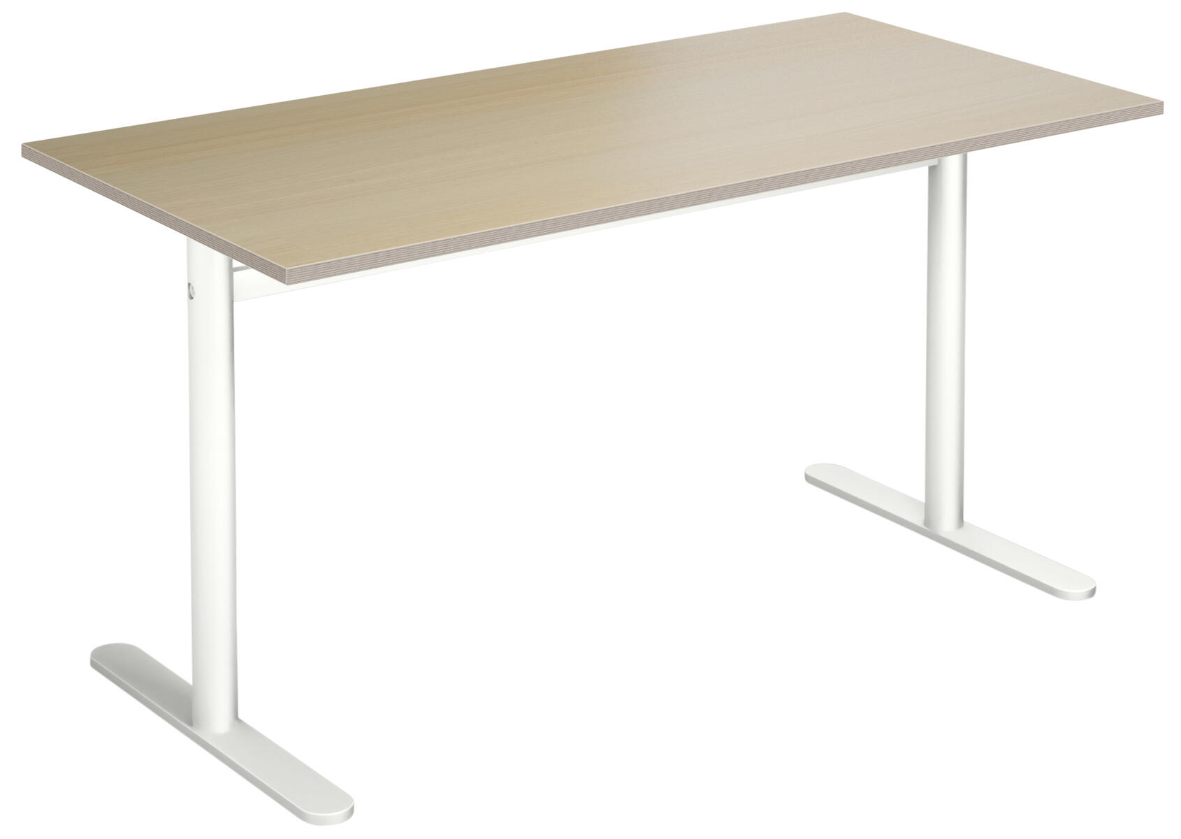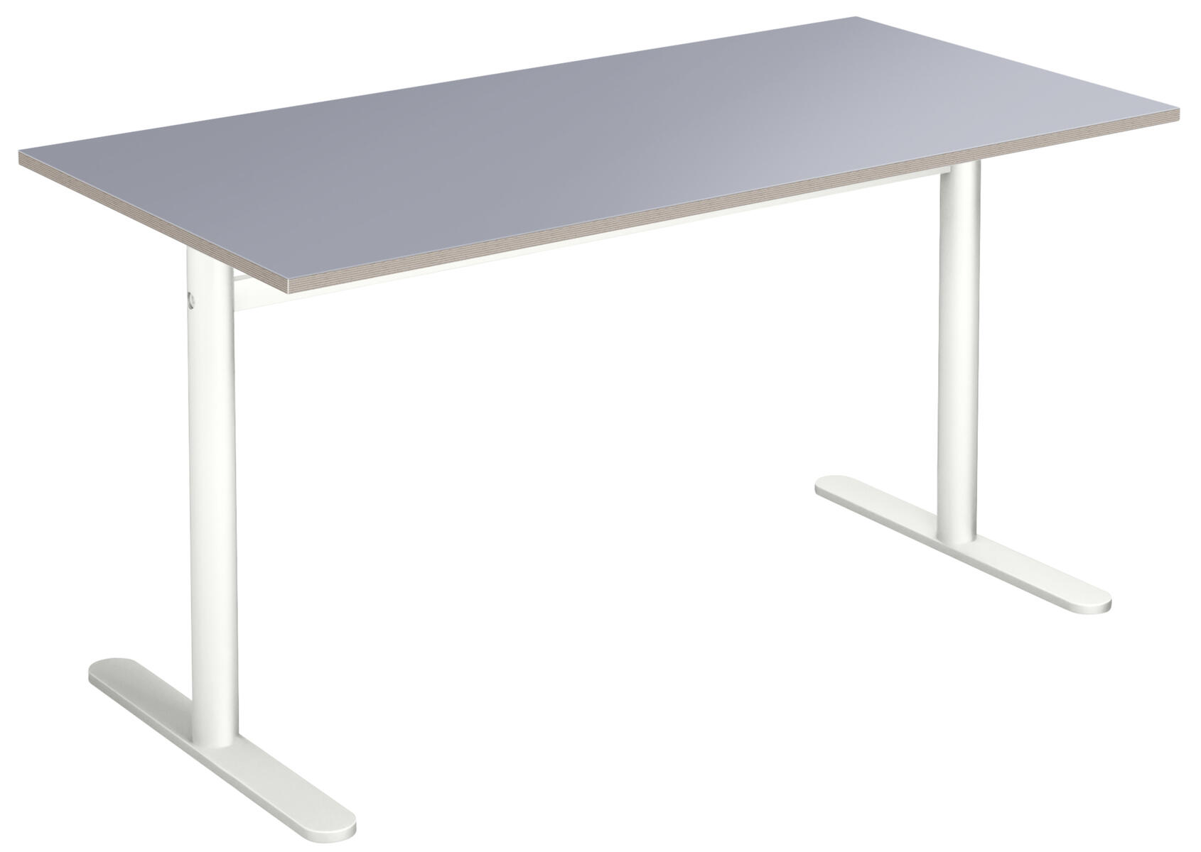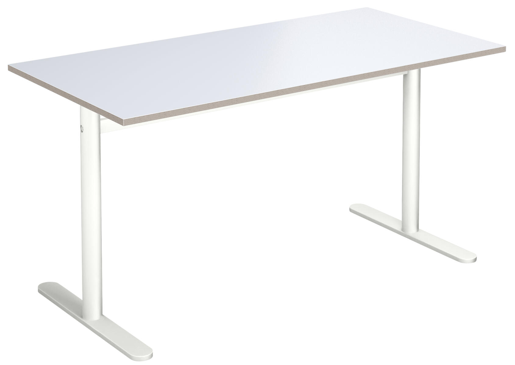 Bordplade i højtrykslaminat. T-understel lakeret i hvid RAL 9003.