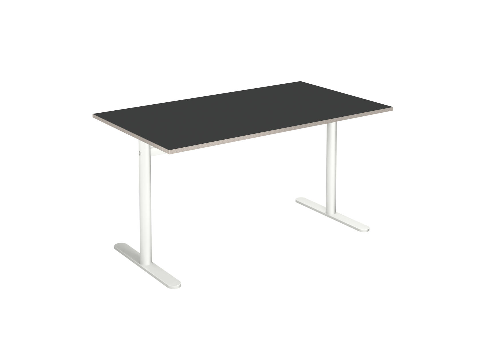 Bordplade i højtrykslaminat. T-understel lakeret i sort RAL 9005.