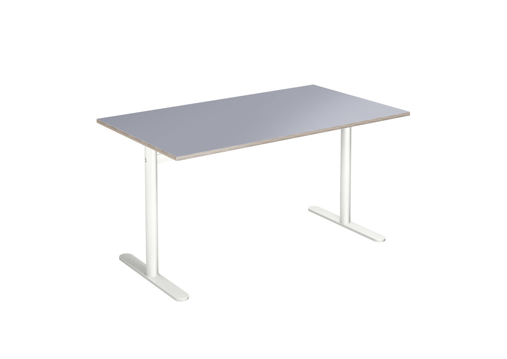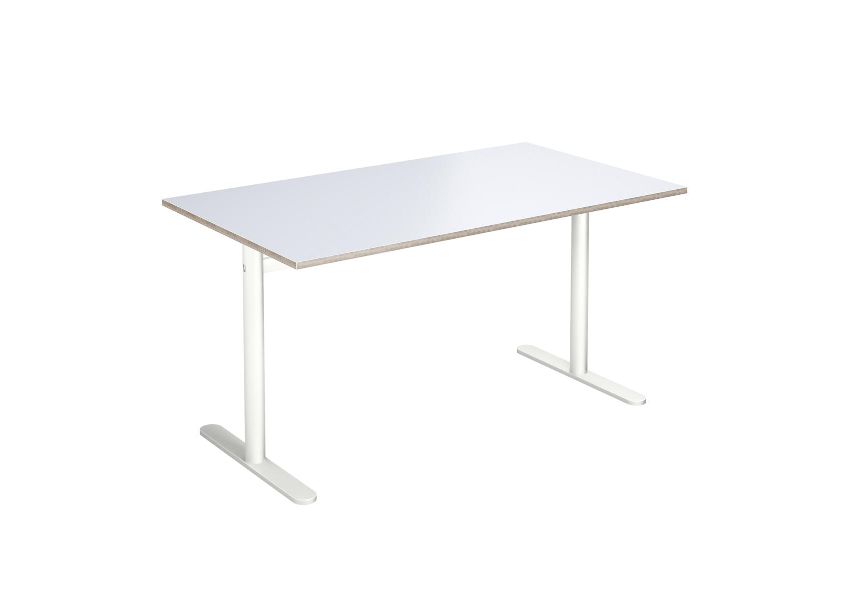 Bordplade i højtrykslaminat. T-understel lakeret i hvid RAL 9003.