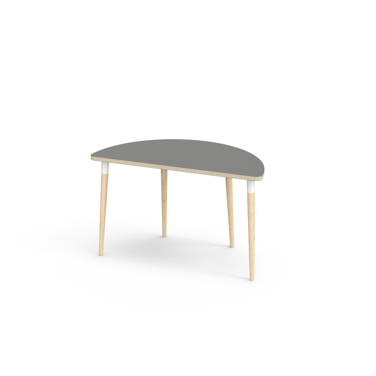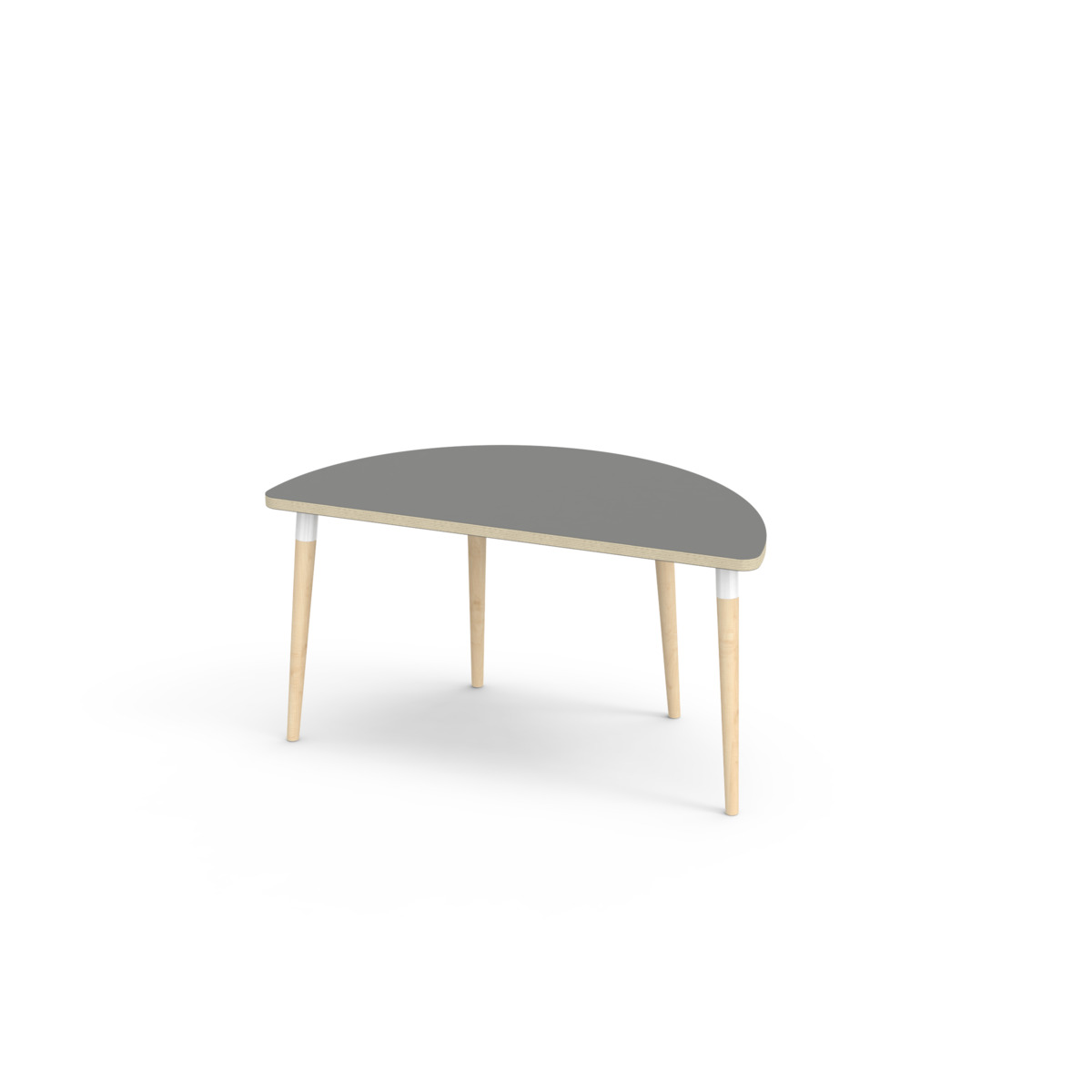 Bordplade belagt med akustik linoleum, hvilket giver en blød og behagelig overflade, samtidig med at den bidrager til en bedre lydmiljø. Med en hjørneradius på 40 mm får bordet et moderne og stilrent design. Benene er fremstillet af klarlakeret massiv birk og monteret i en robust sort manchet. Denne konstruktion sikre både stabilitet og holdbarhed. Benene er let vinklet ud mod bordpladens hjørner, hvilket giver bordet et unikt og æstetisk udseende. Monteringen er enkel og let – du skal blot fastgøre metaldelene i de forberedte monteringspunkter i bordpladen.