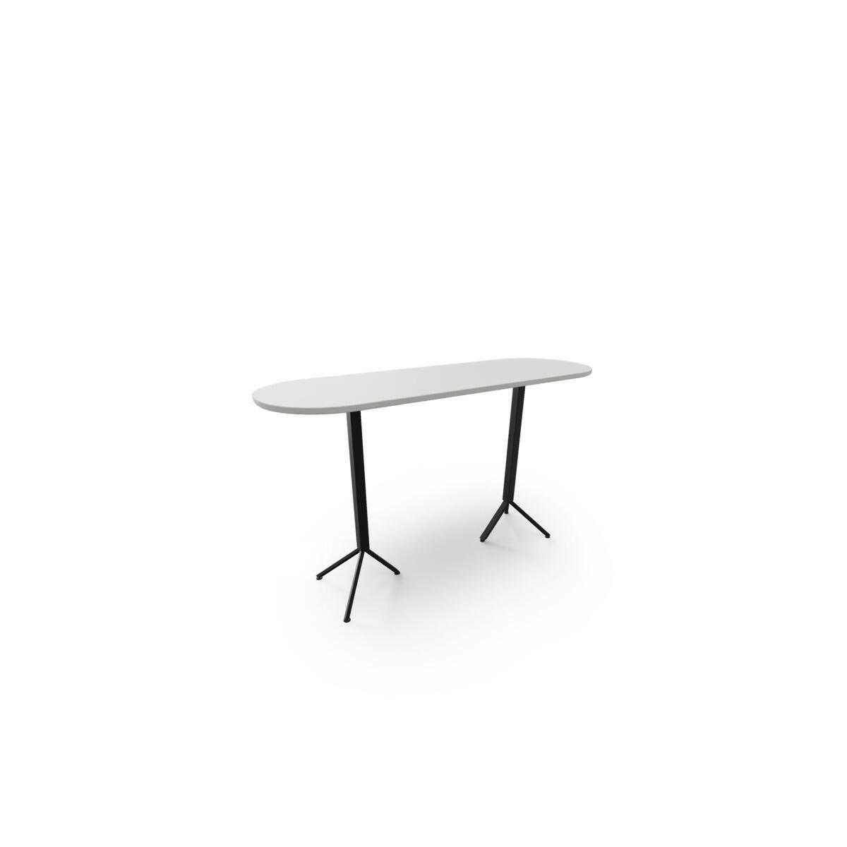 Tekla er et stilrent og stabilt bord med et svævende designudtryk. Den robuste konstruktion med vinklede ben giver høj stabilitet i alle miljøer. Vælg mellem højtrykslaminat eller NANO-plade. Højtrykslaminat har lige kanter, mens NANO har fasede kanter. Bord med NANO-plade har integreret kabel- og mediabrønd med hængslet låg i samme materiale som bordpladen. Stel i pulverlakeret metal.