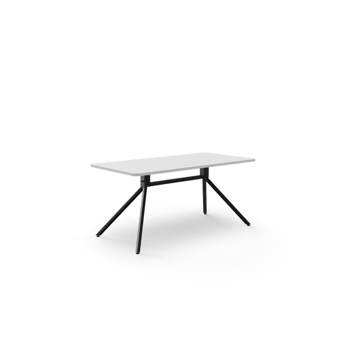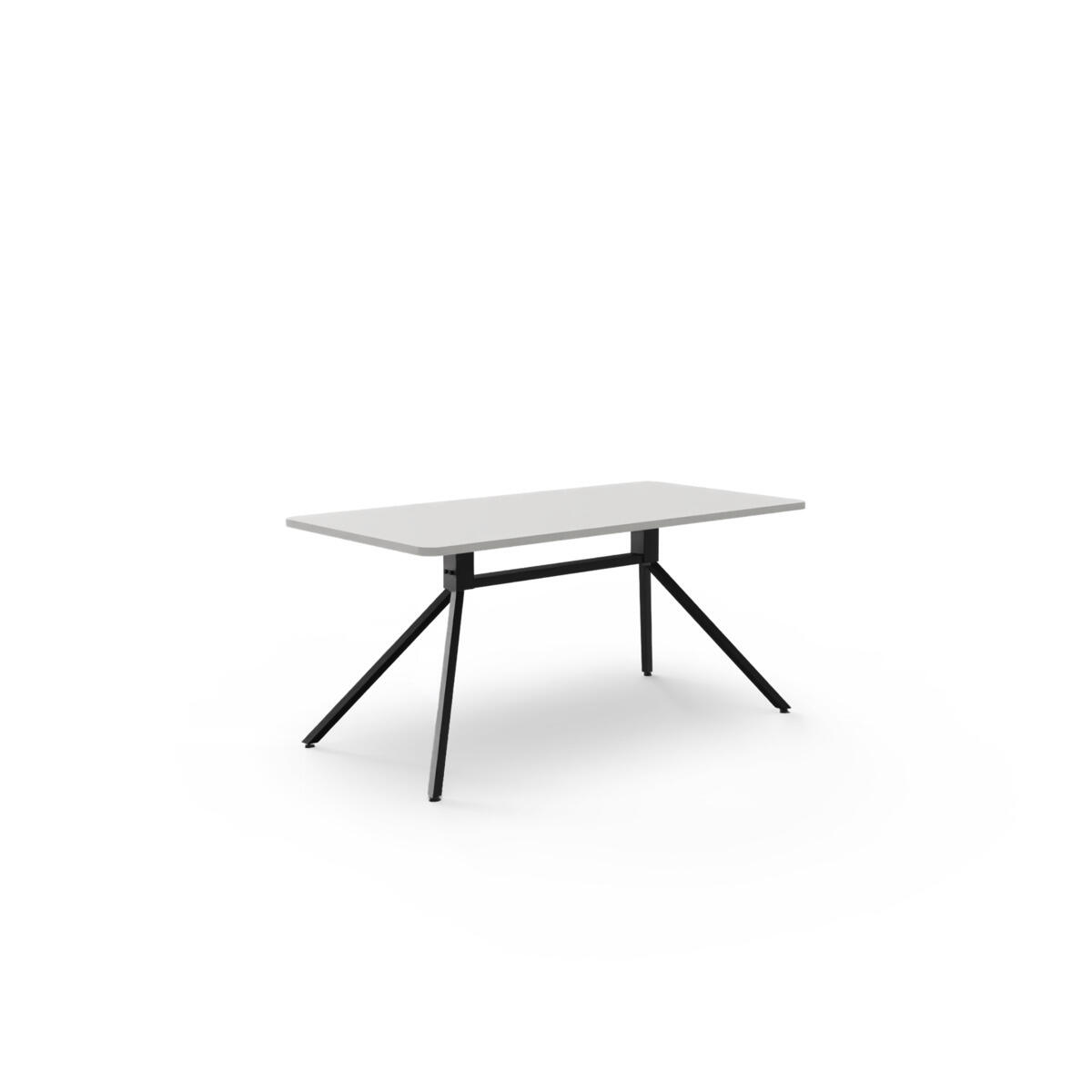 Tekla er et stilrent og stabilt bord med et svævende designudtryk. Den robuste konstruktion med vinklede ben giver høj stabilitet i alle miljøer. Vælg mellem højtrykslaminat eller NANO-plade. Højtrykslaminat har lige kanter, mens NANO har fasede kanter. Bord med NANO-plade har integreret kabel- og mediabrønd med hængslet låg i samme materiale som bordpladen. Stel i pulverlakeret metal.