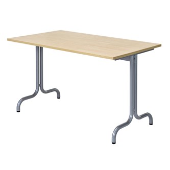 Drabant bord i højtrykslaminat. Findes også i linoleum Akustik. Højde 72 cm. Stel i sølv RAL9006. Lyddæmpende fødder.