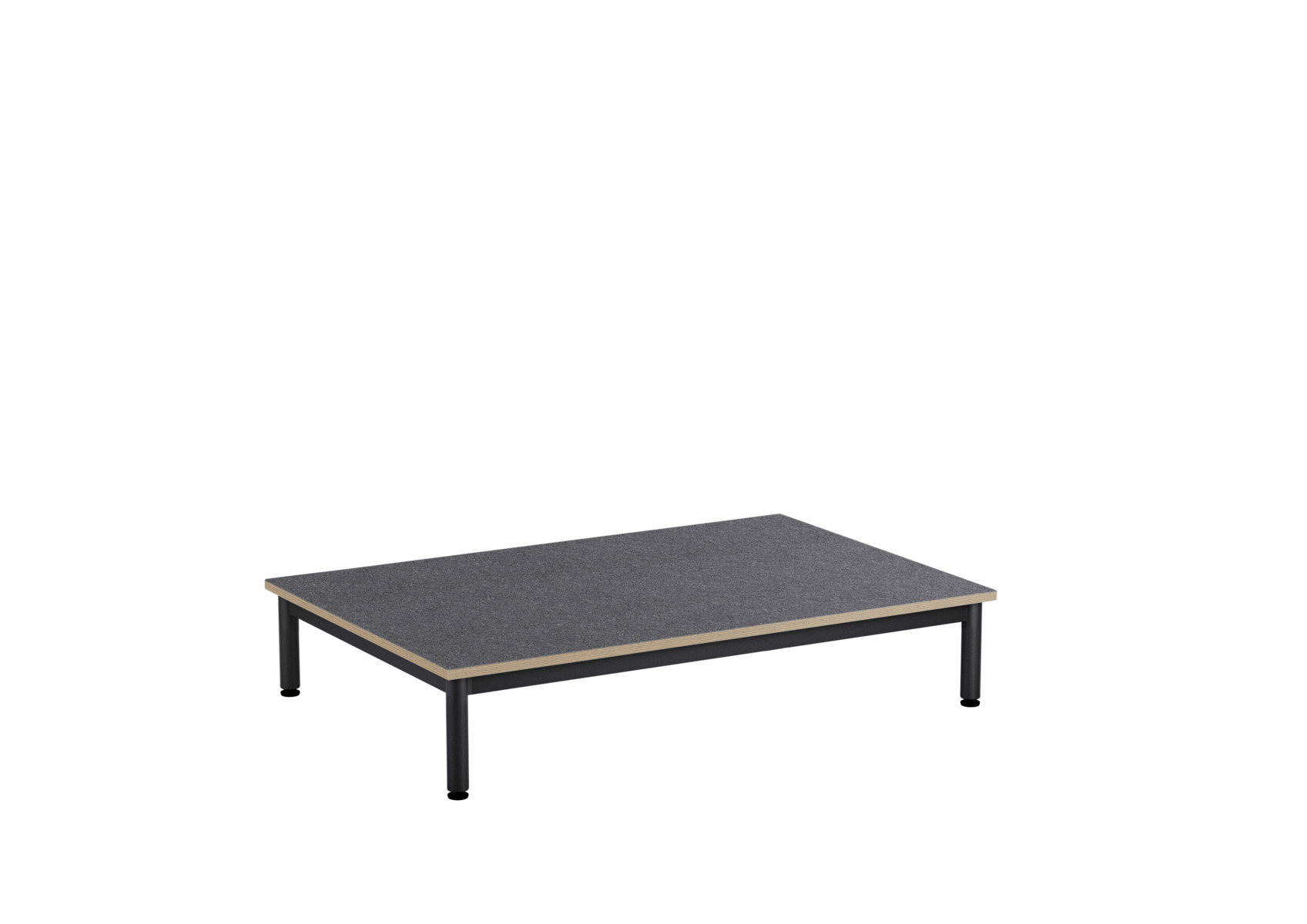 Et legebord med bordplade i akustik linoleum, der bidrager til en bedre akustik takket være bordpladens lyddæmpende egenskaber. Understel med ramme og ben i Ø40 mm, lakeret i sort. Justerbare fødder til tilpasning til ujævne overflader.