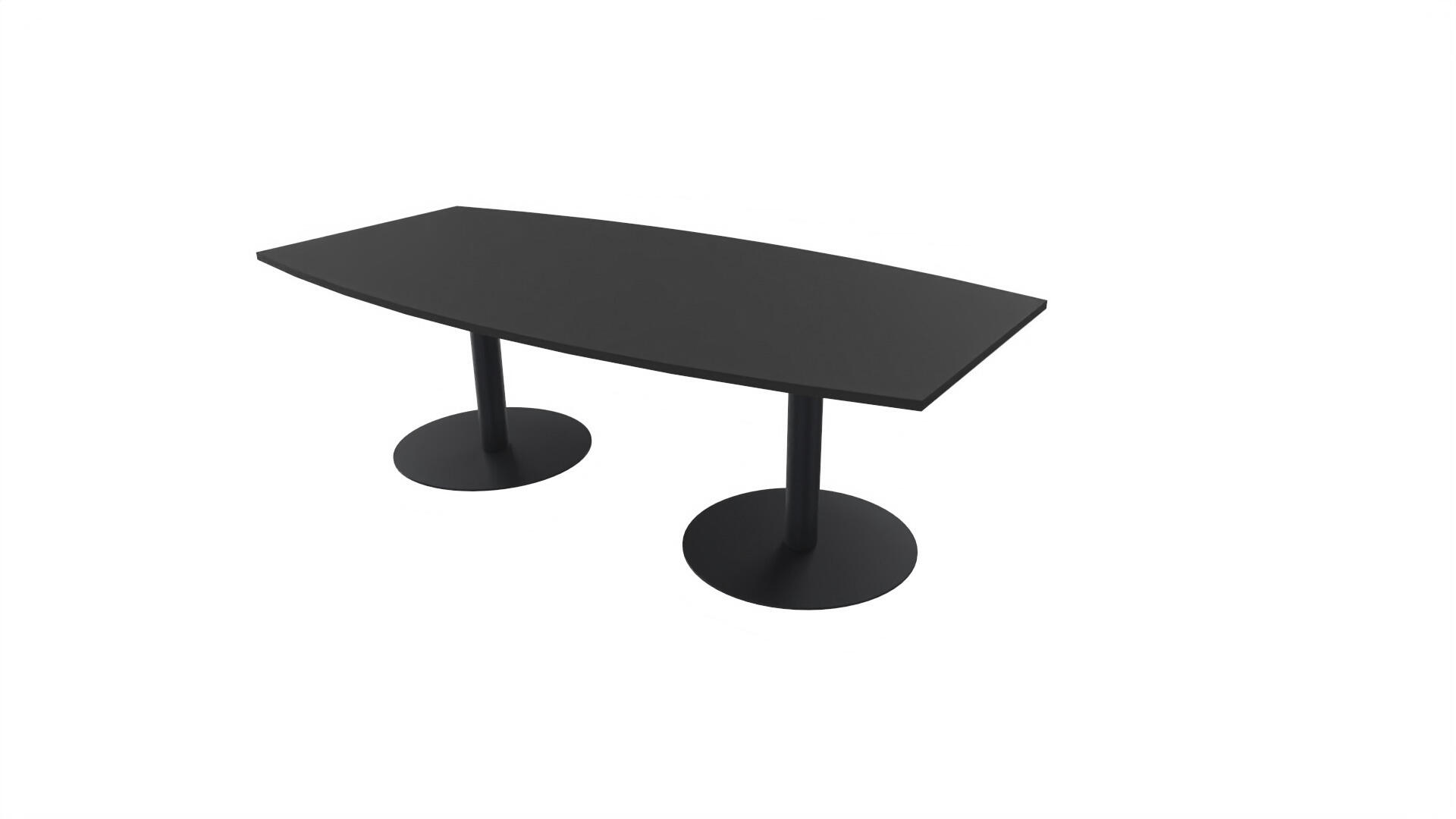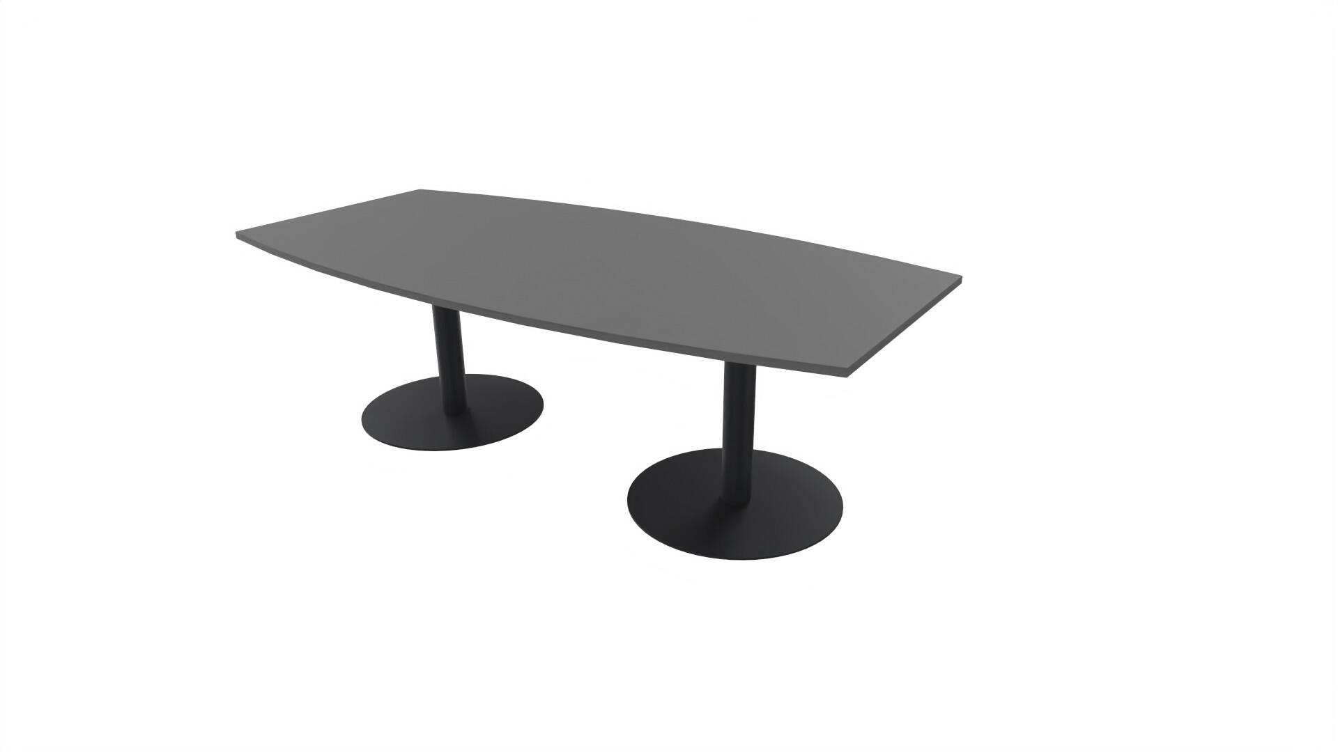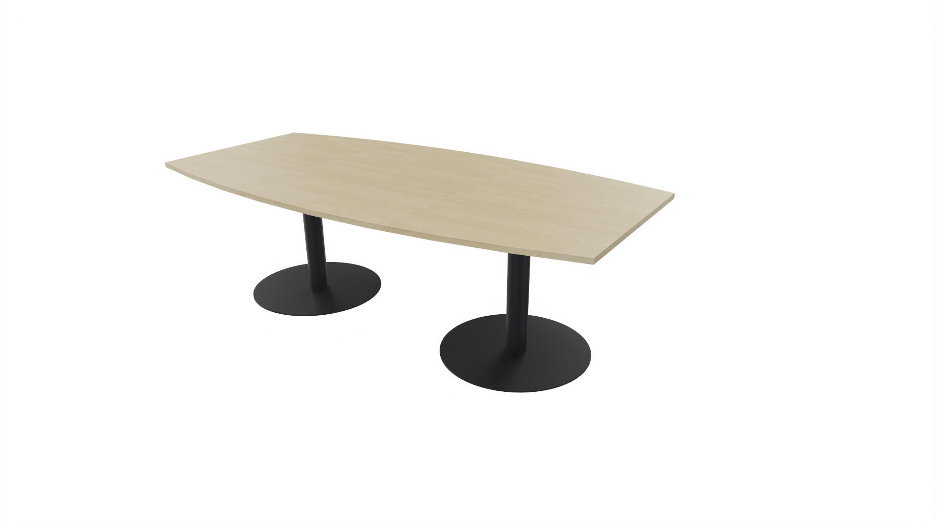 Et konferencebord med en bordplade som er smallere i den ene ende for at give alle frit udsyn mod f.eks. en skærm eller et whiteboard. Kerne af spånplade beklædt med laminat og ABS-kantliste. 2 søjleben Ø10,2 cm, fod Ø72 cm. Udover standardlaminat fås bordet også med et sort nanolaminat, som har en overflade, som er mat og modstandsdygtigt mod fingeraftryk. Som tilvalg fås også en mediaboks (32x15 cm) indfældet i bordet. Mediaboksen består af 2x 230V stikkontakter, 1x USB og 1x HDMI.