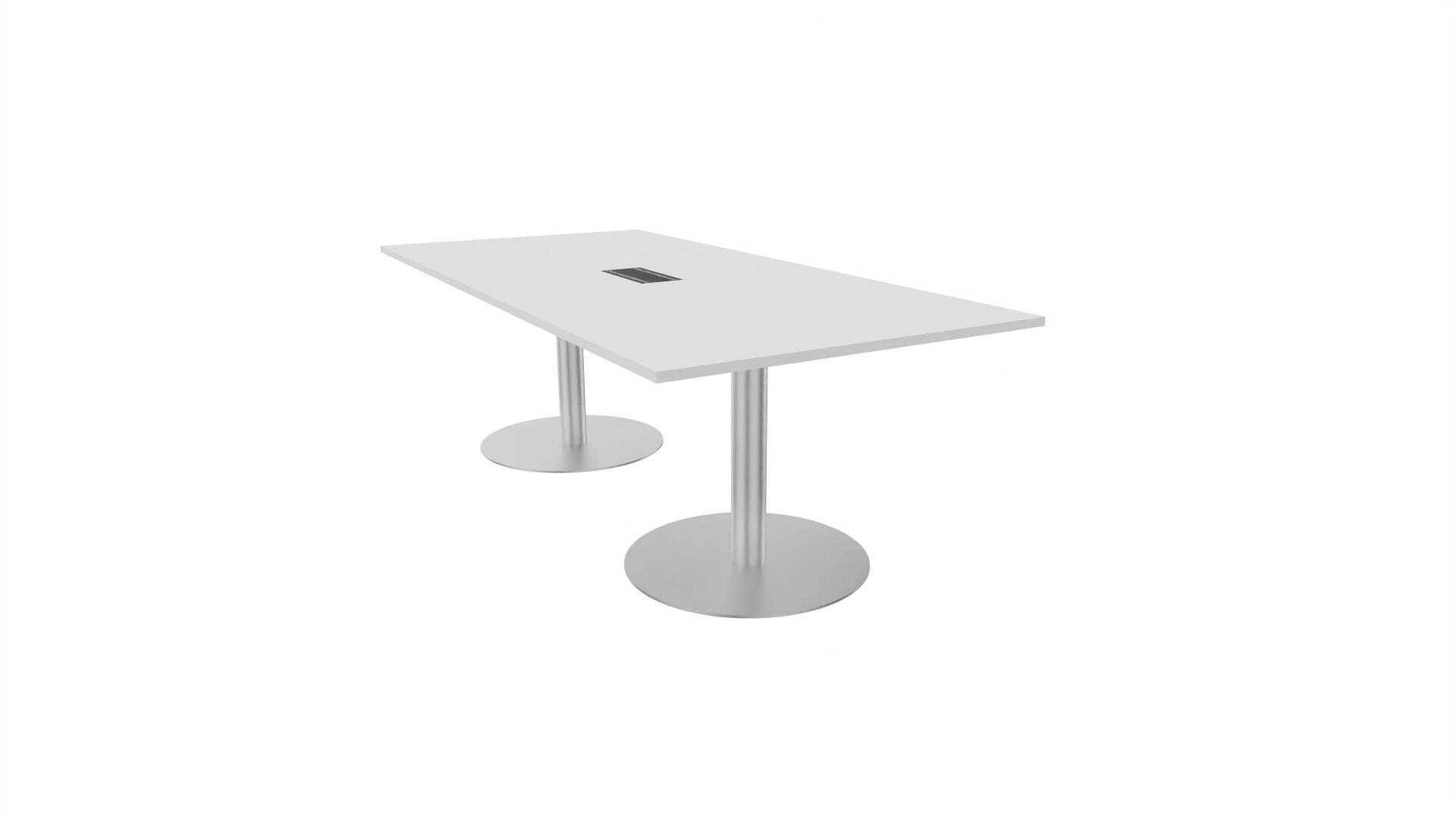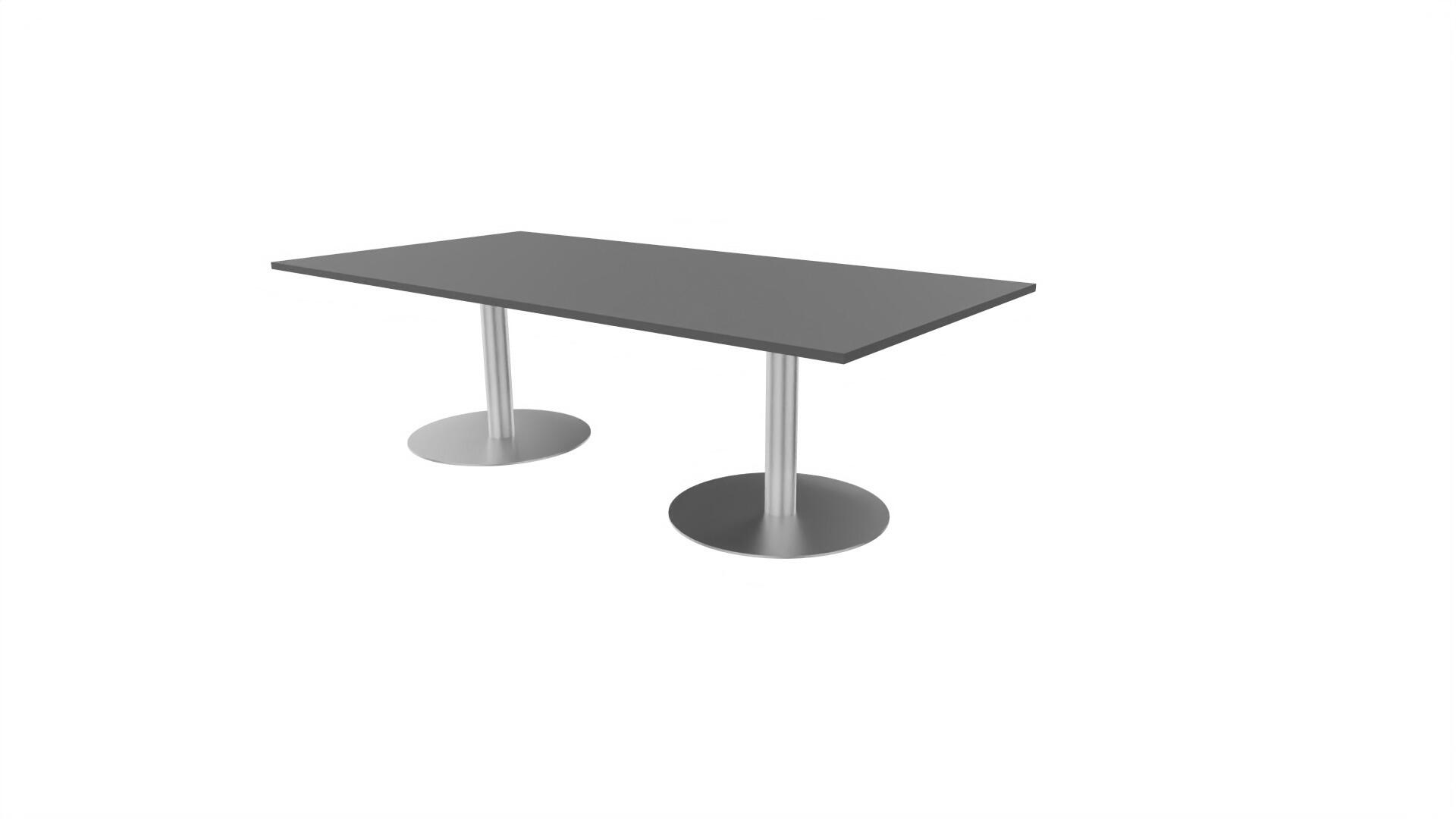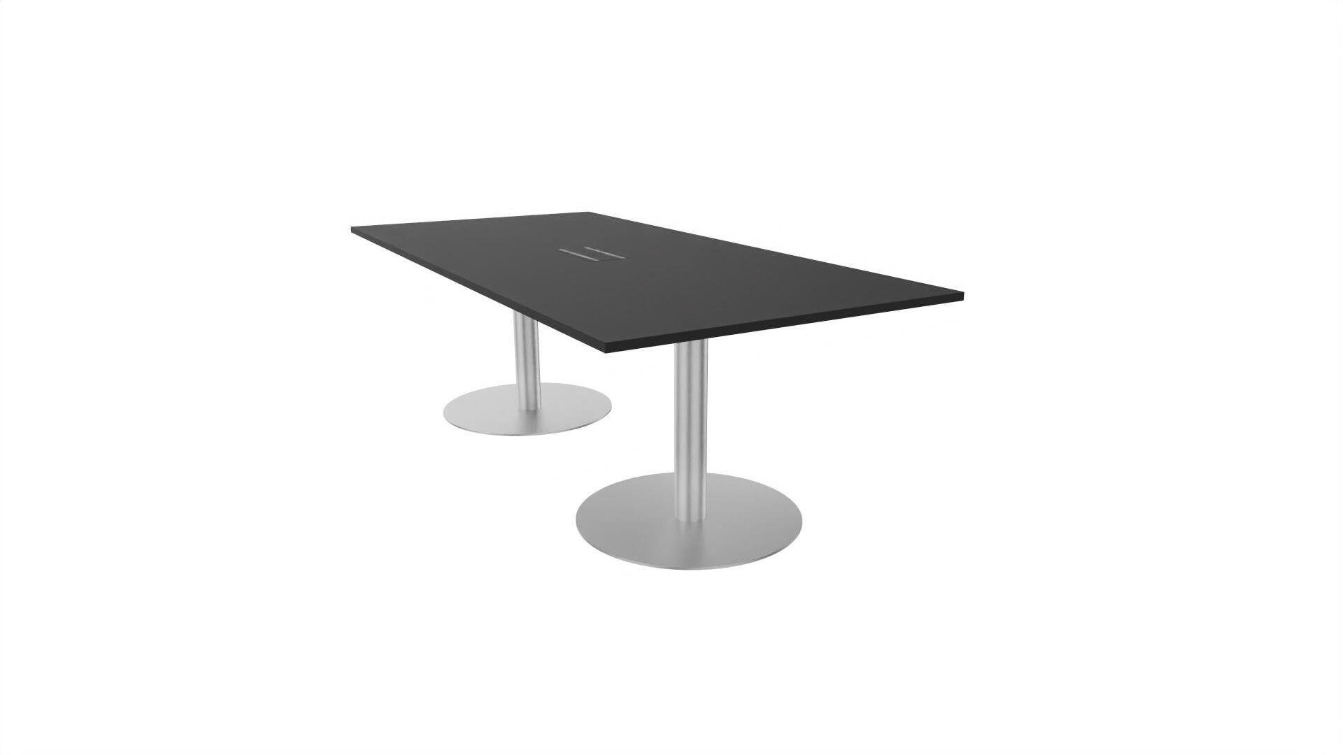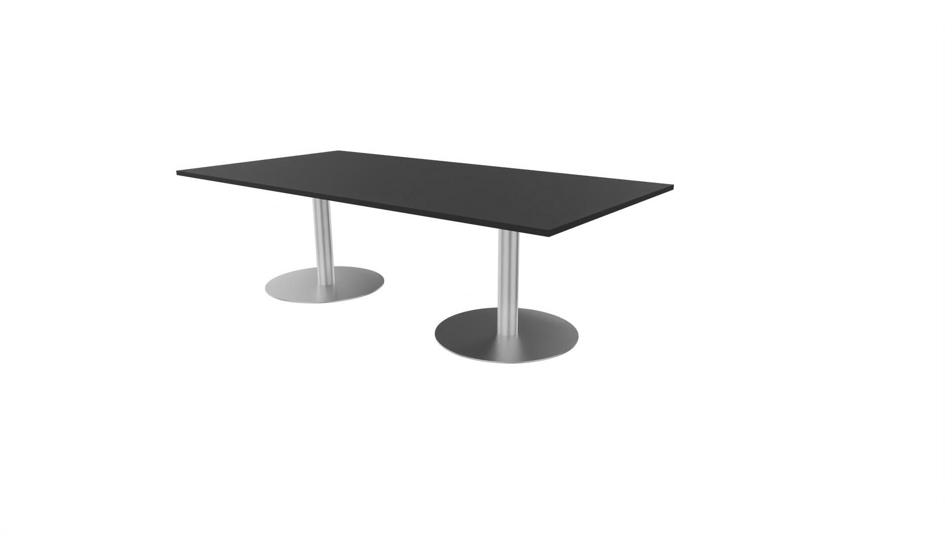 Et konferencebord med rektangulær bordplade og lige kant. Kerne af spånplade beklædt med laminat og ABS-kantliste. 2 søjleben Ø10,2 cm, fod Ø72 cm. Udover standardlaminat fås bordet også med et sort nanolaminat, som har en overflade, som er mat og modstandsdygtigt mod fingeraftryk. Som tilvalg fås også 2 mediabokse (32x15 cm) indfældet i bordet. Hver mediaboks består af 2x 230V stikkontakter, 1x USB og 1x HDMI.