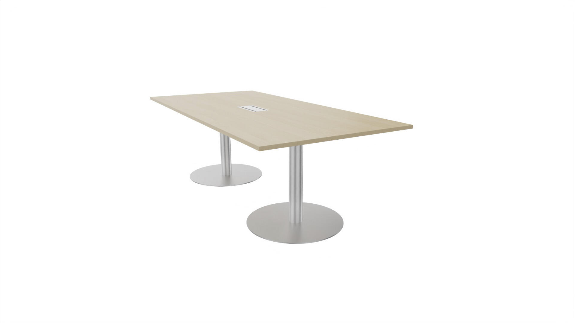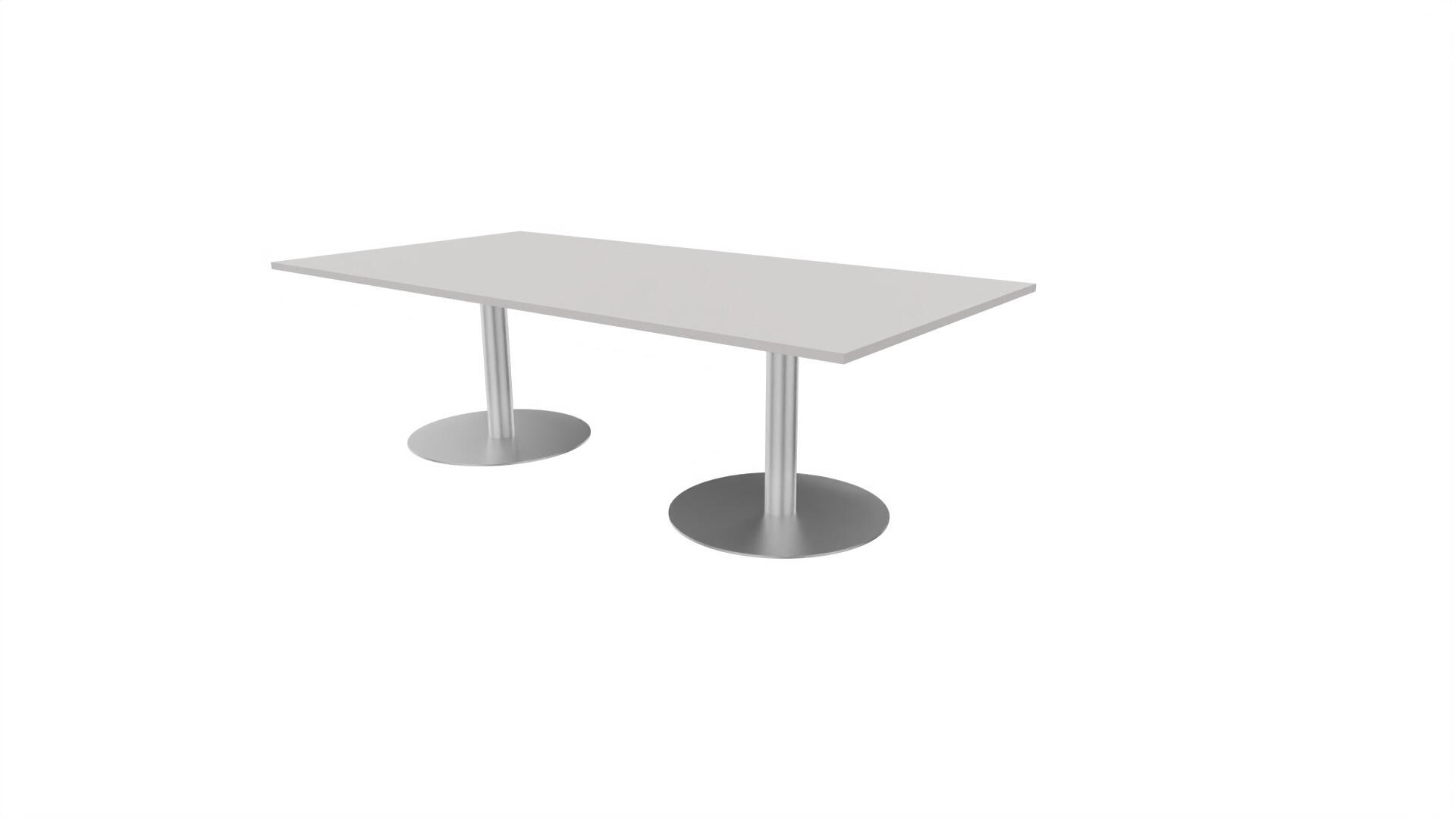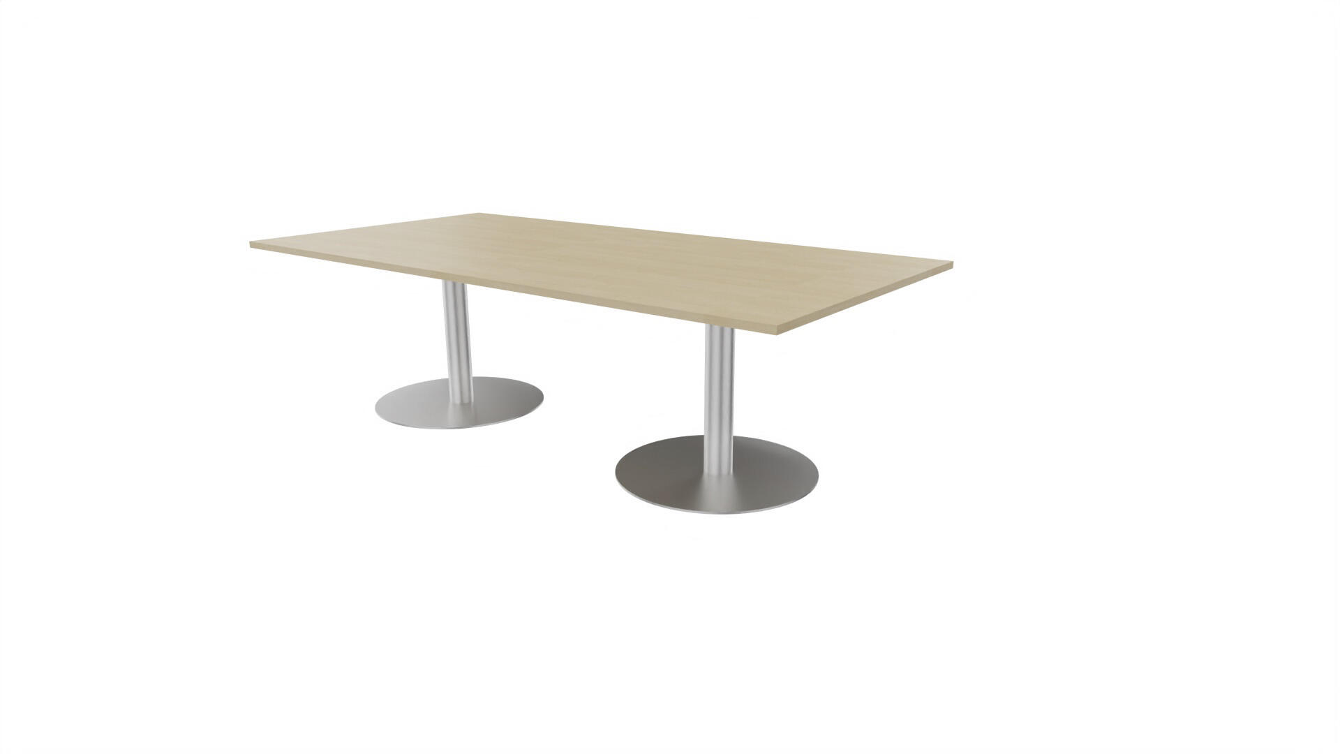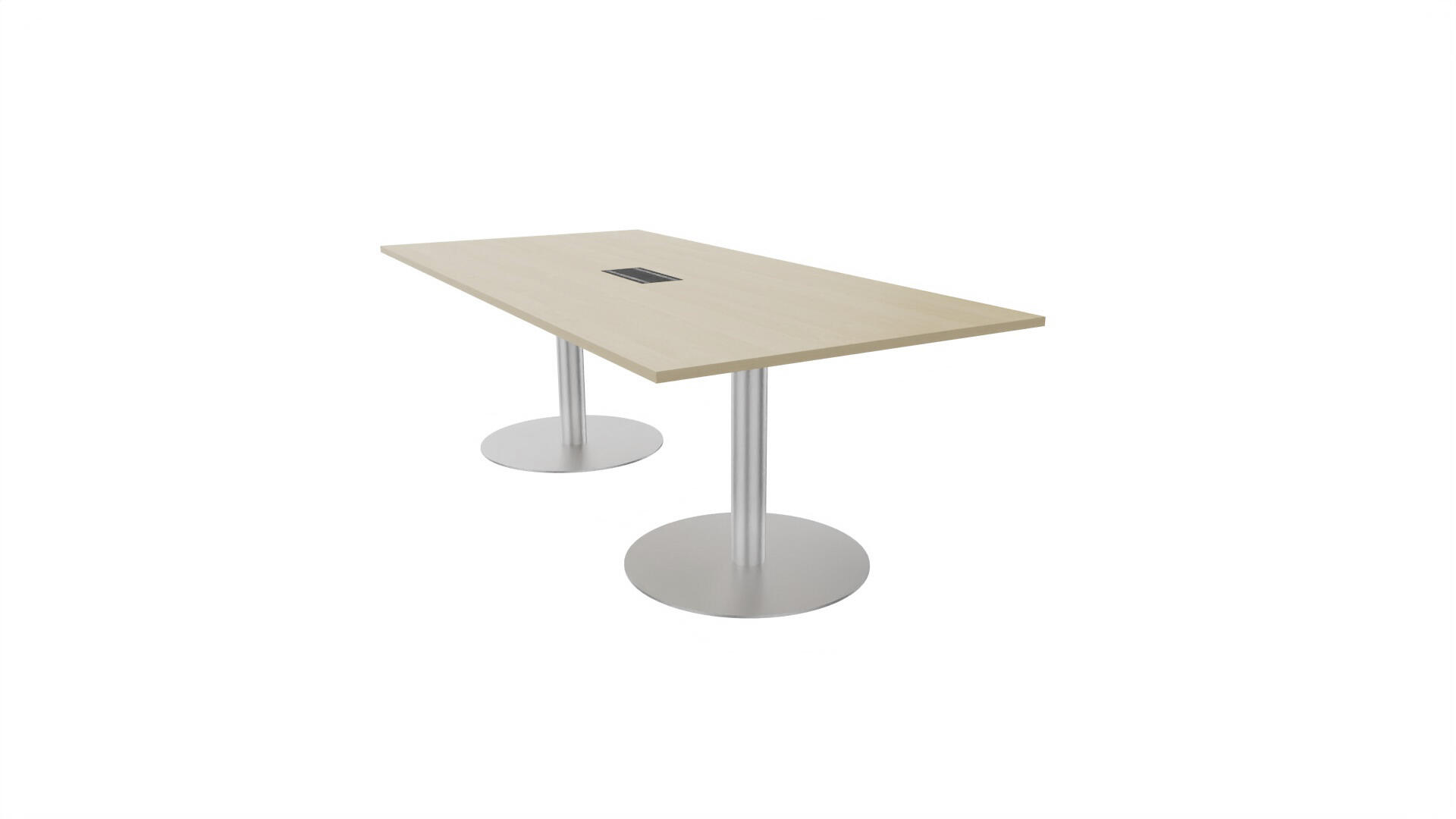 Et konferencebord med rektangulær bordplade og lige kant. Kerne af spånplade beklædt med laminat og ABS-kantliste. 2 søjleben Ø10,2 cm, fod Ø72 cm. Udover standardlaminat fås bordet også med et sort nanolaminat, som har en overflade, som er mat og modstandsdygtigt mod fingeraftryk. Som tilvalg fås også 2 mediabokse (32x15 cm) indfældet i bordet. Hver mediaboks består af 2x 230V stikkontakter, 1x USB og 1x HDMI.