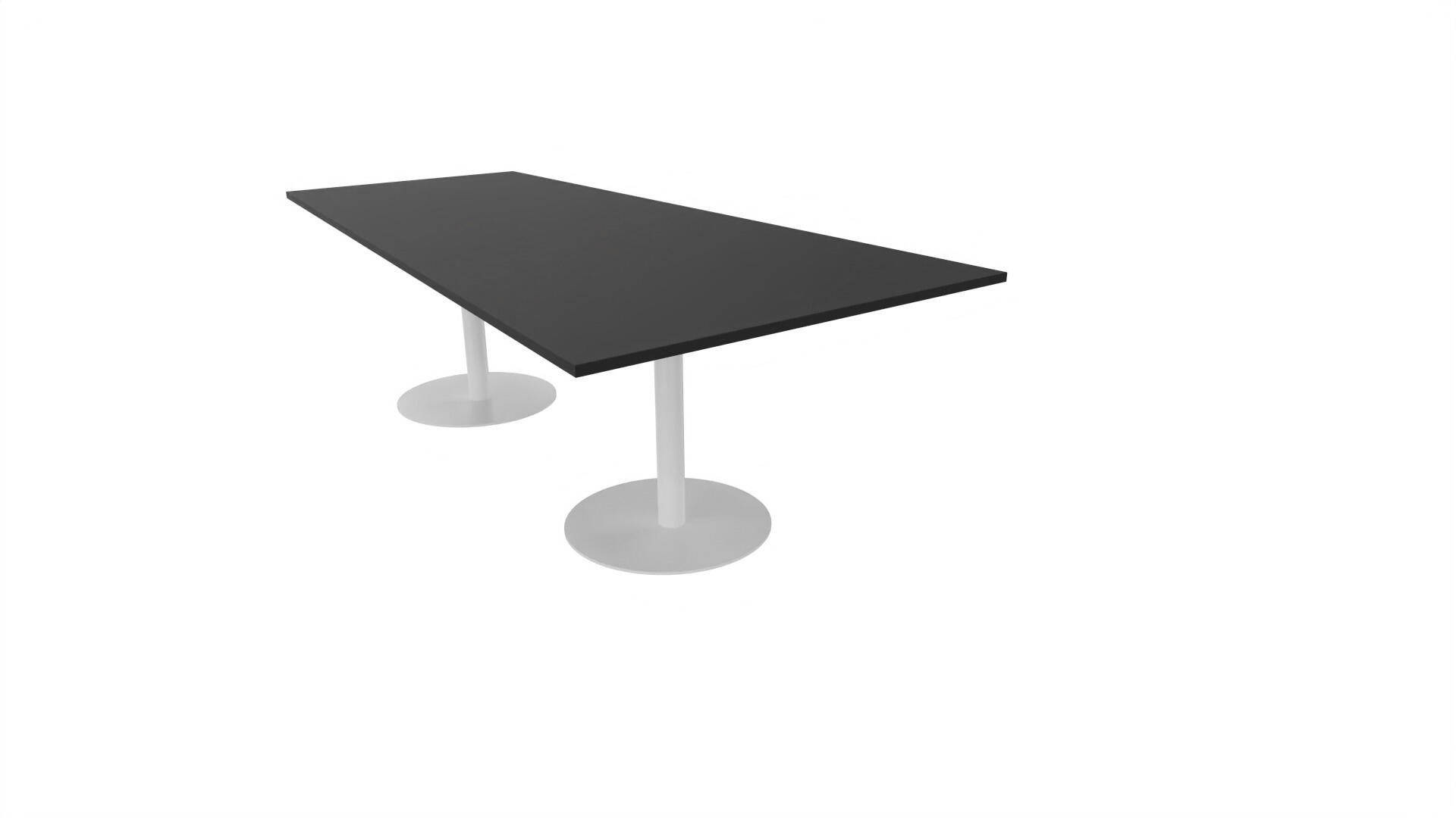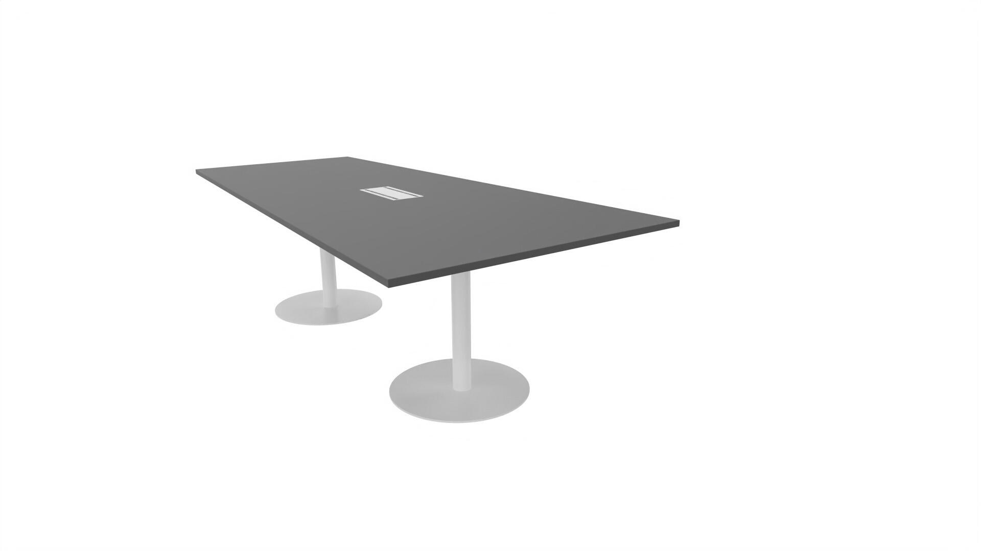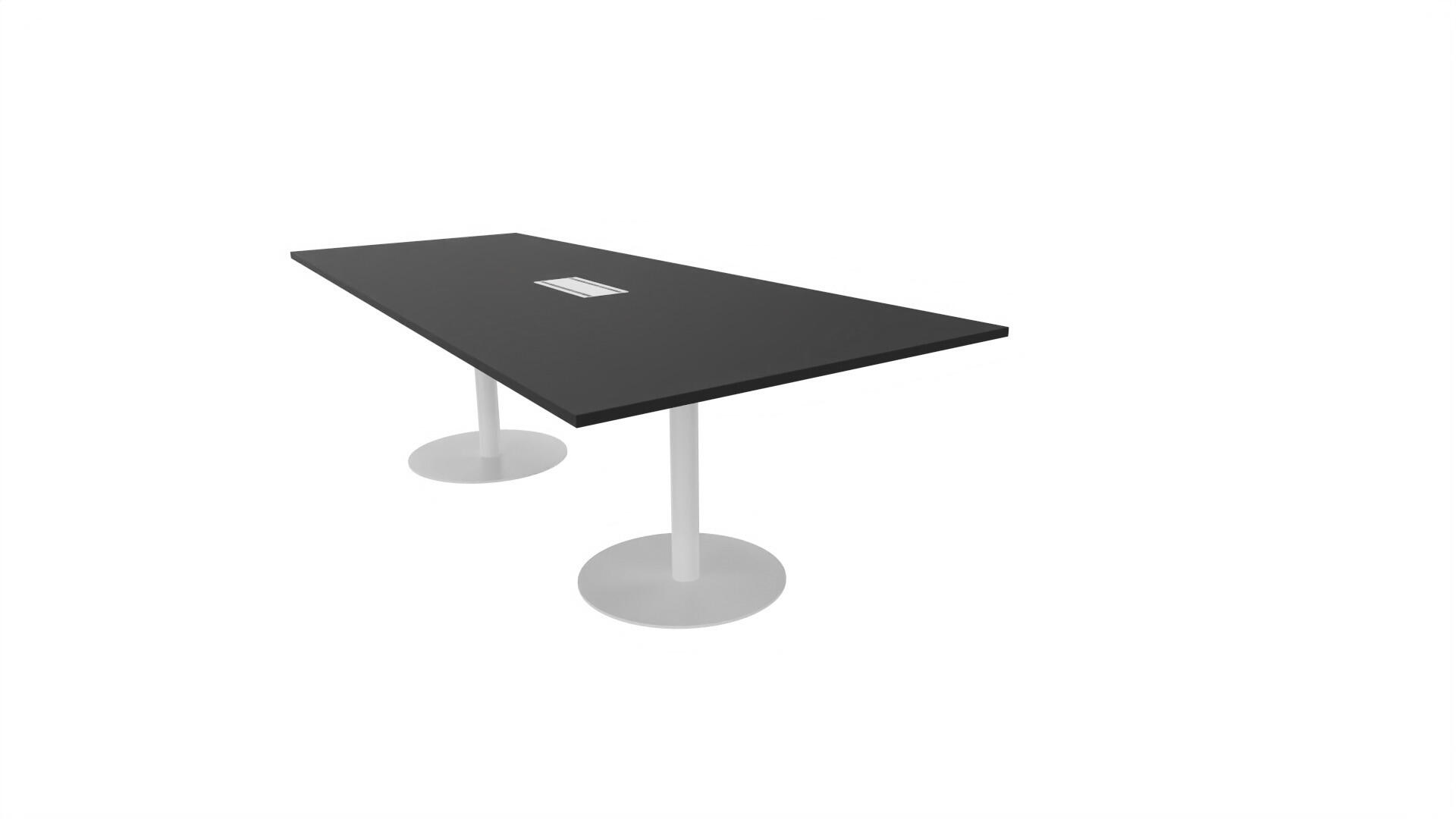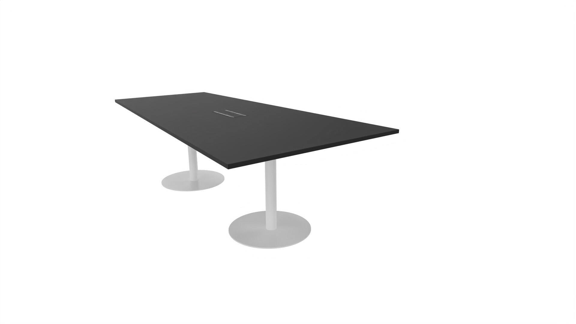 Et konferencebord med rektangulær bordplade og lige kant. Kerne af spånplade beklædt med laminat og ABS-kantliste. 2 søjleben Ø10,2 cm, fod Ø72 cm. Udover standardlaminat fås bordet også med et sort nanolaminat, som har en overflade, som er mat og modstandsdygtigt mod fingeraftryk. Som tilvalg fås også 2 mediabokse (32x15 cm) indfældet i bordet. Hver mediaboks består af 2x 230V stikkontakter, 1x USB og 1x HDMI.