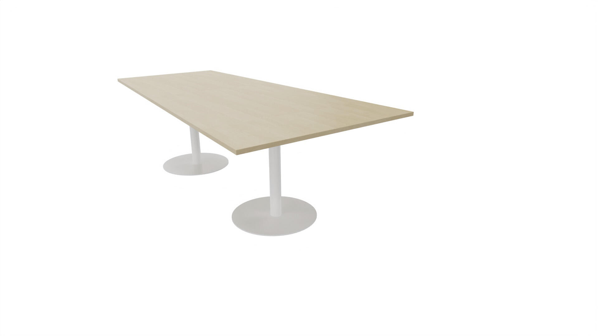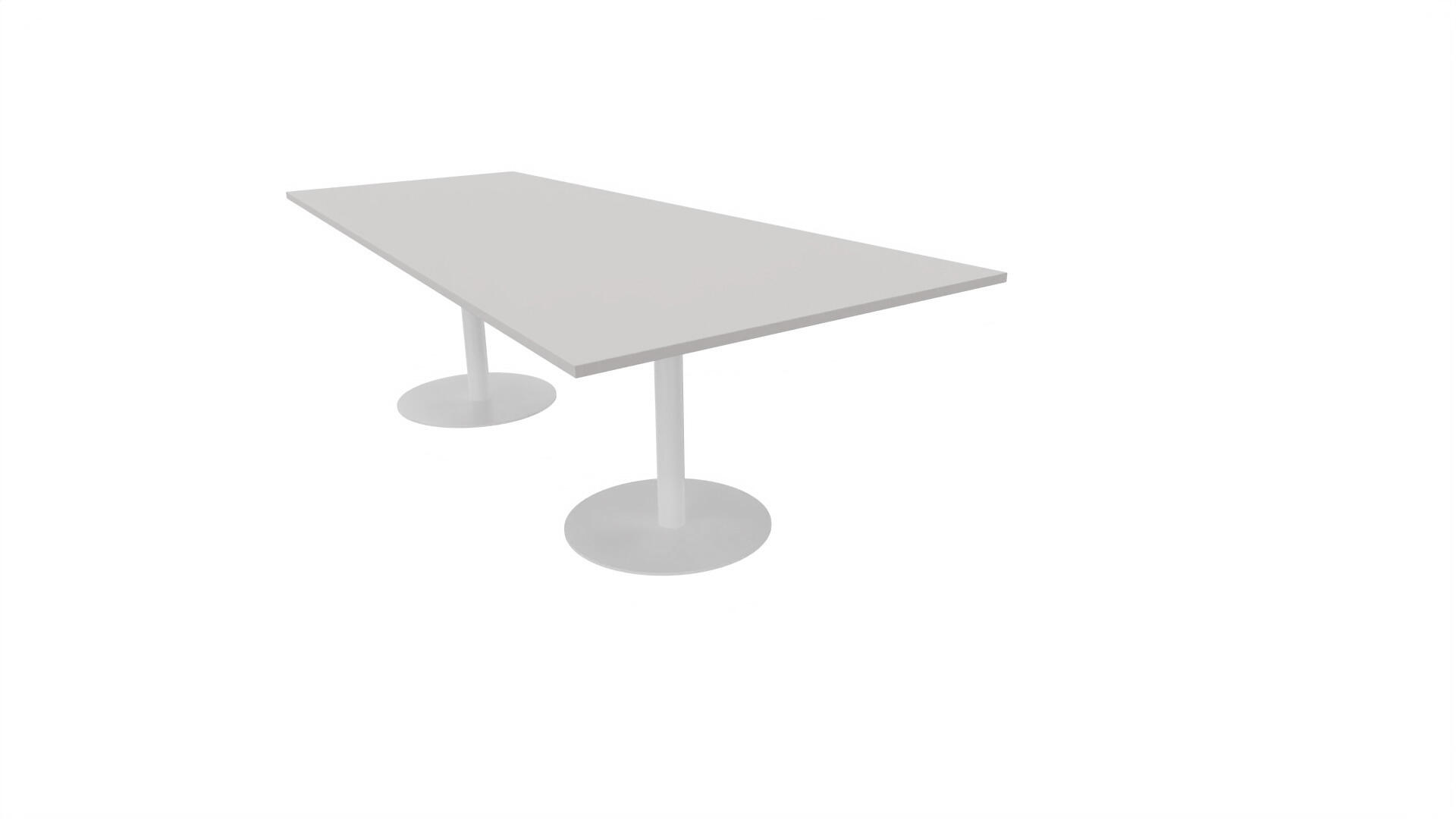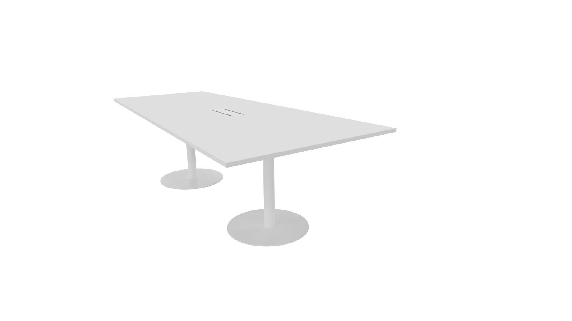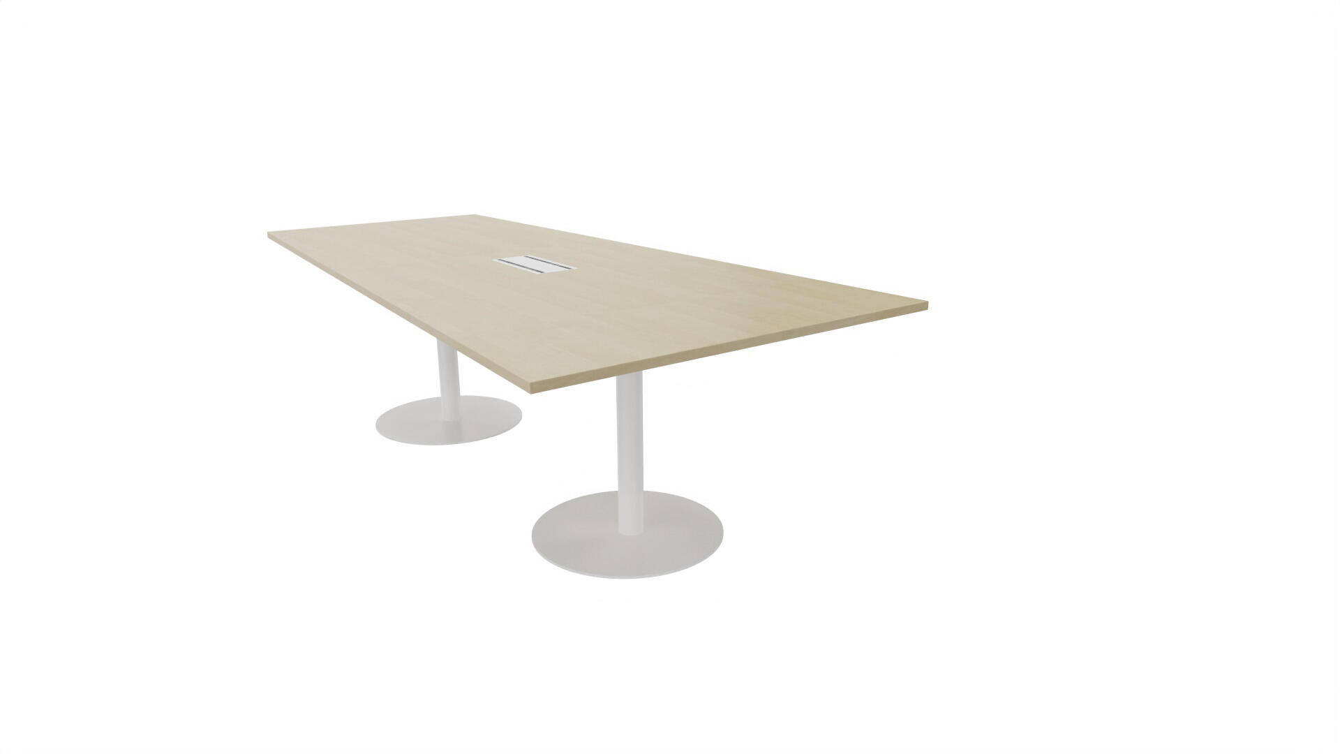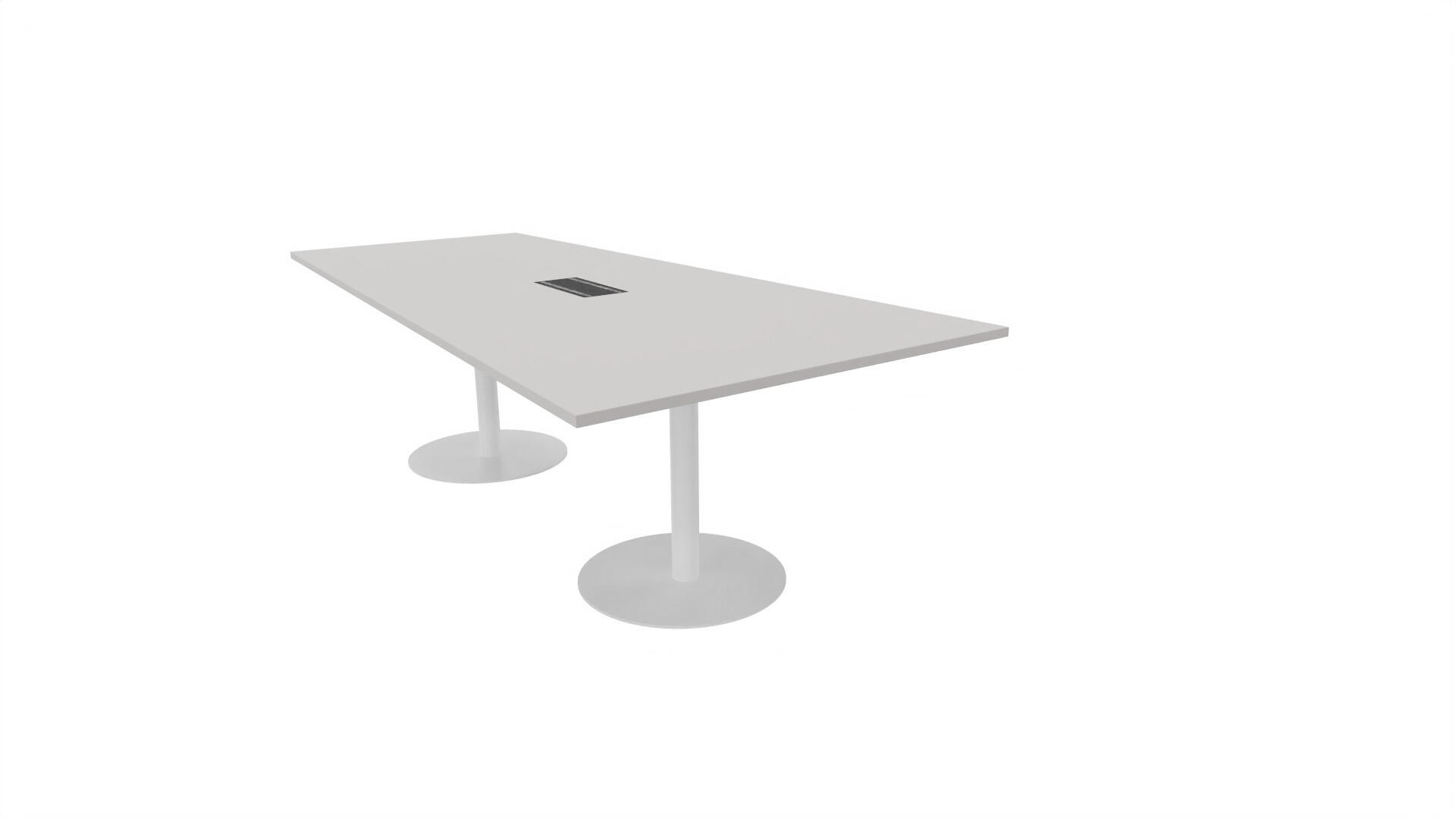 Et konferencebord med rektangulær bordplade og lige kant. Kerne af spånplade beklædt med laminat og ABS-kantliste. 2 søjleben Ø10,2 cm, fod Ø72 cm. Udover standardlaminat fås bordet også med et sort nanolaminat, som har en overflade, som er mat og modstandsdygtigt mod fingeraftryk. Som tilvalg fås også 2 mediabokse (32x15 cm) indfældet i bordet. Hver mediaboks består af 2x 230V stikkontakter, 1x USB og 1x HDMI.