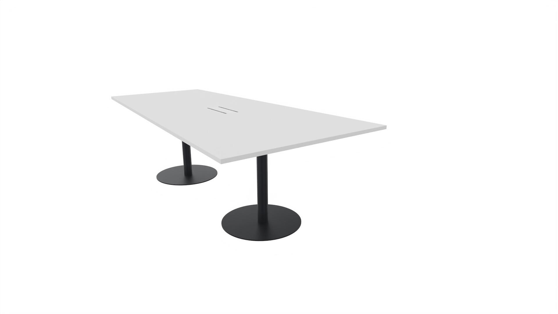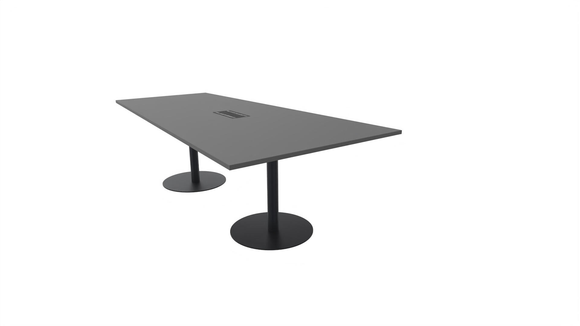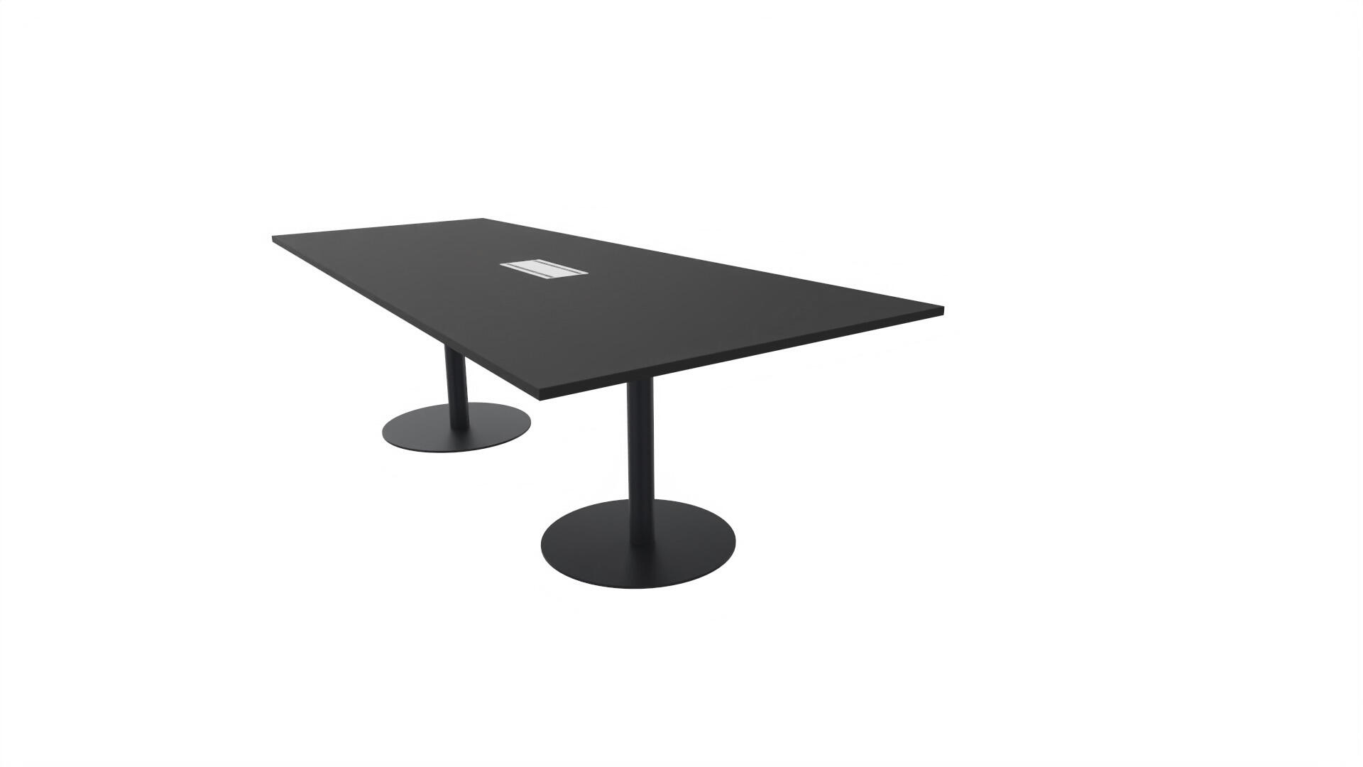 Et konferencebord med rektangulær bordplade og lige kant. Kerne af spånplade beklædt med laminat og ABS-kantliste. 2 søjleben Ø10,2 cm, fod Ø72 cm. Udover standardlaminat fås bordet også med et sort nanolaminat, som har en overflade, som er mat og modstandsdygtigt mod fingeraftryk. Som tilvalg fås også 2 mediabokse (32x15 cm) indfældet i bordet. Hver mediaboks består af 2x 230V stikkontakter, 1x USB og 1x HDMI.