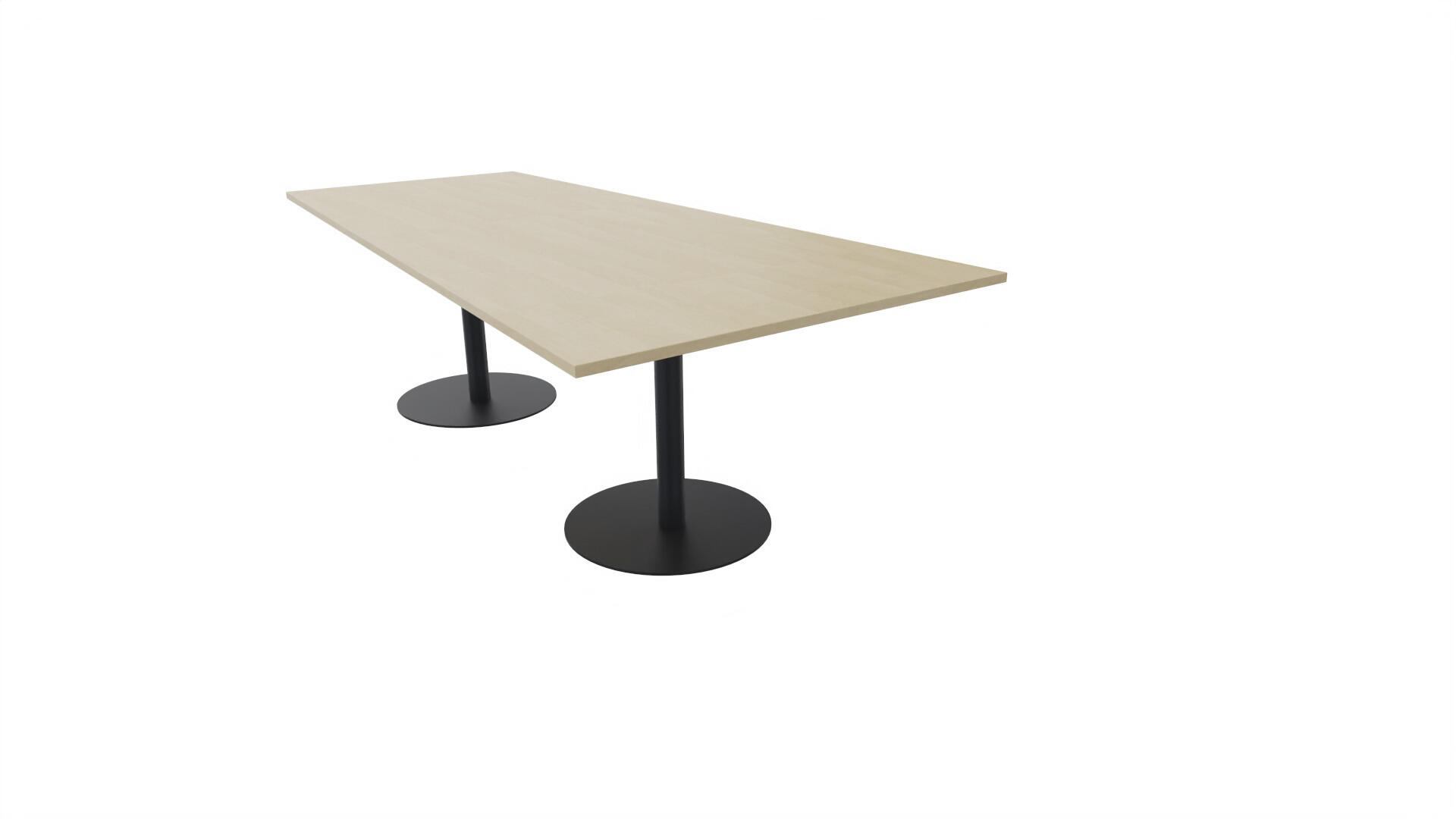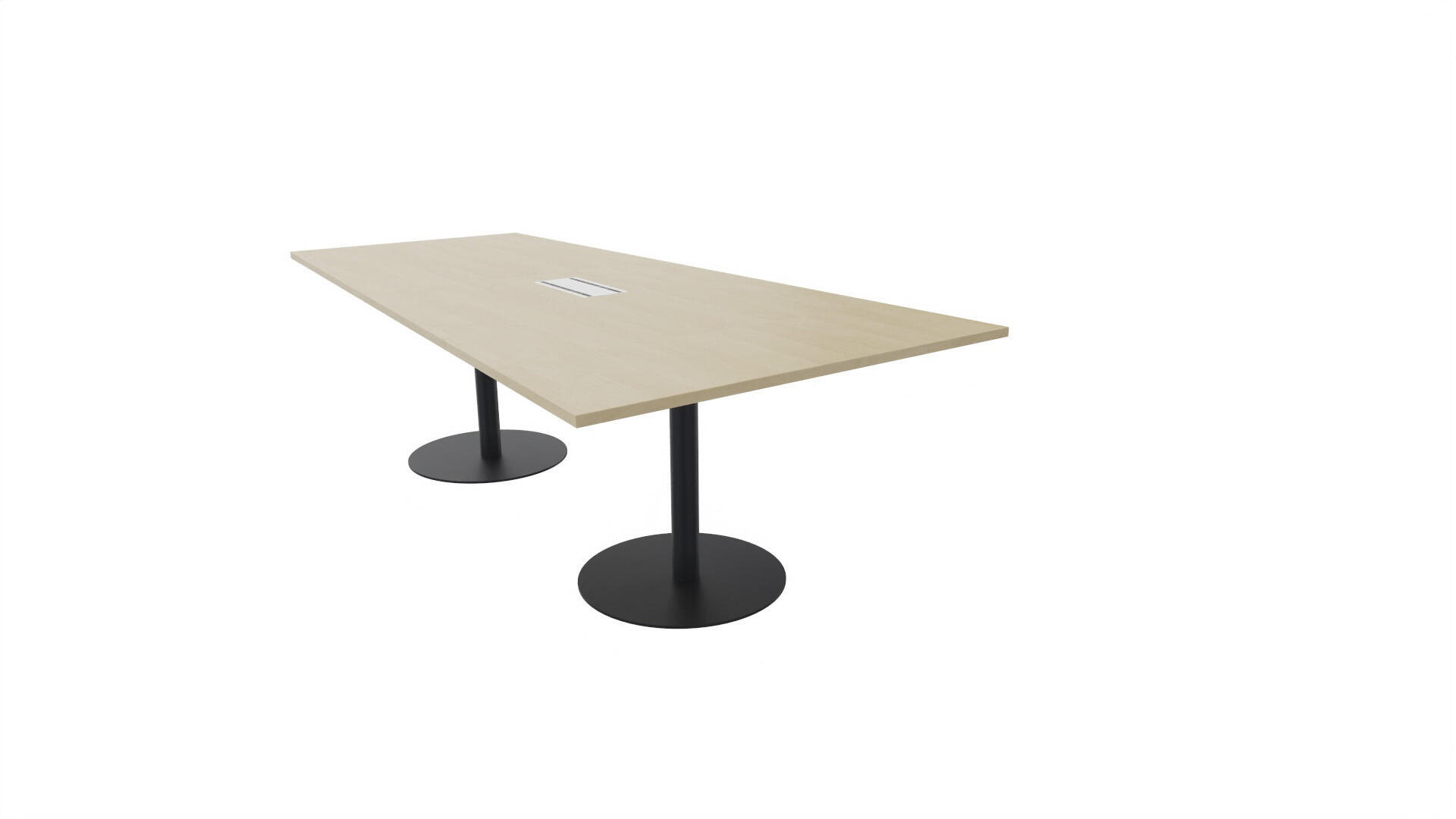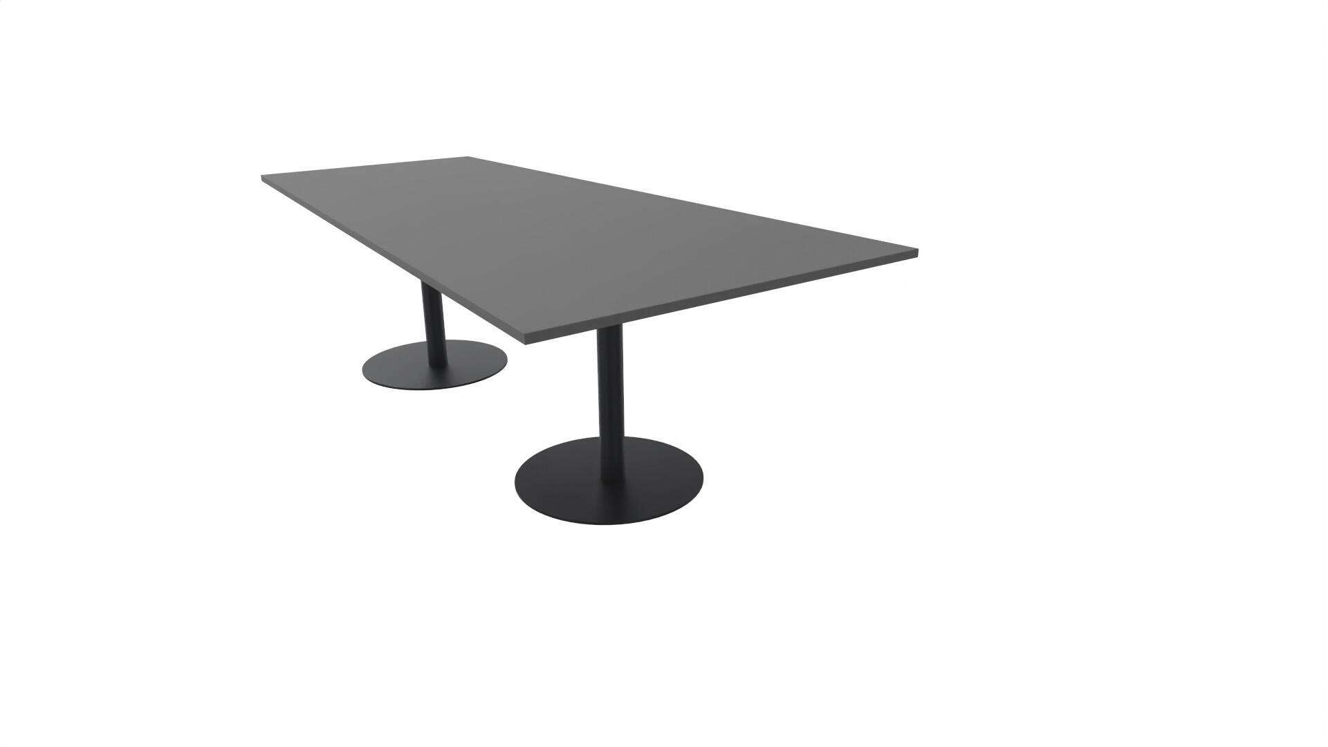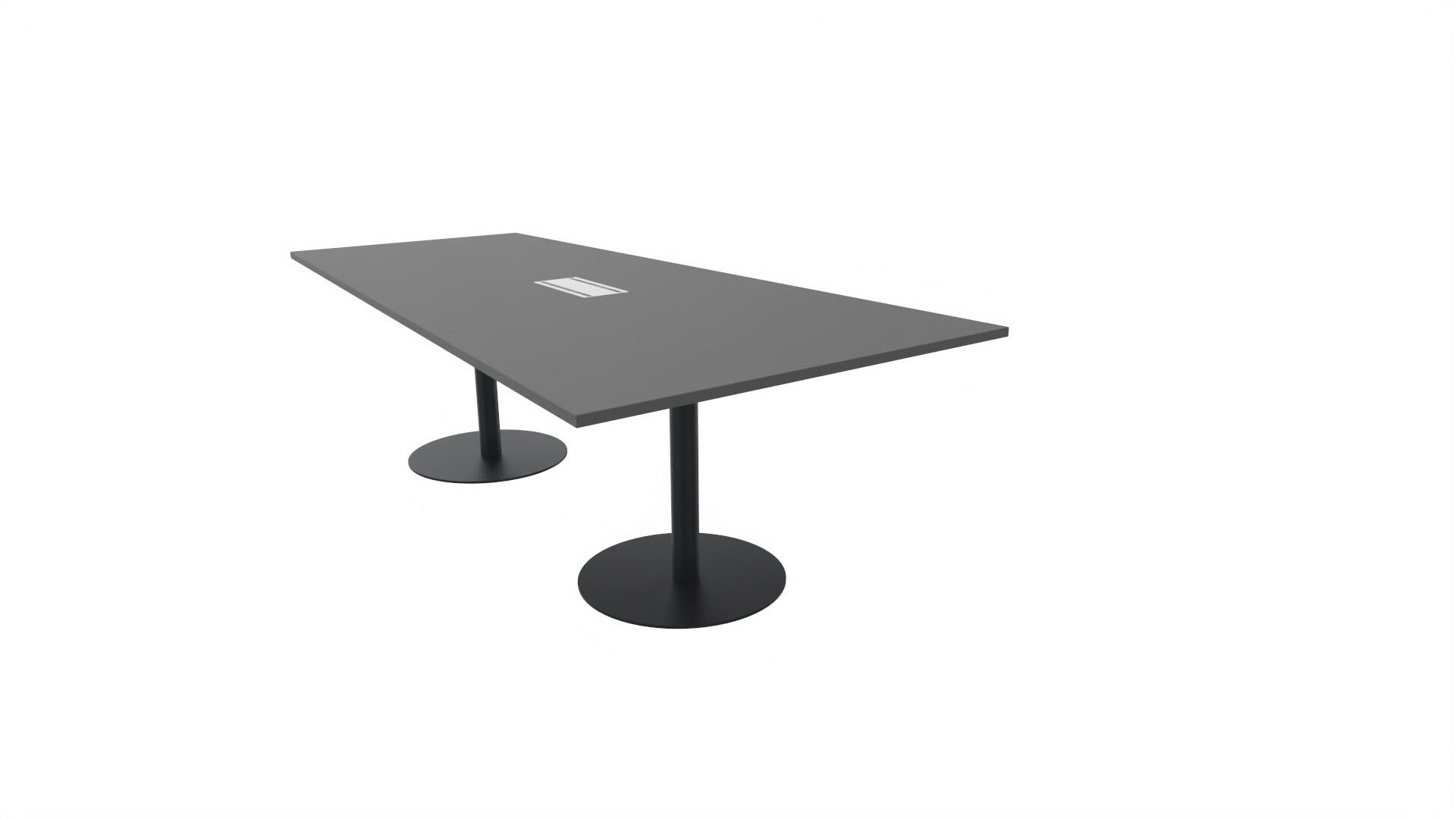 Et konferencebord med rektangulær bordplade og lige kant. Kerne af spånplade beklædt med laminat og ABS-kantliste. 2 søjleben Ø10,2 cm, fod Ø72 cm. Udover standardlaminat fås bordet også med et sort nanolaminat, som har en overflade, som er mat og modstandsdygtigt mod fingeraftryk. Som tilvalg fås også 2 mediabokse (32x15 cm) indfældet i bordet. Hver mediaboks består af 2x 230V stikkontakter, 1x USB og 1x HDMI.