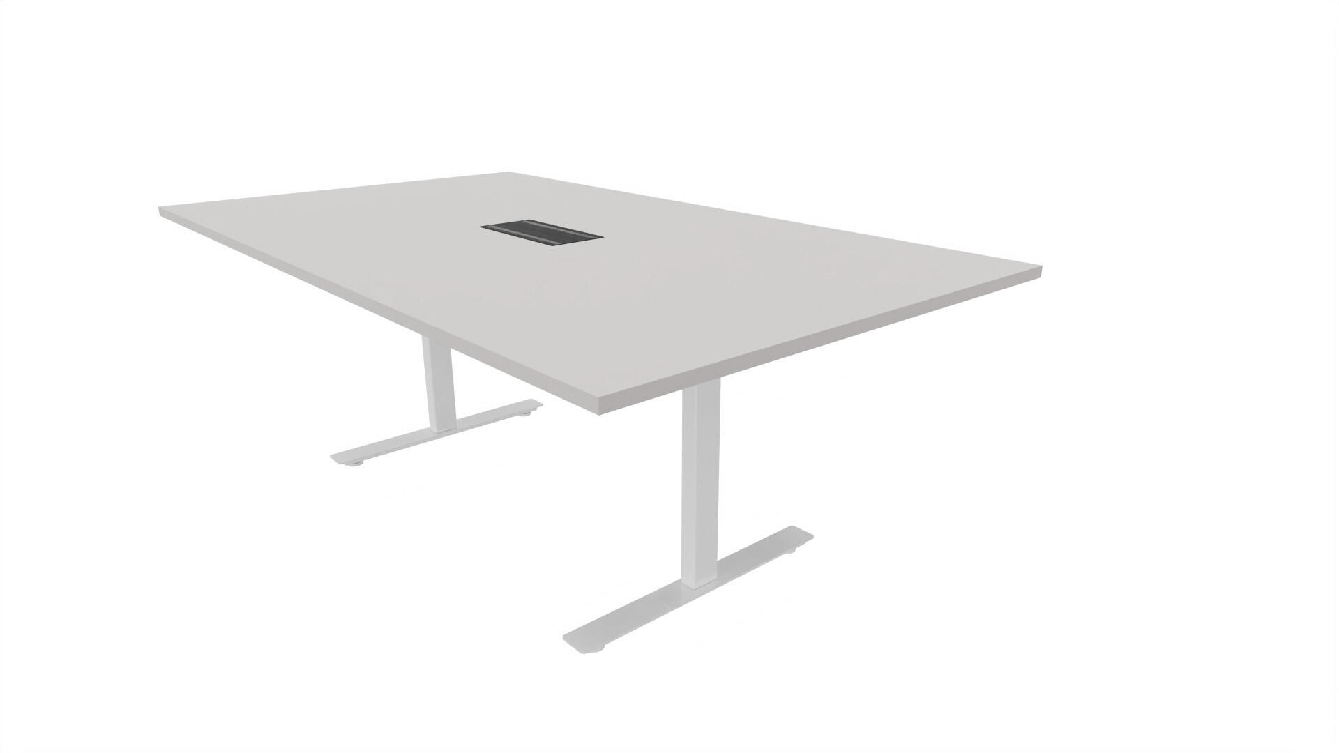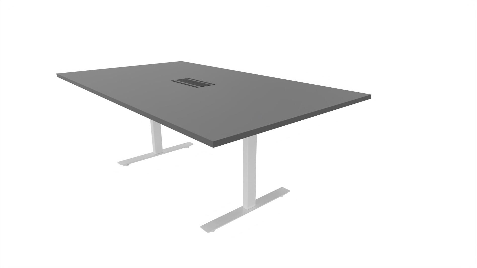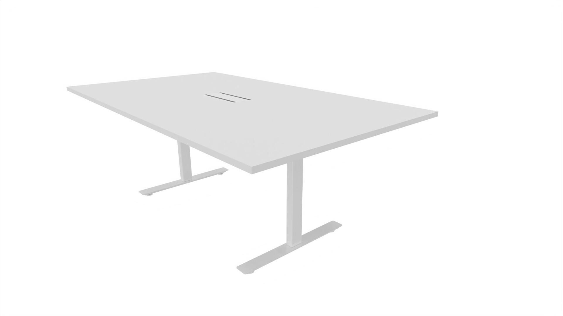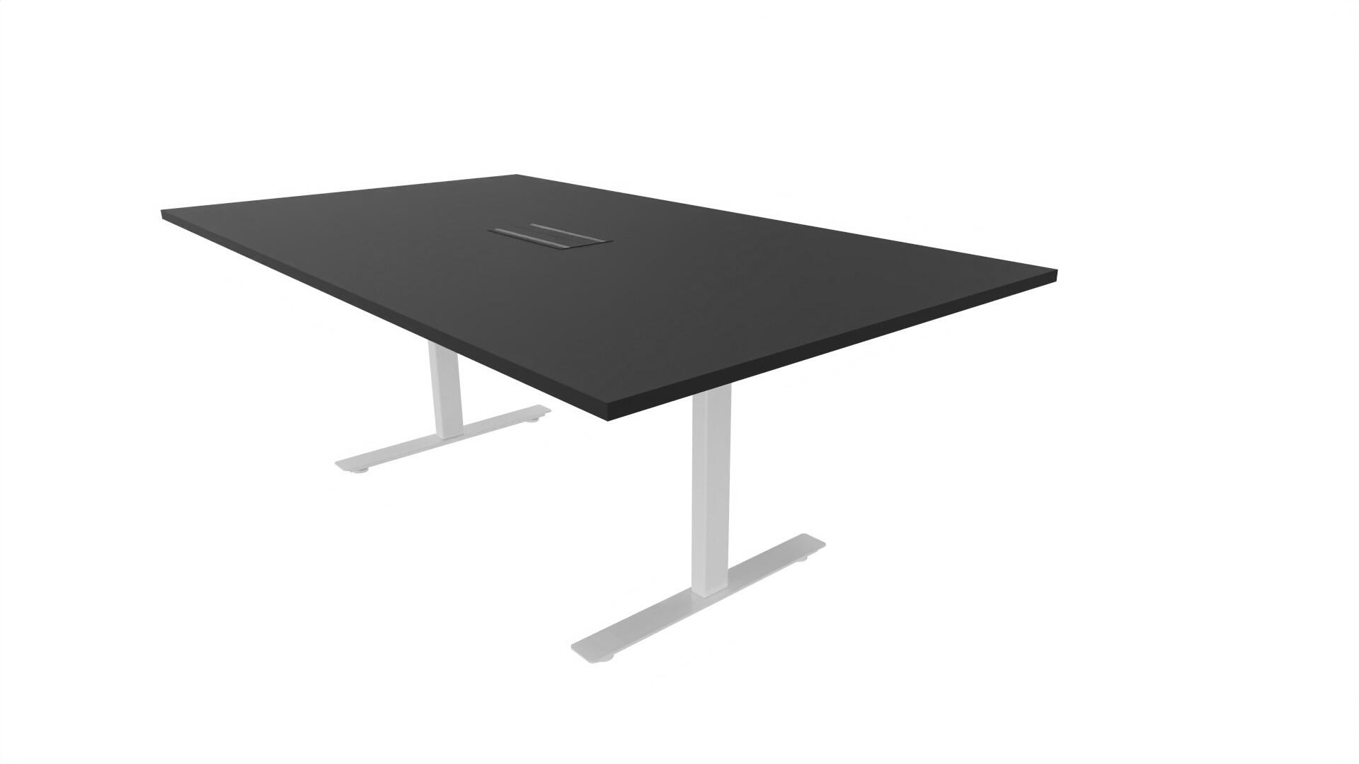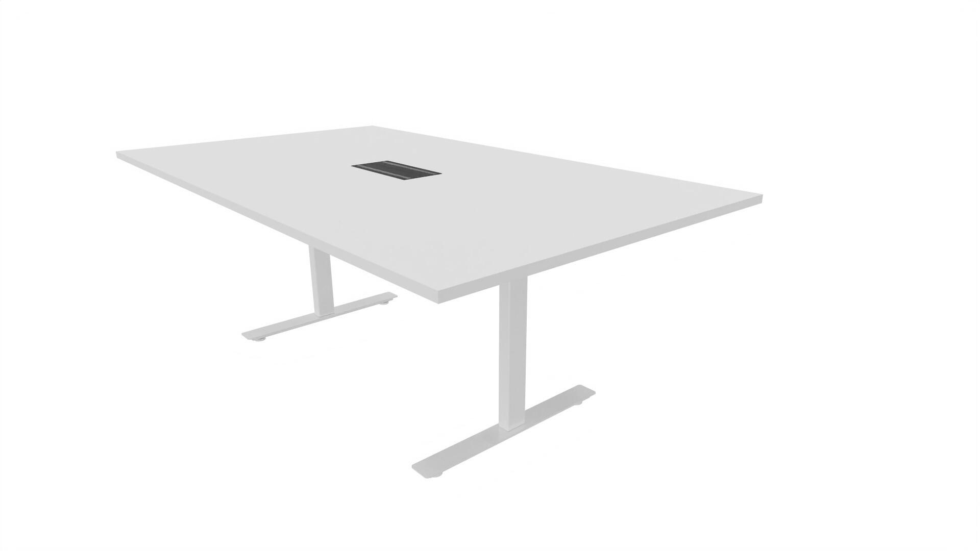Et konferencebord med rektangulær bordplade og lige kant. Kerne af spånplade beklædt med laminat og ABS-kantliste. T-understel med 3 ben, fodlængde: 90 cm. Udover standardlaminat fås bordet også med et sort nanolaminat, som har en overflade, som er mat og modstandsdygtigt mod fingeraftryk. Som tilvalg fås også 2 mediabokse (32x15 cm) indfældet i bordet. Hver mediaboks består af 2x 230V stikkontakter, 1x USB og 1x HDMI.