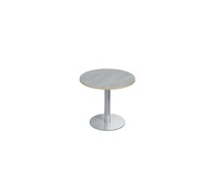 Elevbord B76xD60xH72 cm med understel i metal RAL 9006. Plade i hvid kompaktlaminat. Bordpladen kan vippes op ved opbevaring. Hjul foran. 60°, kræver 6 borde for at lave en cirkel.