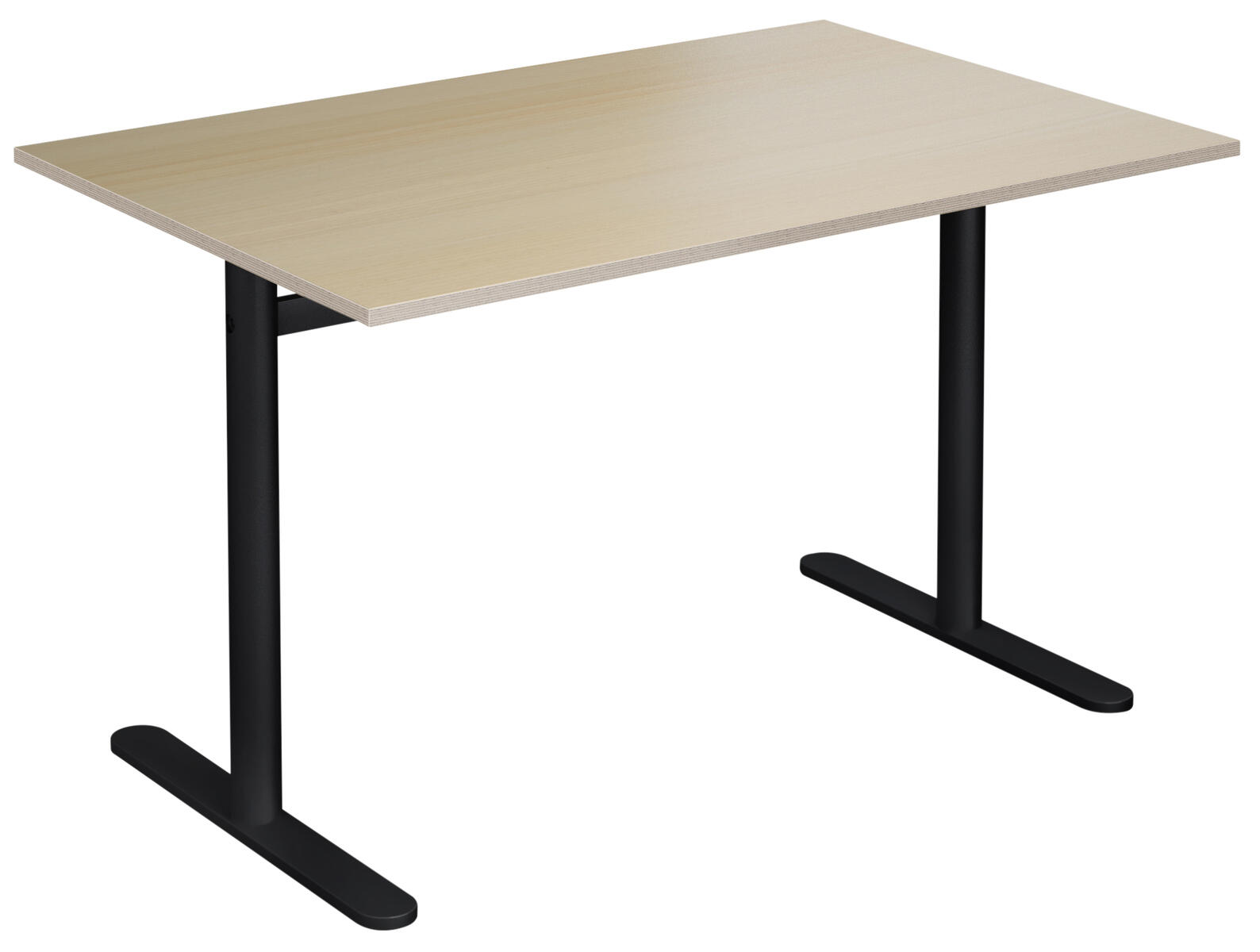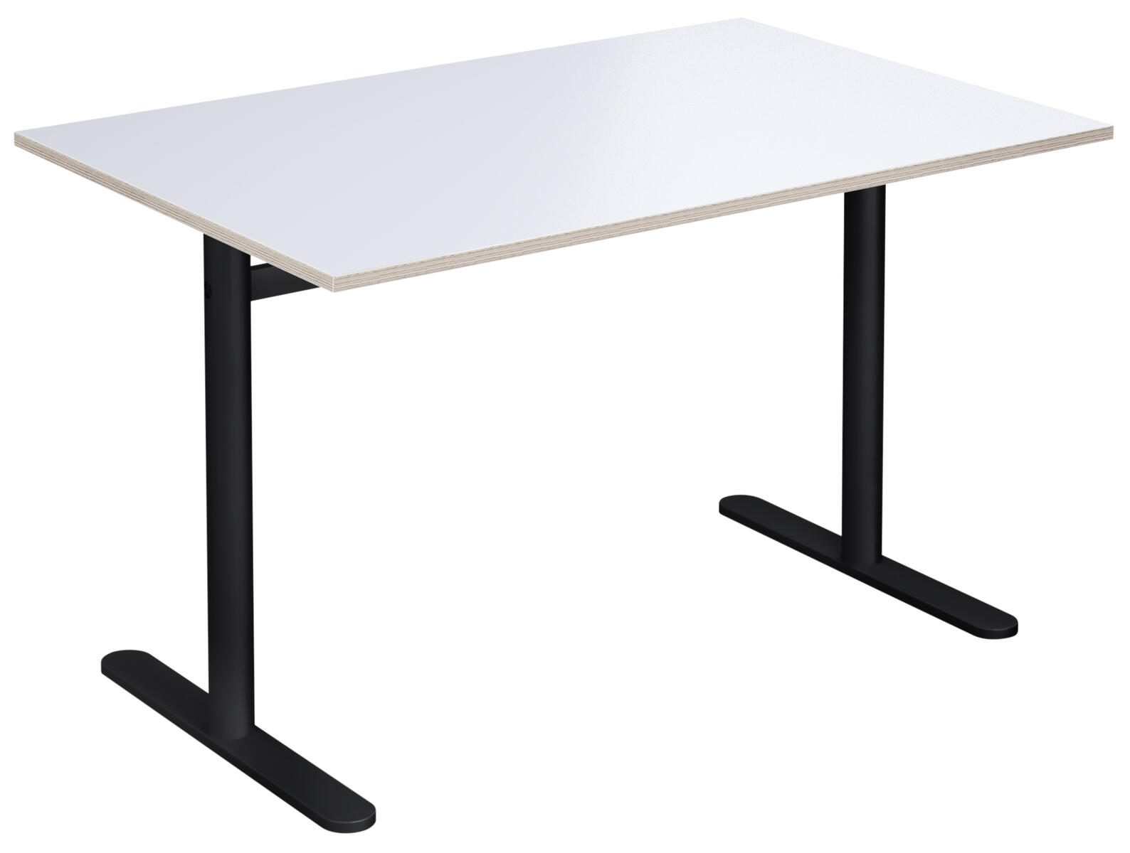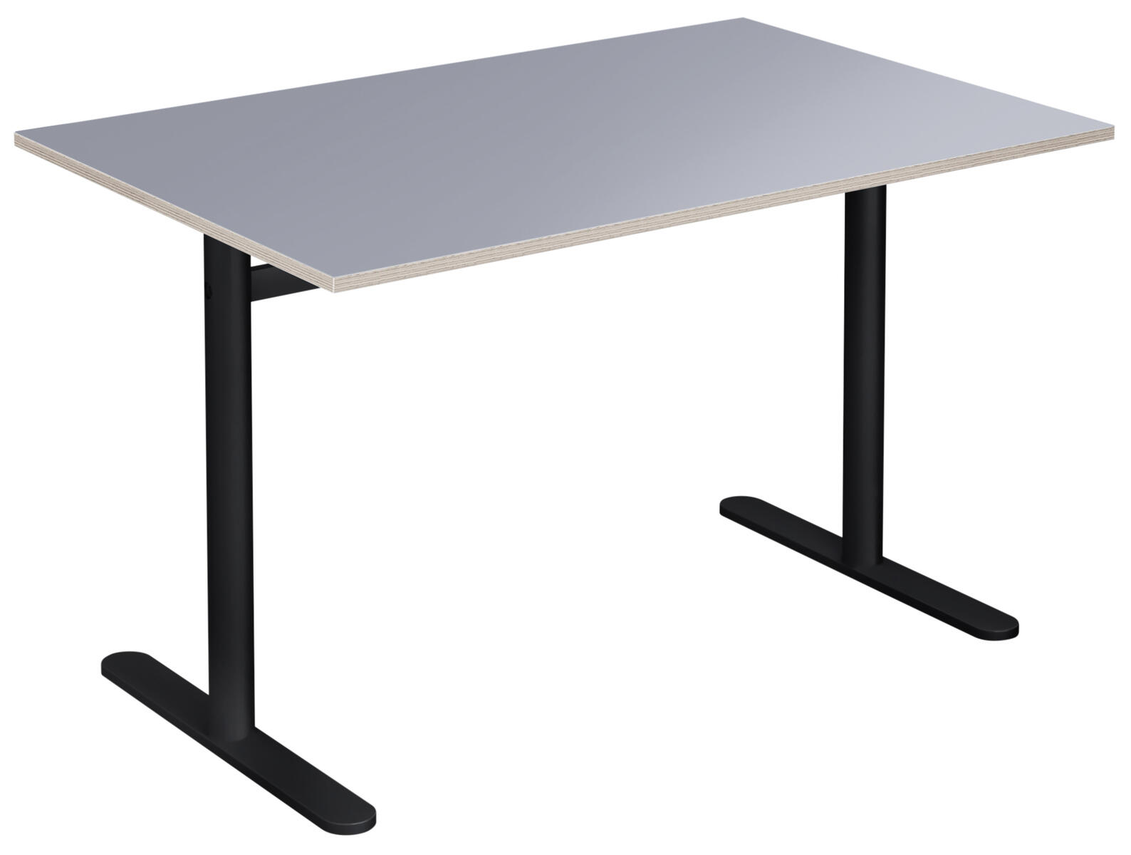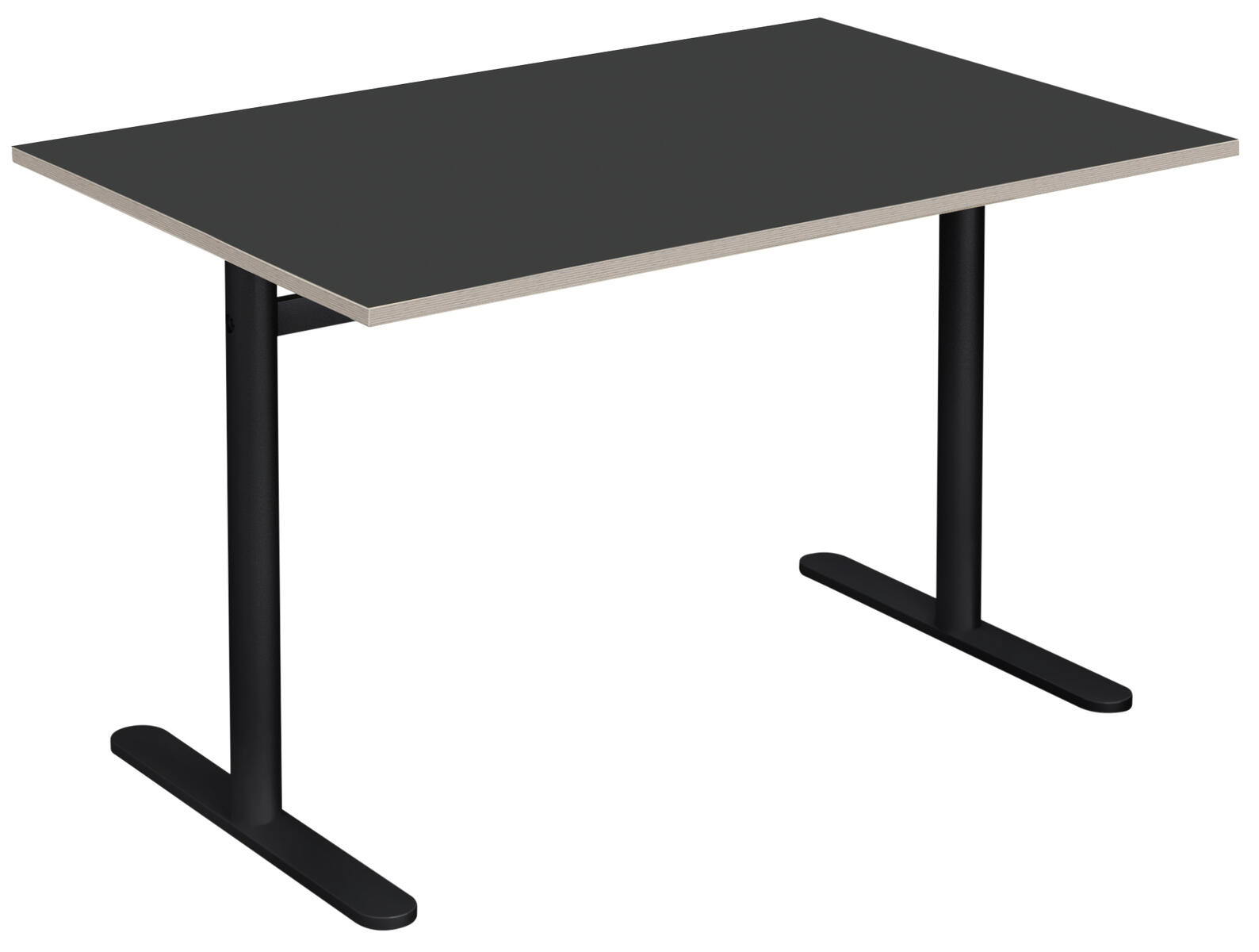 Bordplade i højtrykslaminat. T-understel lakeret i sort RAL 9005.