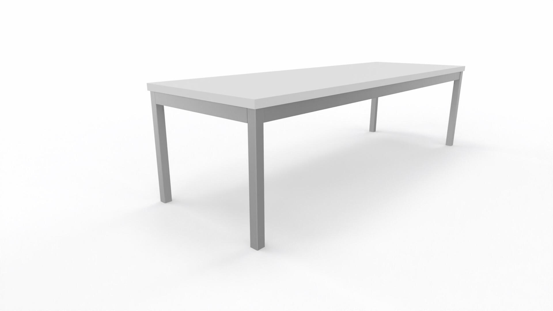 Bord med 18 mm melaminbelagt bordplade. Understel i RAL9005. Kræver montering.
