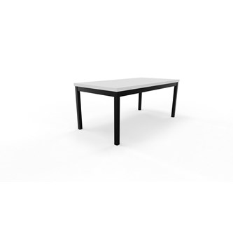 Bordplade i slidstærkt højtrykslaminat. Justerbare stilleskruer sikrer, at bordet står stabilt selv på ujævne overflader. Understel i sort RAL 9005.