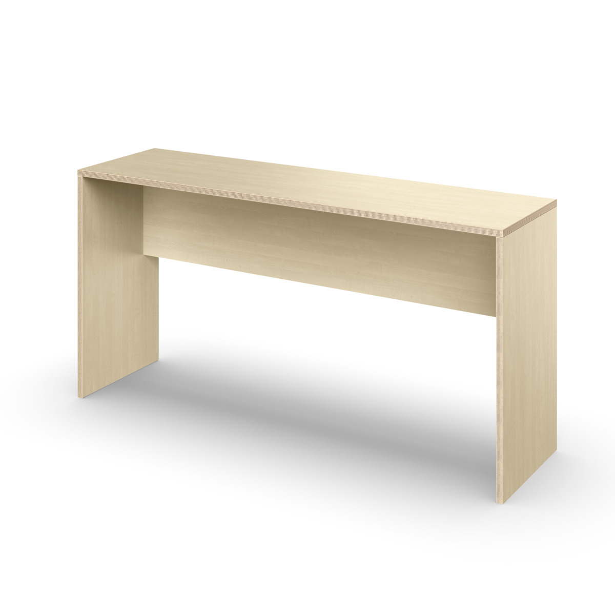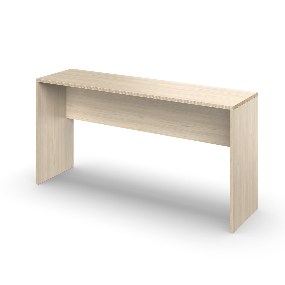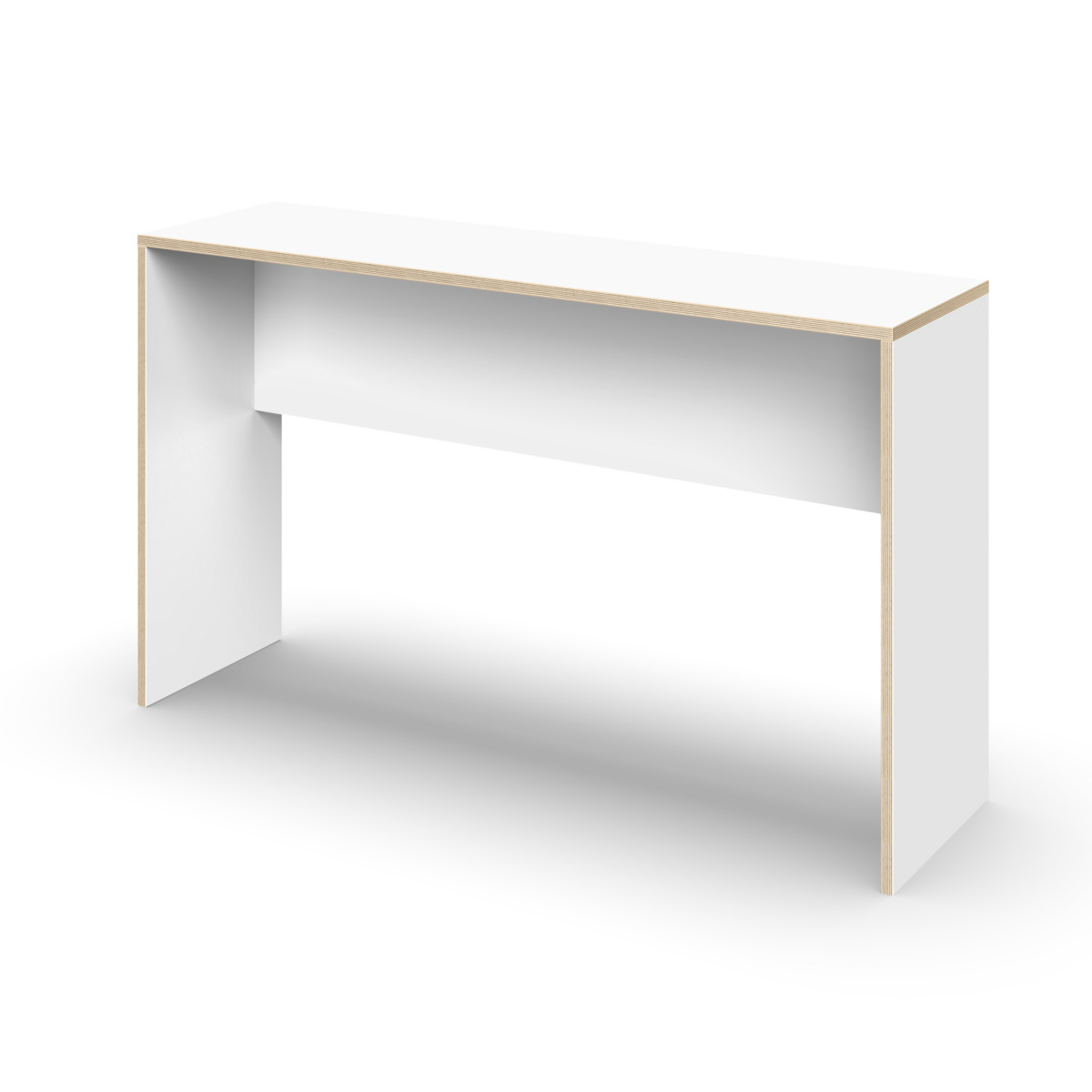 Gavlbord, som kan kombineres med West bænk, stole eller skamler. Fremstillet af spånplade med laminat. Kantliste i krydsfinérlook. Plastfødder. Samling er påkrævet.