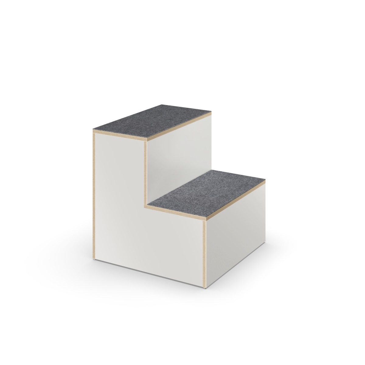 Samlingstrappe i krydsfiner beklædt med højtrykslaminat. Vælg mellem mange farver. Birk og hvidpigmenteret helt i krydsfiner. Smart opbevaring under trappen. Alle hjul er drejelige med låse. Hvert trin er 30 cm højt. Den øverste kant er 40 cm dyb. Se monteringsvejledning.