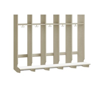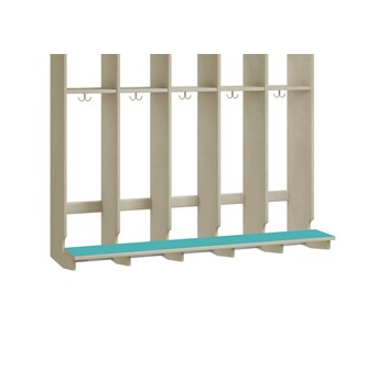 Flexi-garderoben er udviklet til børnehaver, skoler og SFO'er. Fremstillet i 18 mm birkekrydsfinér. Flexi fås både som væghængt model og fritstående gulvmodel i tre forskellige bredder som standard med invendige mål: 22 cm, 25 cm eller 28 cm. Op til 5 rum kan bygges sammen. Gulvmodellen fås også som dobbeltsidet. Skohylden er med rør, så snavs ryger ned på gulvet. Dobbeltkrog til tøj og tasker i hvert rum. Låger både oppe og nede kan tilkøbes i forskellige farver. Mål: Højde 143 cm. Dybde 24 cm, med siddebænk 44 cm. Afstand fra krog til skohylde 100 cm. Husk træ er et levende og naturligt materiale og farvenuancer kan derfor forekomme. Væghængt garderobe med bænk. Indvendig mål pr. rum 22 cm. Svanemærket licensnummer 5031 0099.