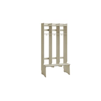 Flexi-garderoben er udviklet til børnehaver, skoler og SFO'er. Fremstillet i 18 mm birkekrydsfinér. Flexi fås både som væghængt model og fritstående gulvmodel i tre forskellige bredder som standard med invendige mål: 22 cm, 25 cm eller 28 cm. Op til 5 rum kan bygges sammen. Skohylden er med rør, så snavs ryger ned på gulvet. Dobbeltkrog til tøj og tasker i hvert rum. Låger både oppe og nede kan tilkøbes i forskellige farver. Mål: Højde 168 cm. Dybde 24 cm, med siddebænk 44 cm. Afstand fra krog til skohylde 100 cm. Husk træ er et levende og naturligt materiale og farvenuancer kan derfor forekomme. Med bænk og to hylder. Indvendig mål pr. rum 22 cm. Svanemærket licensnummer 5031 0099.