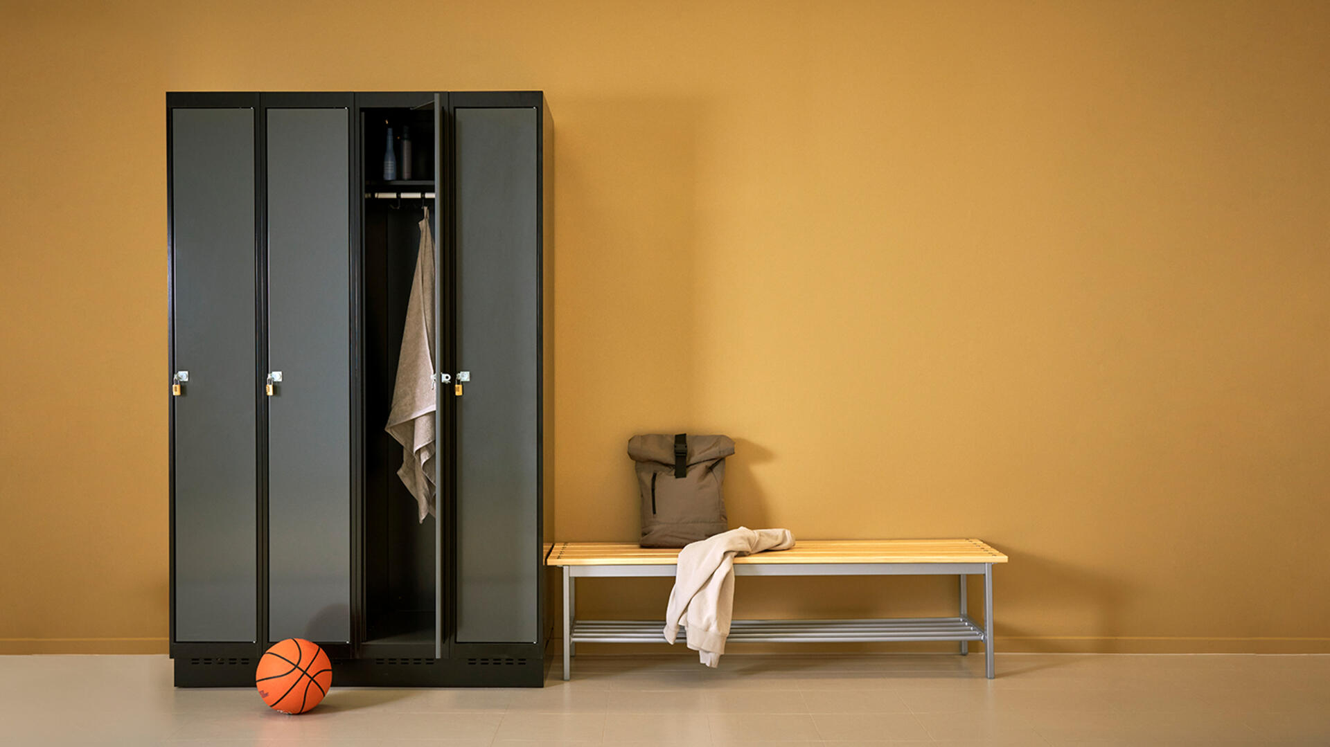 Vores garderobeskabe og produkter til omklædningsrum er designet til at skabe et funktionelt og sikkert miljø. Med robuste metalskabe, der kan låses, tilbyder vi sikker opbevaring for tøj og personlige ejendele. Derudover har vi bænke med kroglister, der er perfekte til at hænge tøj og tasker op. Uanset om det drejer sig om skoler, sportsfaciliteter eller andre offentlige miljøer, tilbyder vores løsninger et praktisk og organiseret sted for brugerne.