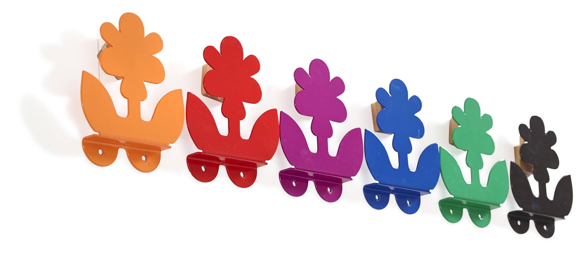 6 knager i enkelt design. Skruer til montering af knagerne på listen medfølger. Skruer til montering af listen på væggen medfølger ikke. Knager i metal, liste i massiv birk. Mål: 108x10 cm.