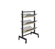 Sko- og støvleopbevaring med 4 hjul, hvoraf 2 er låsbare. Med plads til 24 par. Farverne er koordineret med det øvrige Wille-sortiment. Mål: 93x54x140 cm. Af stål og birk. Tørres af med fugtig klud.