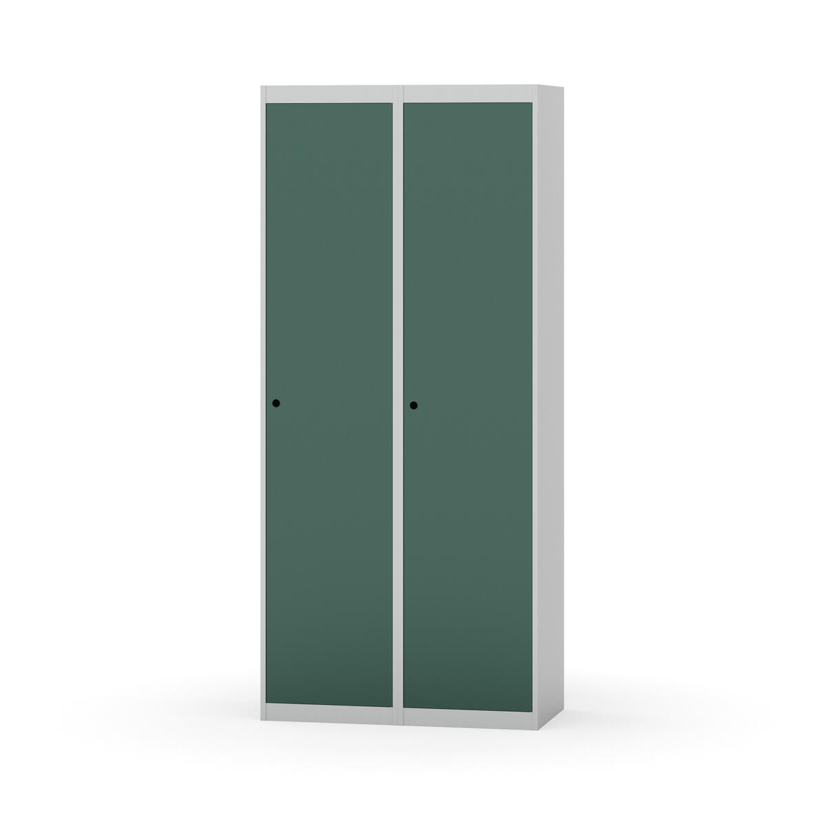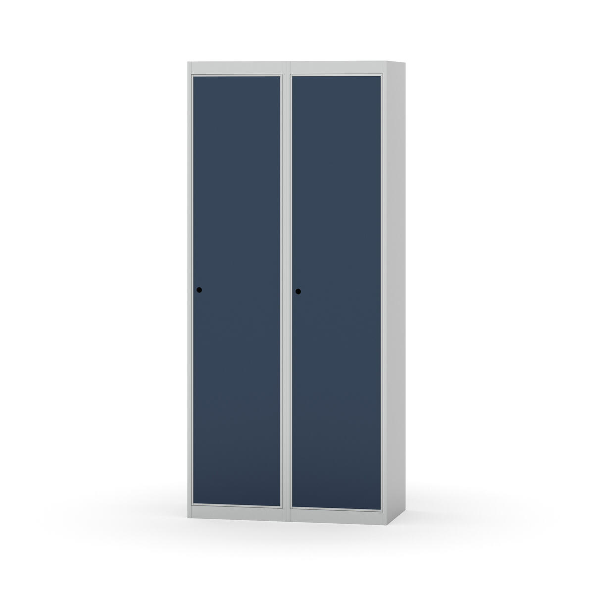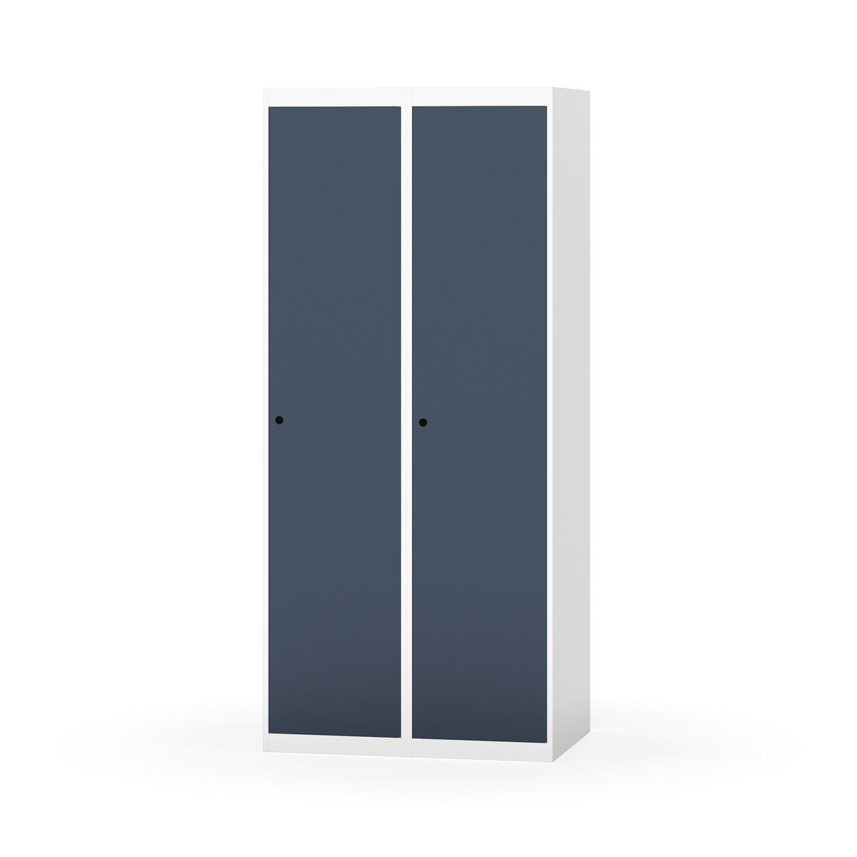 Garderobeskab med fuldsvejset stel. Vælg mellem låge i metal eller laminat. Metallågen er udstyret med dørstopper i stål og indvendig forstærkningsplade omkring låsehullet. Laminatlågen er indstøbt i en stålramme, som er udstyret med dørstopper i stål. Lågerne kan åbnes 90 grader. Indretning: Hylde og bøjlestang med to praktiske ankerkroge. Plan bund uden kant. Ventilation gennem huller i top-/bundplade. Bemærk, at lås samt sokkel/ben bestilles på separate varenumre. Leveres med færdigmonteret lås. Det valgte understel monteres ved levering.