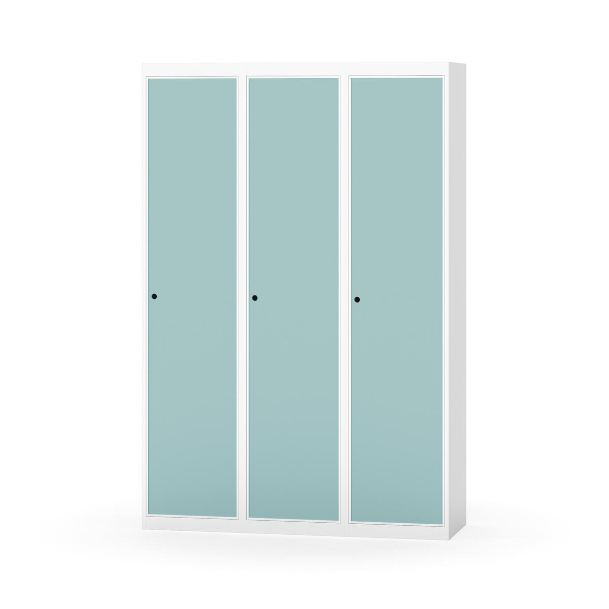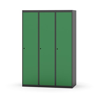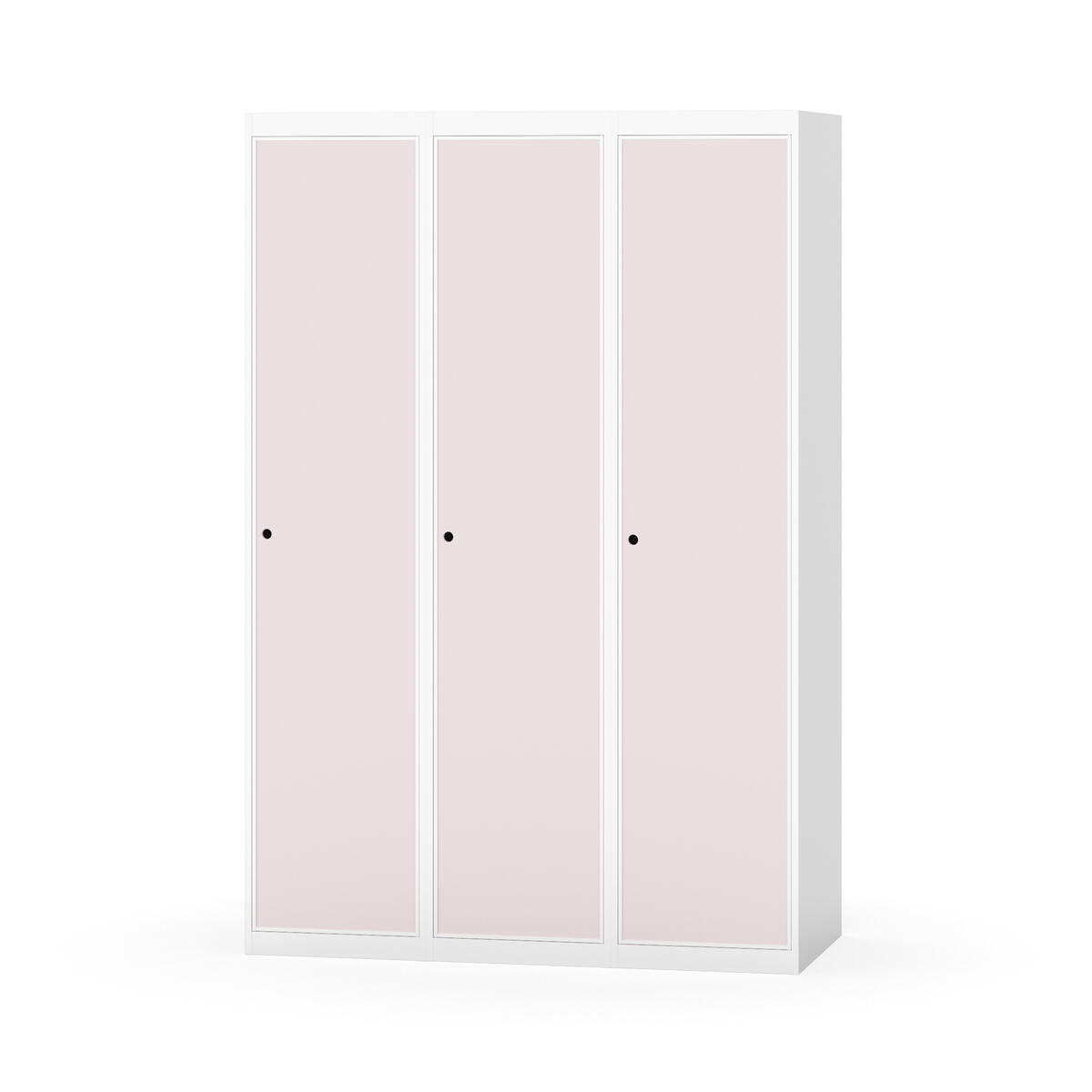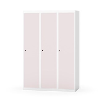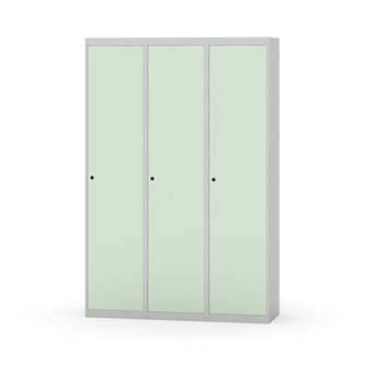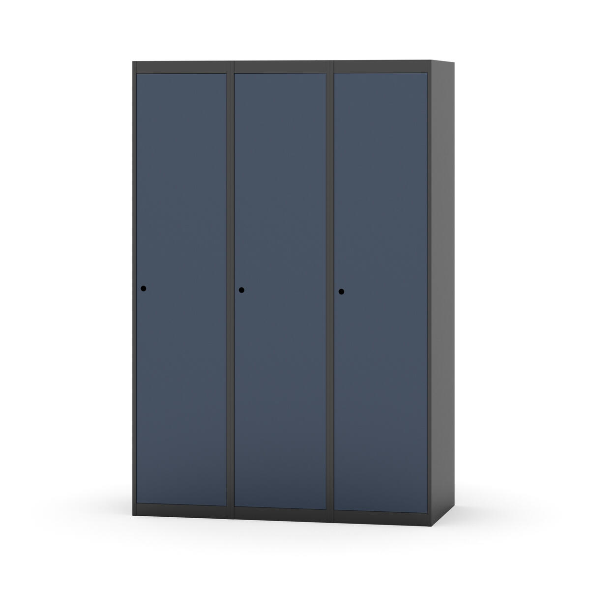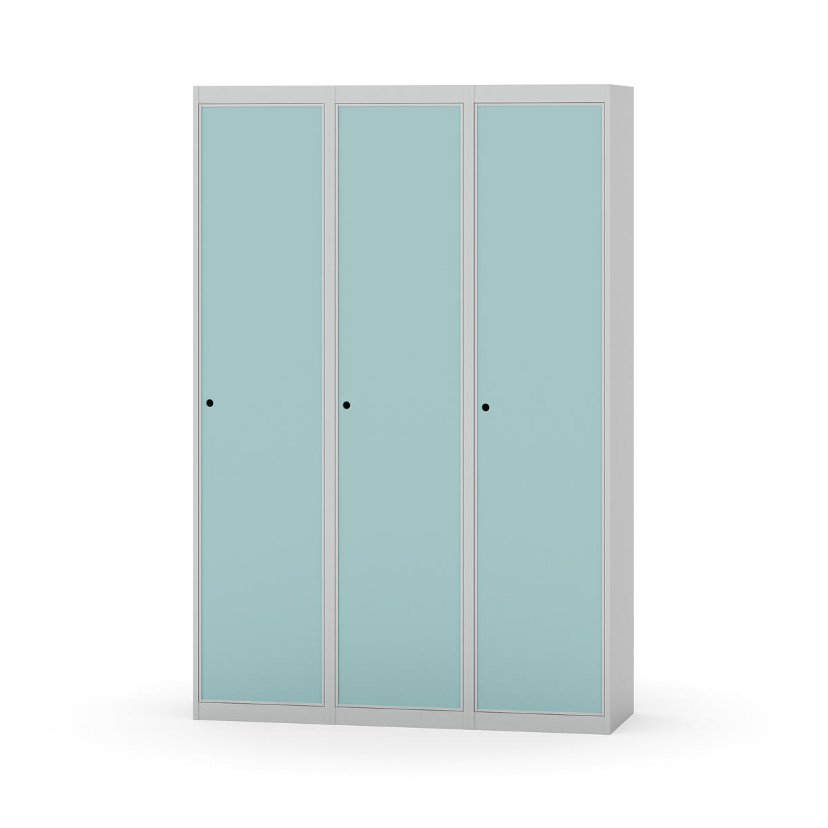 Garderobeskab med fuldsvejset stel. Vælg mellem låge i metal eller laminat. Metallågen er udstyret med dørstopper i stål og indvendig forstærkningsplade omkring låsehullet. Laminatlågen er indstøbt i en stålramme, som er udstyret med dørstopper i stål. Lågerne kan åbnes 90 grader. Indretning: Hylde og bøjlestang med to praktiske ankerkroge. Plan bund uden kant. Ventilation gennem huller i top-/bundplade. Bemærk, at lås samt sokkel/ben bestilles på separate varenumre. Leveres med færdigmonteret lås. Det valgte understel monteres ved levering.