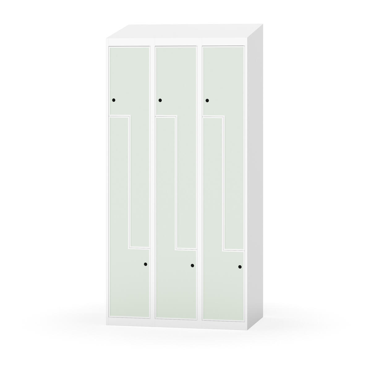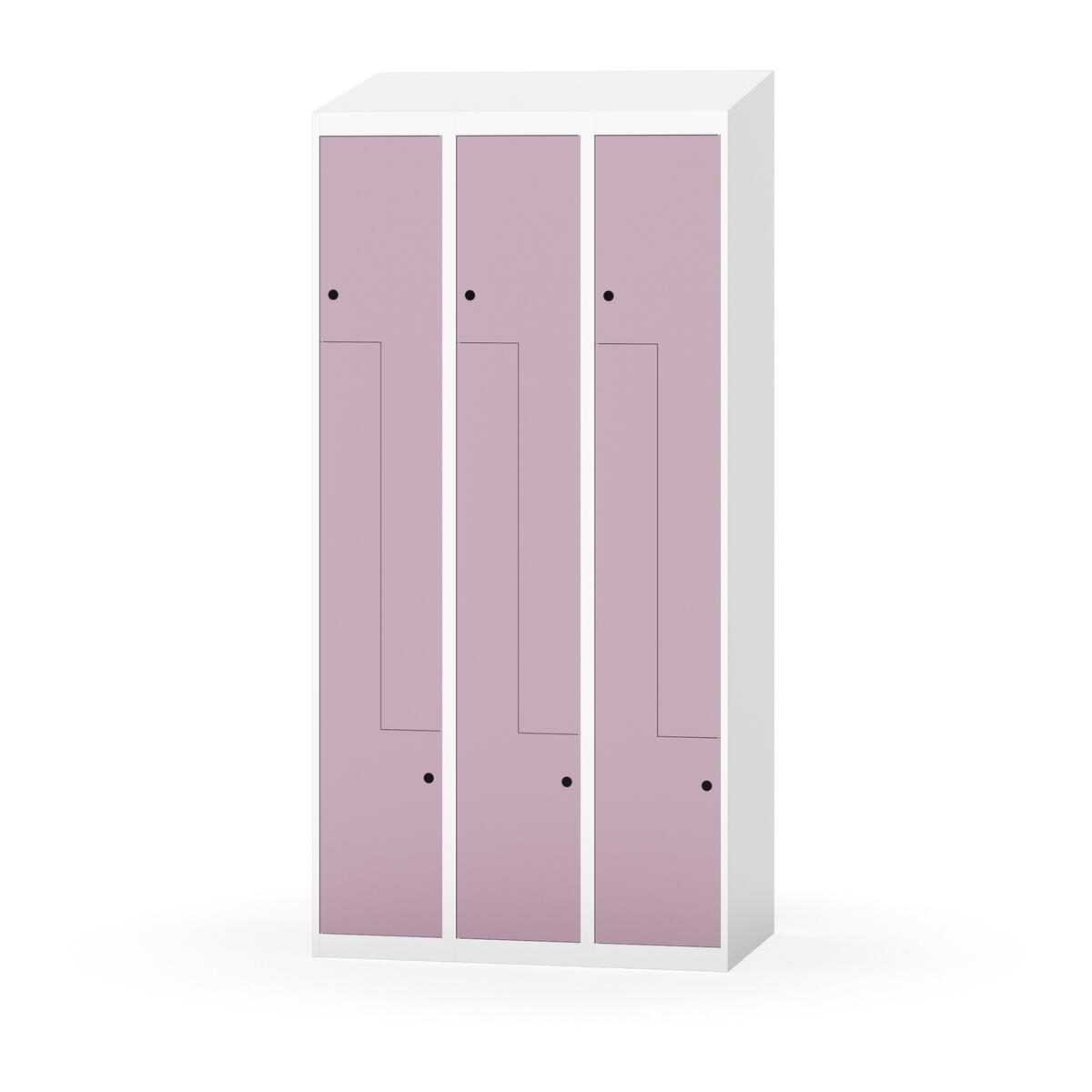 Garderobeskab med fuldsvejset stel. Vælg mellem låge i metal eller laminat. Metallågen er udstyret med dørstopper i stål og indvendig forstærkningsplade omkring låsehullet. Laminatlågen er indstøbt i en stålramme, som er udstyret med dørstopper i stål. Lågerne kan åbnes 90 grader. Indretning: Bøjlestang med to praktiske ankerkroge. Plan bund uden kant. Ventilation gennem huller i top-/bundplade. Bemærk, at lås samt sokkel/ben bestilles på separate varenumre. Leveres med færdigmonteret lås. Det valgte understel monteres ved levering.