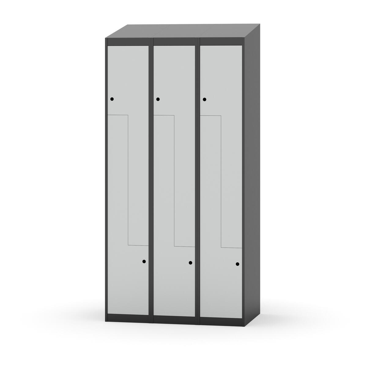 Bruges sammen med en hængelås, som bestilles separat. Fremstillet af blank, galvaniseret stål med sikring af komposit. Låst position forhindrer hængelåsen, at slåen drejer. Når brugeren fjerner hængelåsen, kan slåen drejes 90° og skabet åbnes. Vi anbefaler hængelåse med en bøjletykkelse mellem 5 mm og 8 mm. Velegnet til vores Novis skabe uden laminatlåger.
