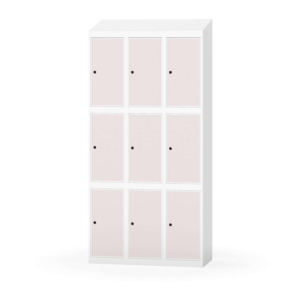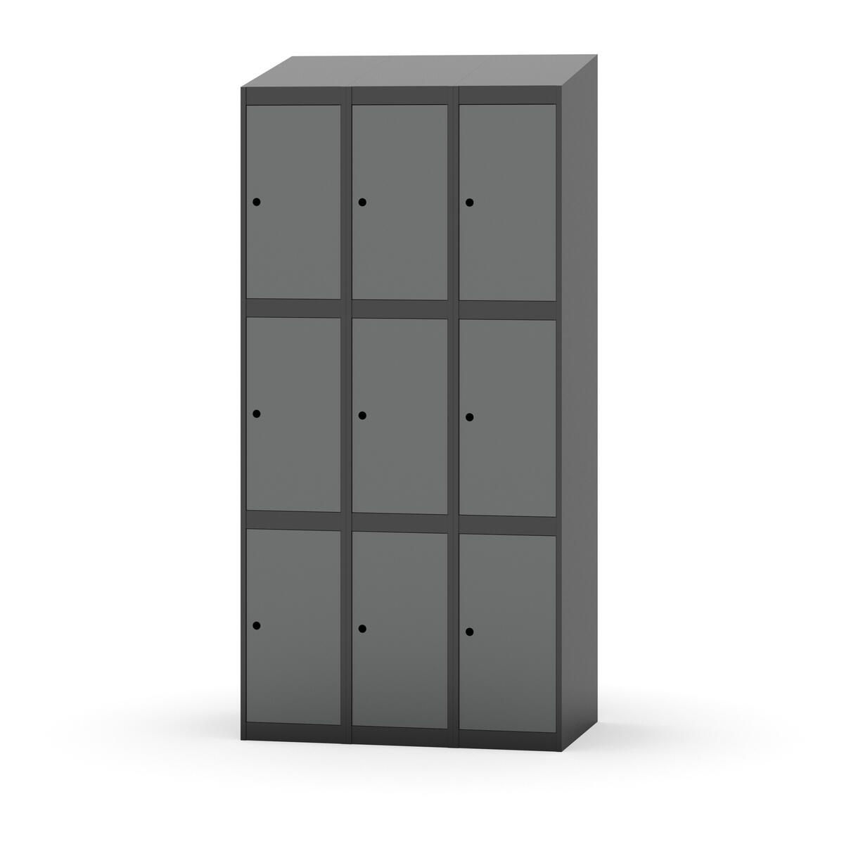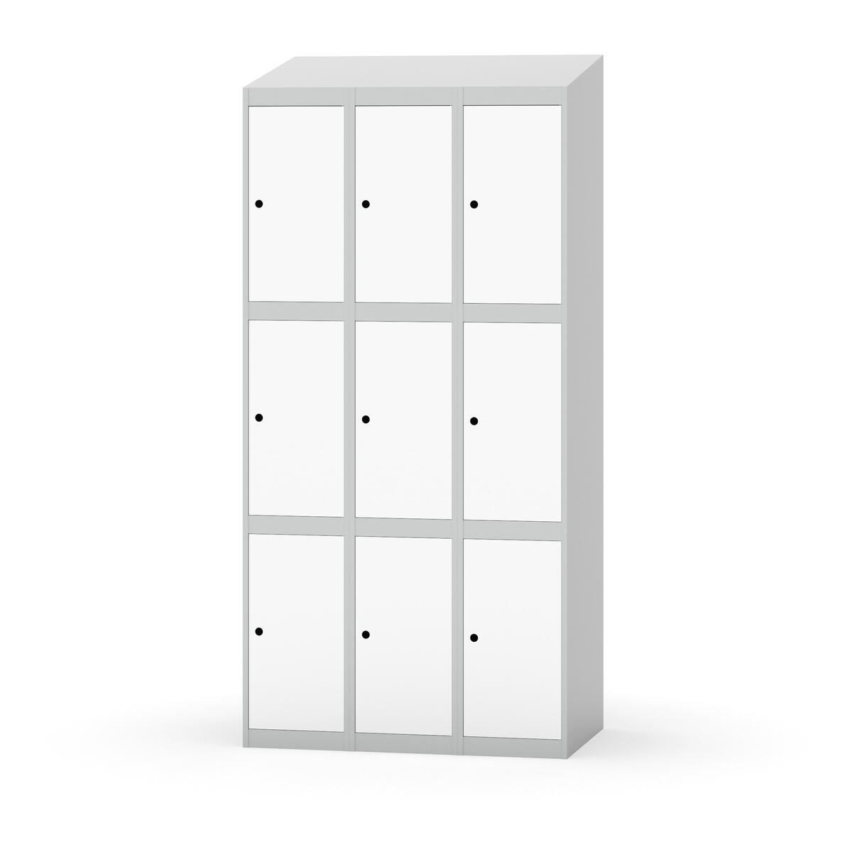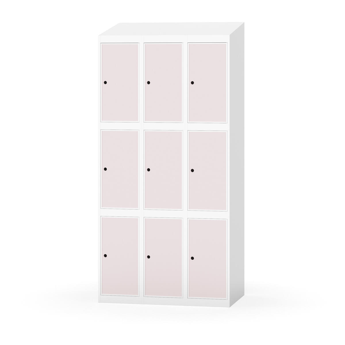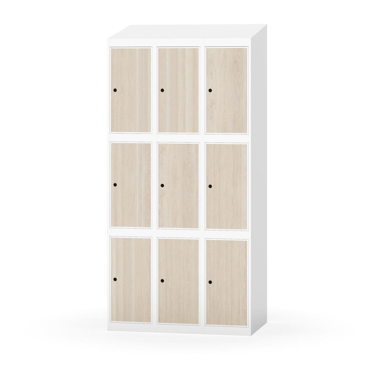 Elevskab som er tilpasset de mest krævende skolemiljøer. Fuldsvejset stel med forstærket låge og karm. Vælg mellem låge i metal eller laminat. Metallågen er udstyret med dørstopper i stål, indvendig forstærkningsplade omkring låsehullet, dobbelte stålplader og en ekstra forstærkning mellem pladerne. Laminatlågen er indstøbt i en stålramme, som er udstyret med dørstopper i stål. Lågerne kan åbnes 90 grader. Indretning: Ingen. Plan bund uden kant. Ventilation gennem huller i top-/bundplade. Bemærk, at lås samt sokkel/ben bestilles på separate varenumre. Leveres med færdigmonteret lås. Det valgte understel monteres ved levering.