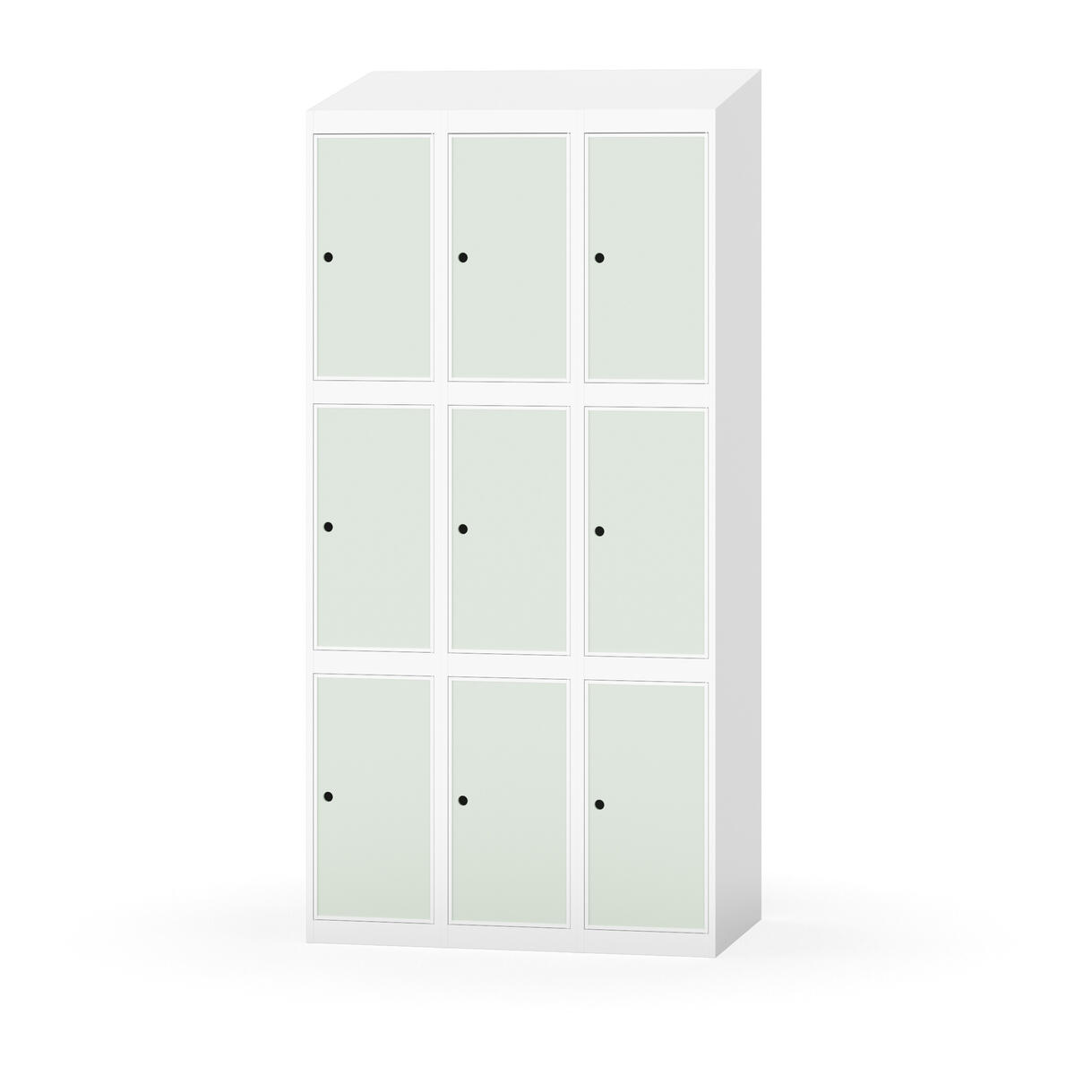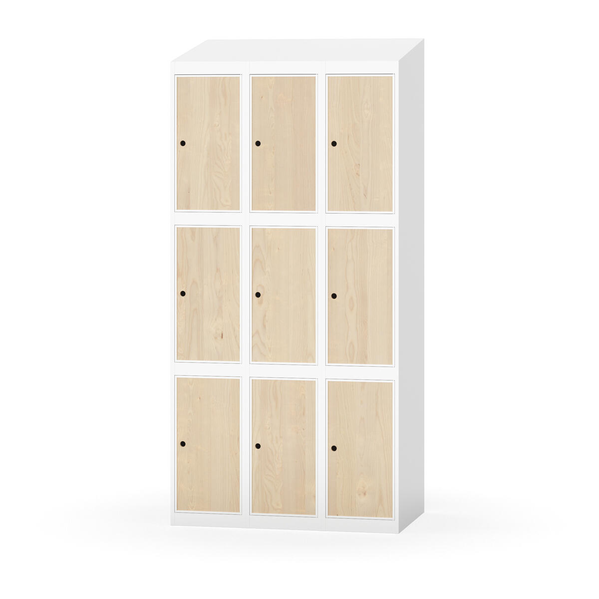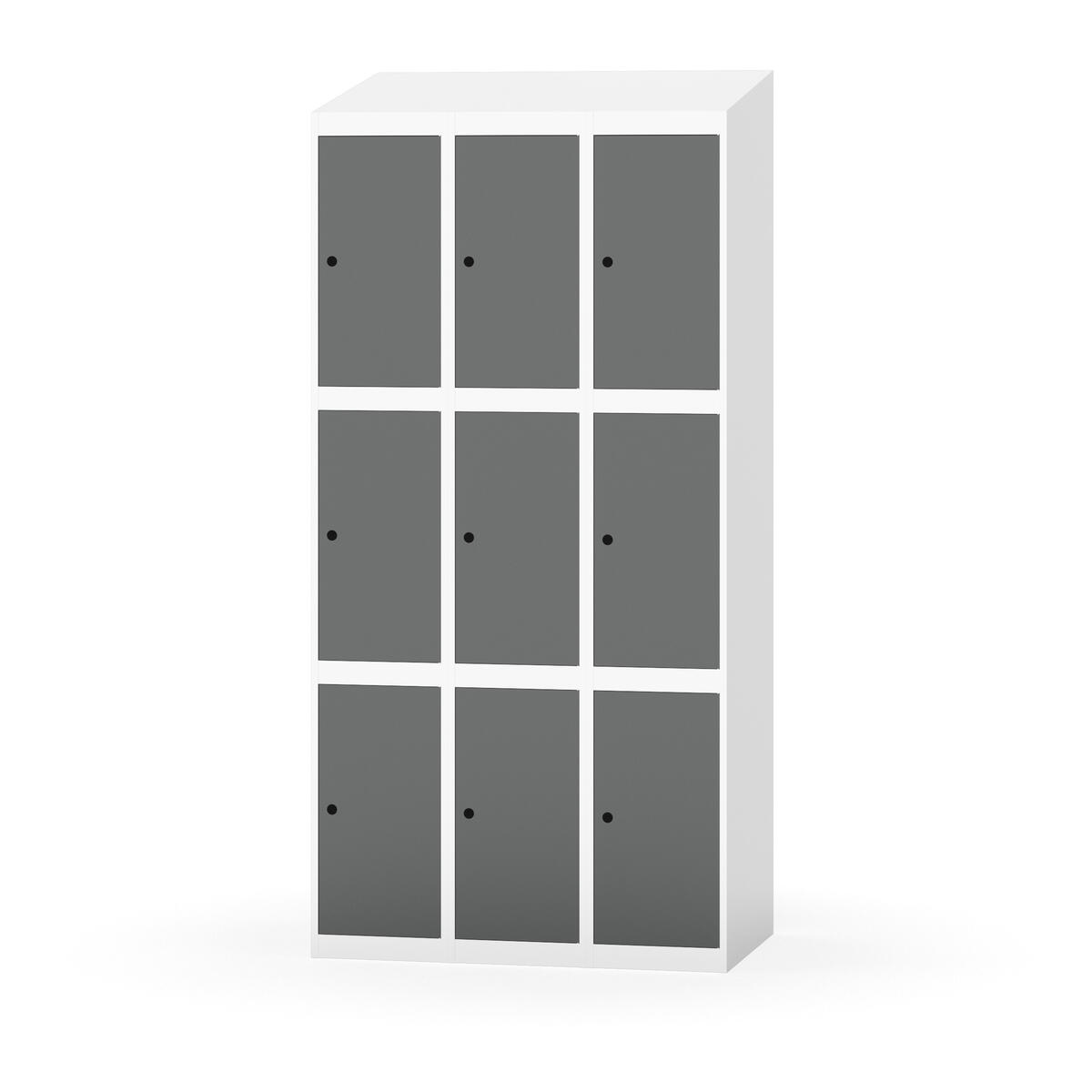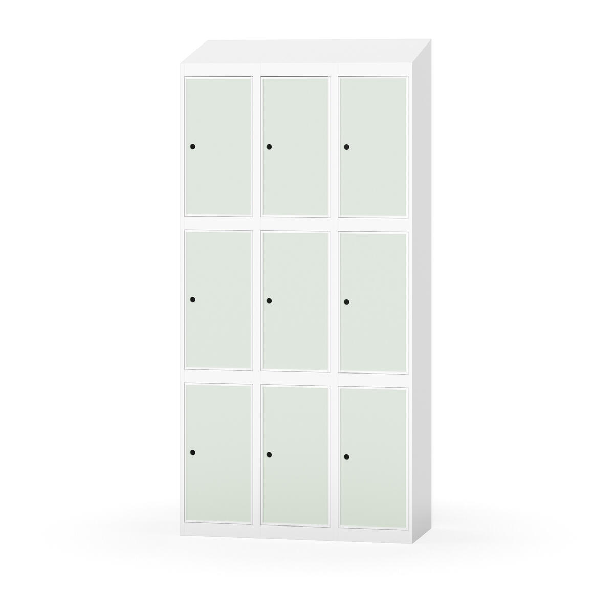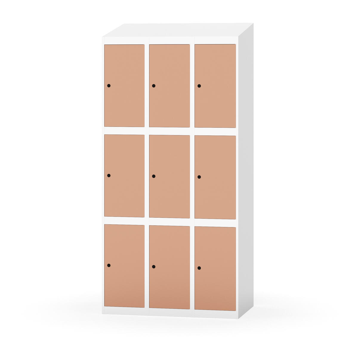 Elevskab som er tilpasset de mest krævende skolemiljøer. Fuldsvejset stel med forstærket låge og karm. Vælg mellem låge i metal eller laminat. Metallågen er udstyret med dørstopper i stål, indvendig forstærkningsplade omkring låsehullet, dobbelte stålplader og en ekstra forstærkning mellem pladerne. Laminatlågen er indstøbt i en stålramme, som er udstyret med dørstopper i stål. Lågerne kan åbnes 90 grader. Indretning: Ingen. Plan bund uden kant. Ventilation gennem huller i top-/bundplade. Bemærk, at lås samt sokkel/ben bestilles på separate varenumre. Leveres med færdigmonteret lås. Det valgte understel monteres ved levering.