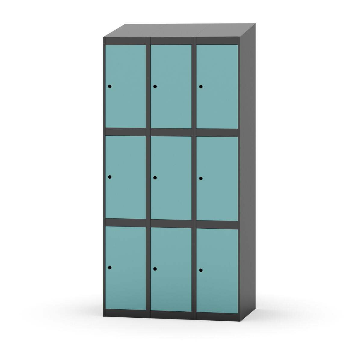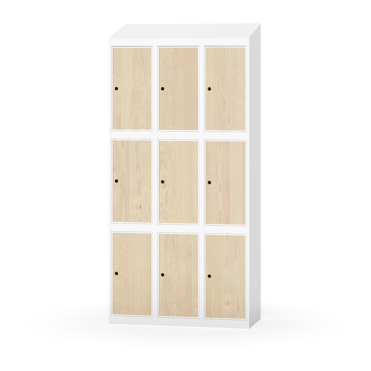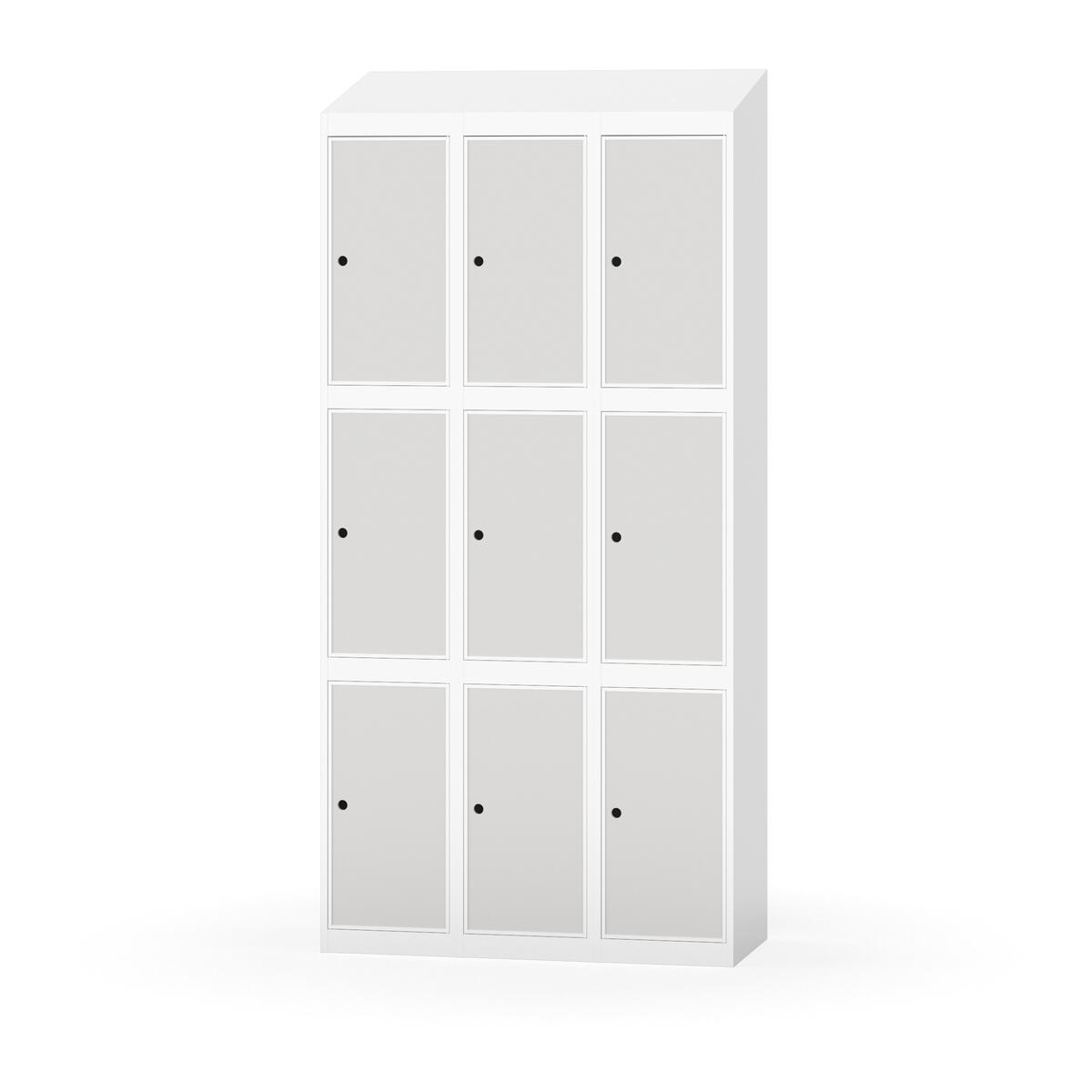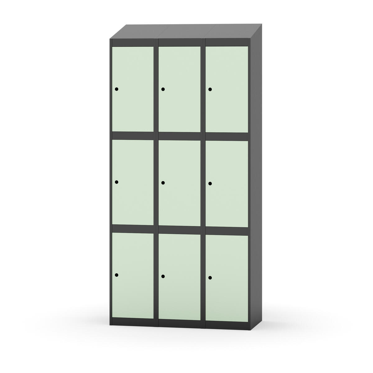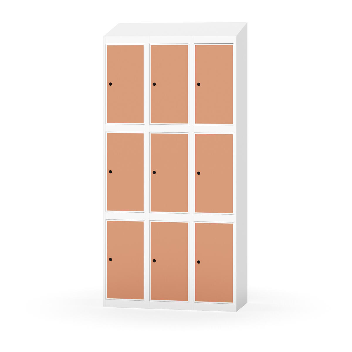 Elevskab som er tilpasset de mest krævende skolemiljøer. Fuldsvejset stel med forstærket låge og karm. Vælg mellem låge i metal eller laminat. Metallågen er udstyret med dørstopper i stål, indvendig forstærkningsplade omkring låsehullet, dobbelte stålplader og en ekstra forstærkning mellem pladerne. Laminatlågen er indstøbt i en stålramme, som er udstyret med dørstopper i stål. Lågerne kan åbnes 90 grader. Indretning: Ingen. Plan bund uden kant. Ventilation gennem huller i top-/bundplade. Bemærk, at lås samt sokkel/ben bestilles på separate varenumre. Leveres med færdigmonteret lås. Det valgte understel monteres ved levering.