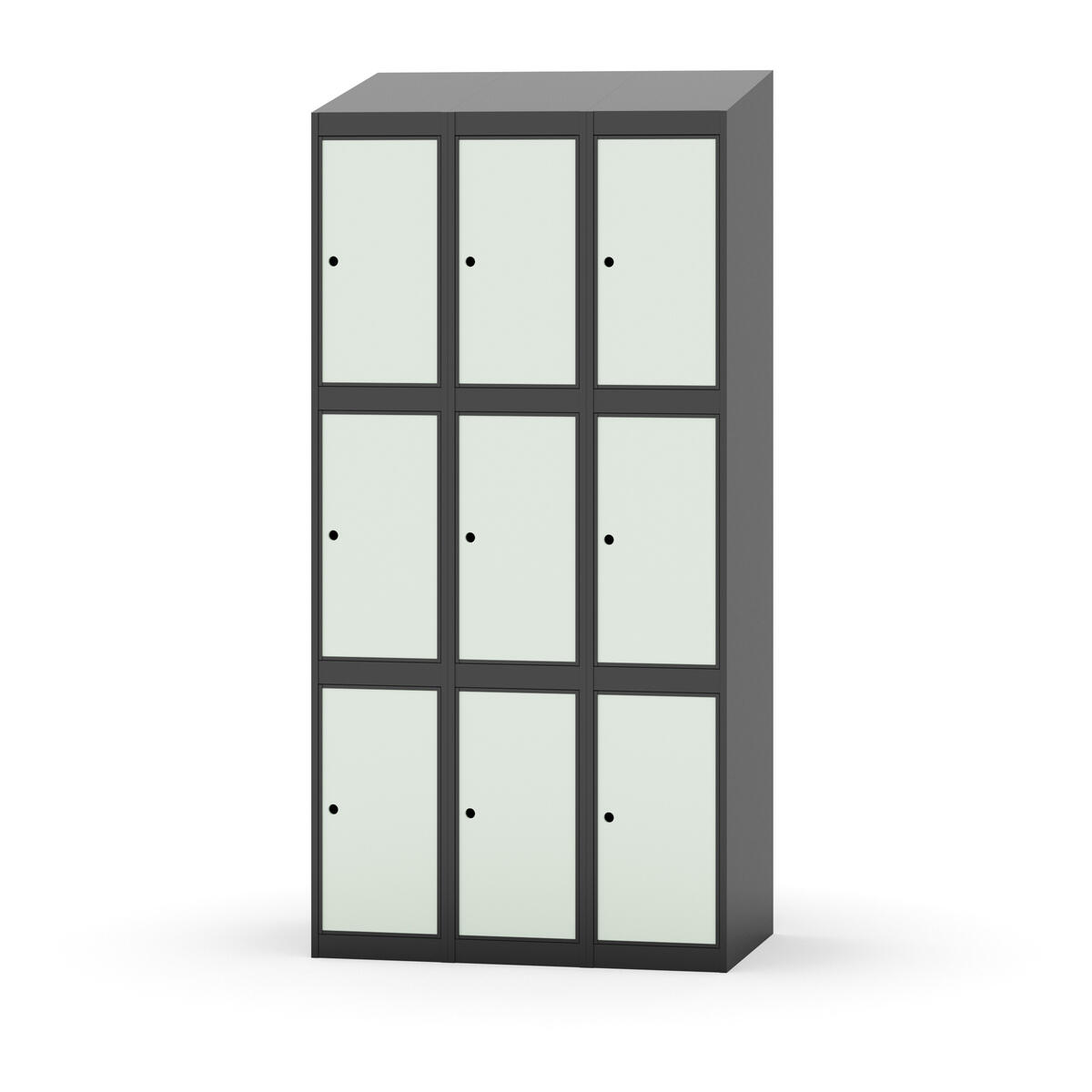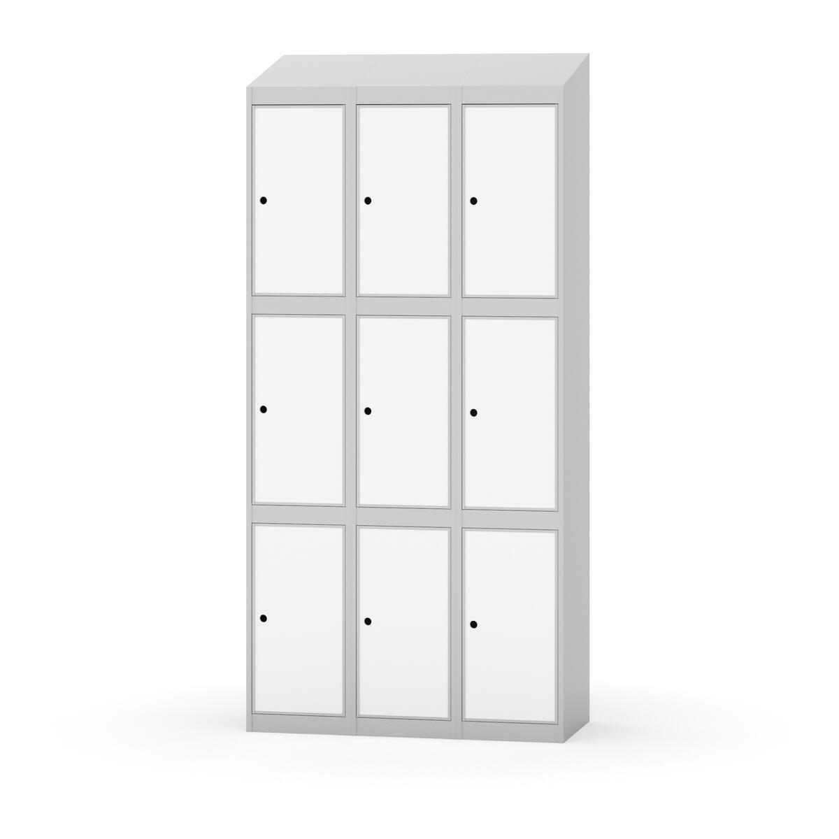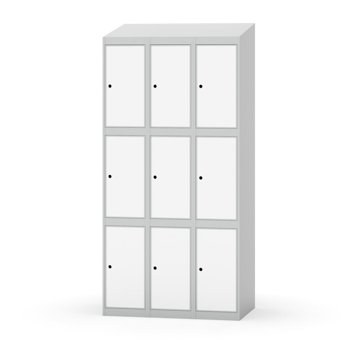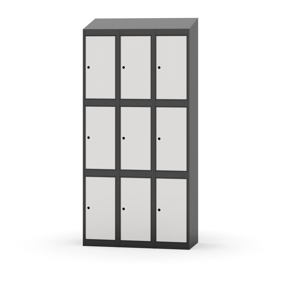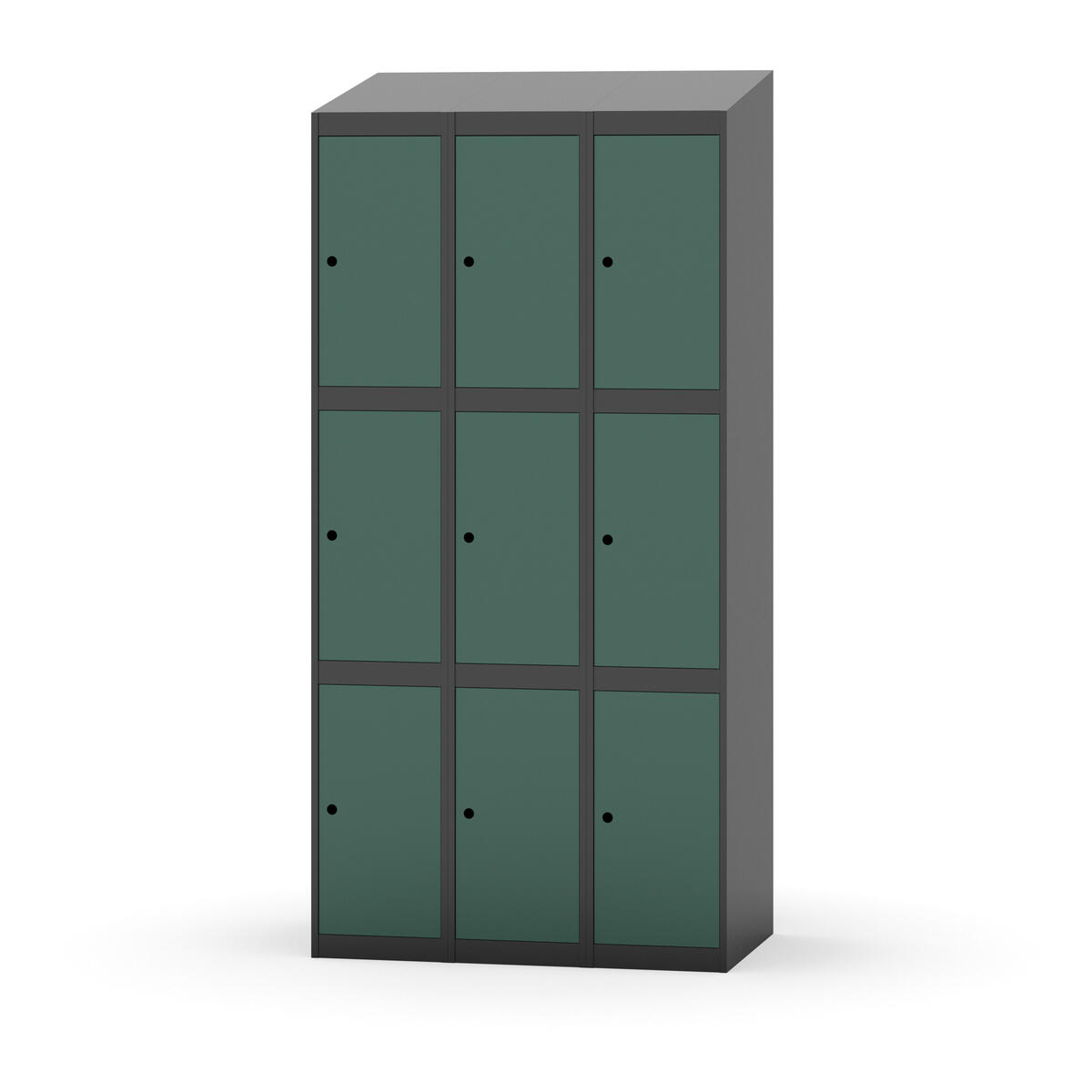 Elevskab som er tilpasset de mest krævende skolemiljøer. Fuldsvejset stel med forstærket låge og karm. Vælg mellem låge i metal eller laminat. Metallågen er udstyret med dørstopper i stål, indvendig forstærkningsplade omkring låsehullet, dobbelte stålplader og en ekstra forstærkning mellem pladerne. Laminatlågen er indstøbt i en stålramme, som er udstyret med dørstopper i stål. Lågerne kan åbnes 90 grader. Indretning: Ingen. Plan bund uden kant. Ventilation gennem huller i top-/bundplade. Bemærk, at lås samt sokkel/ben bestilles på separate varenumre. Leveres med færdigmonteret lås. Det valgte understel monteres ved levering.