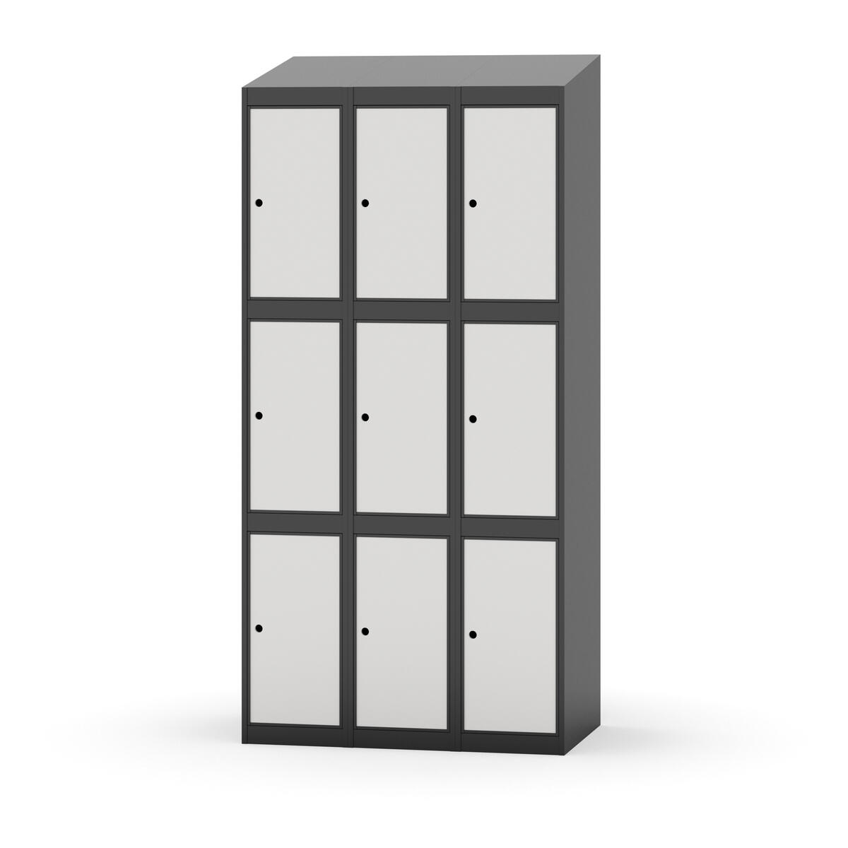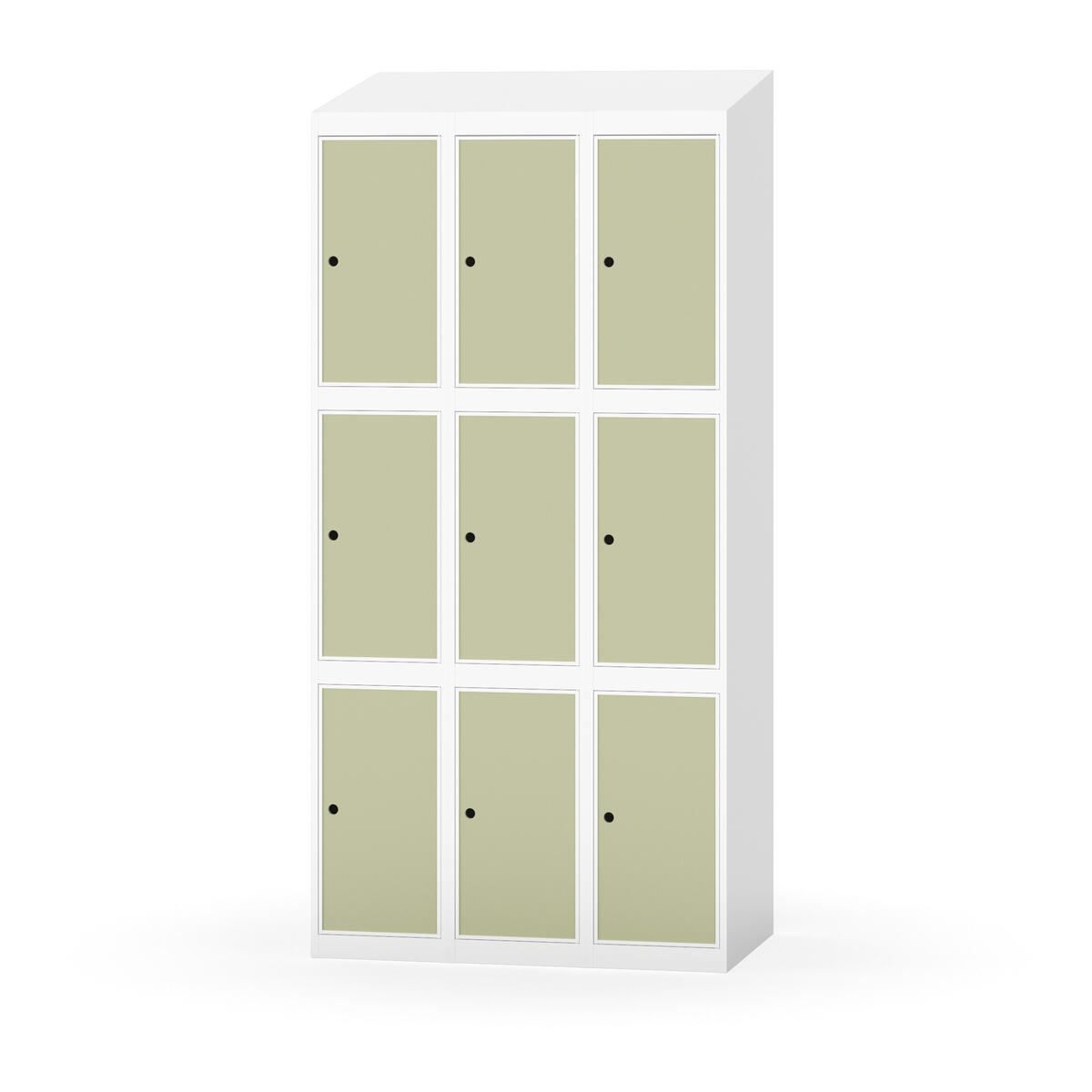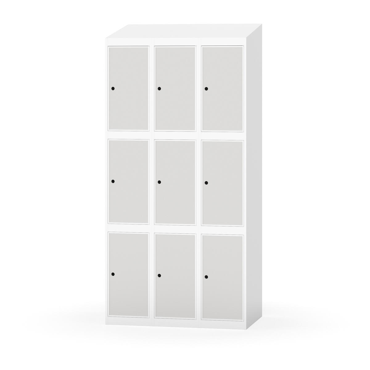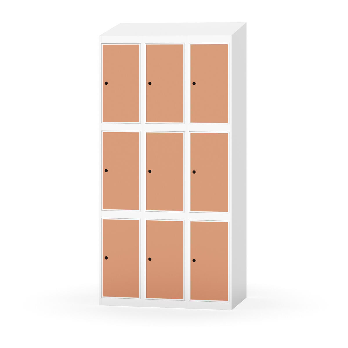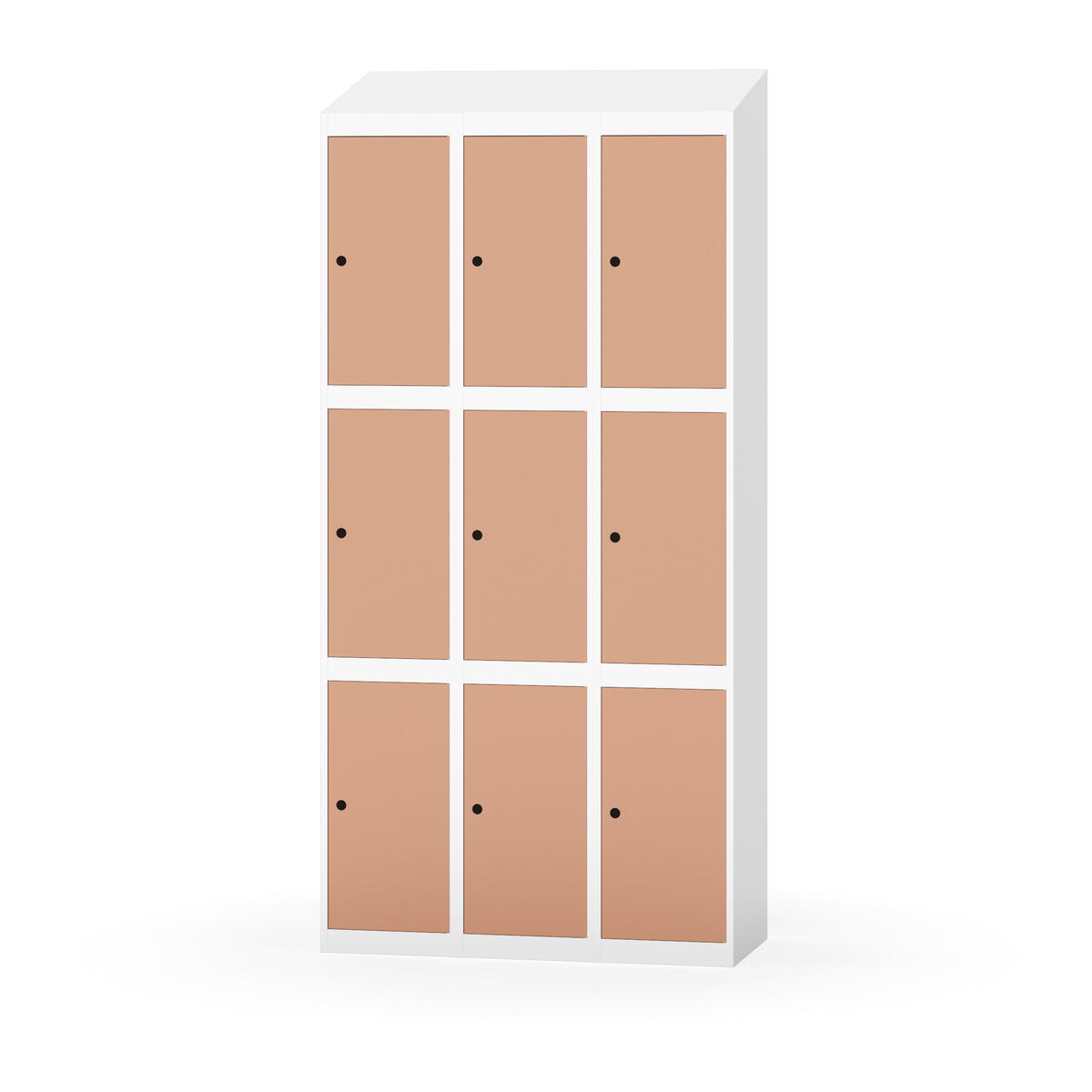 Elevskab som er tilpasset de mest krævende skolemiljøer. Fuldsvejset stel med forstærket låge og karm. Vælg mellem låge i metal eller laminat. Metallågen er udstyret med dørstopper i stål, indvendig forstærkningsplade omkring låsehullet, dobbelte stålplader og en ekstra forstærkning mellem pladerne. Laminatlågen er indstøbt i en stålramme, som er udstyret med dørstopper i stål. Lågerne kan åbnes 90 grader. Indretning: Ingen. Plan bund uden kant. Ventilation gennem huller i top-/bundplade. Bemærk, at lås samt sokkel/ben bestilles på separate varenumre. Leveres med færdigmonteret lås. Det valgte understel monteres ved levering.