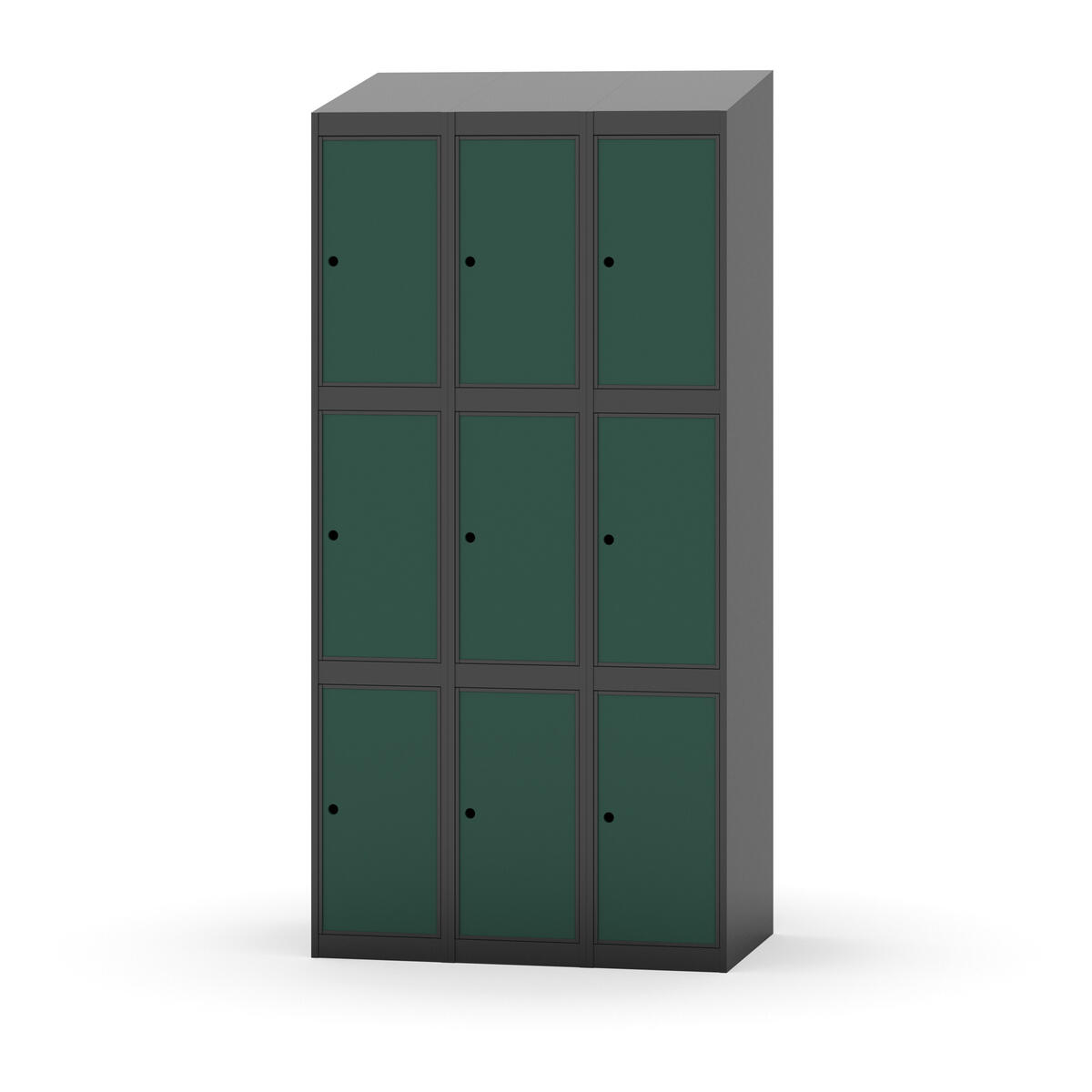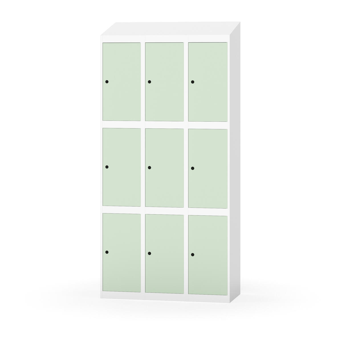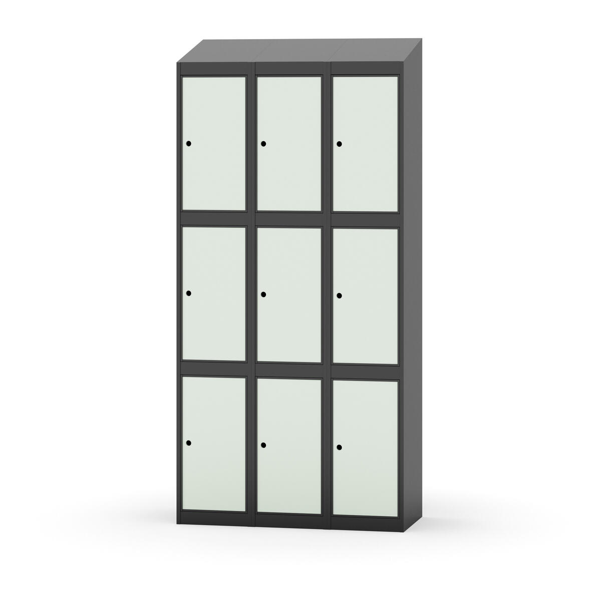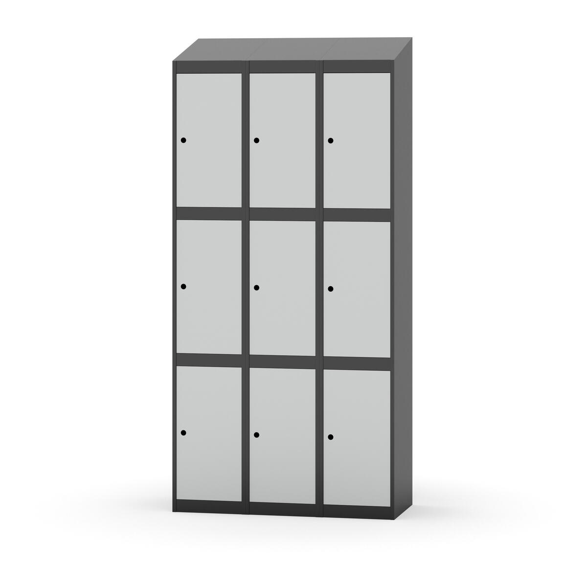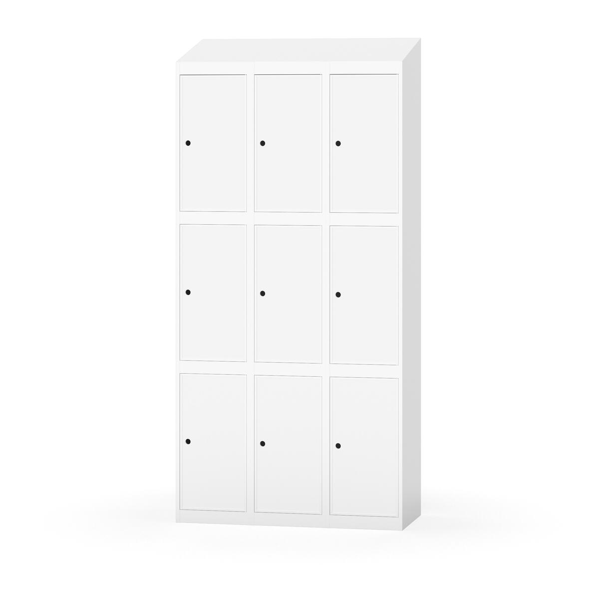 Elevskab som er tilpasset de mest krævende skolemiljøer. Fuldsvejset stel med forstærket låge og karm. Vælg mellem låge i metal eller laminat. Metallågen er udstyret med dørstopper i stål, indvendig forstærkningsplade omkring låsehullet, dobbelte stålplader og en ekstra forstærkning mellem pladerne. Laminatlågen er indstøbt i en stålramme, som er udstyret med dørstopper i stål. Lågerne kan åbnes 90 grader. Indretning: Ingen. Plan bund uden kant. Ventilation gennem huller i top-/bundplade. Bemærk, at lås samt sokkel/ben bestilles på separate varenumre. Leveres med færdigmonteret lås. Det valgte understel monteres ved levering.