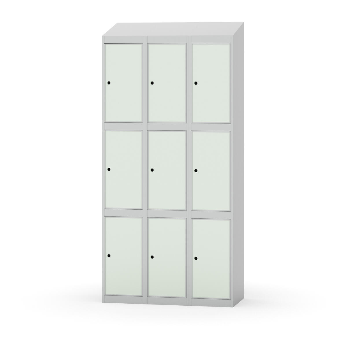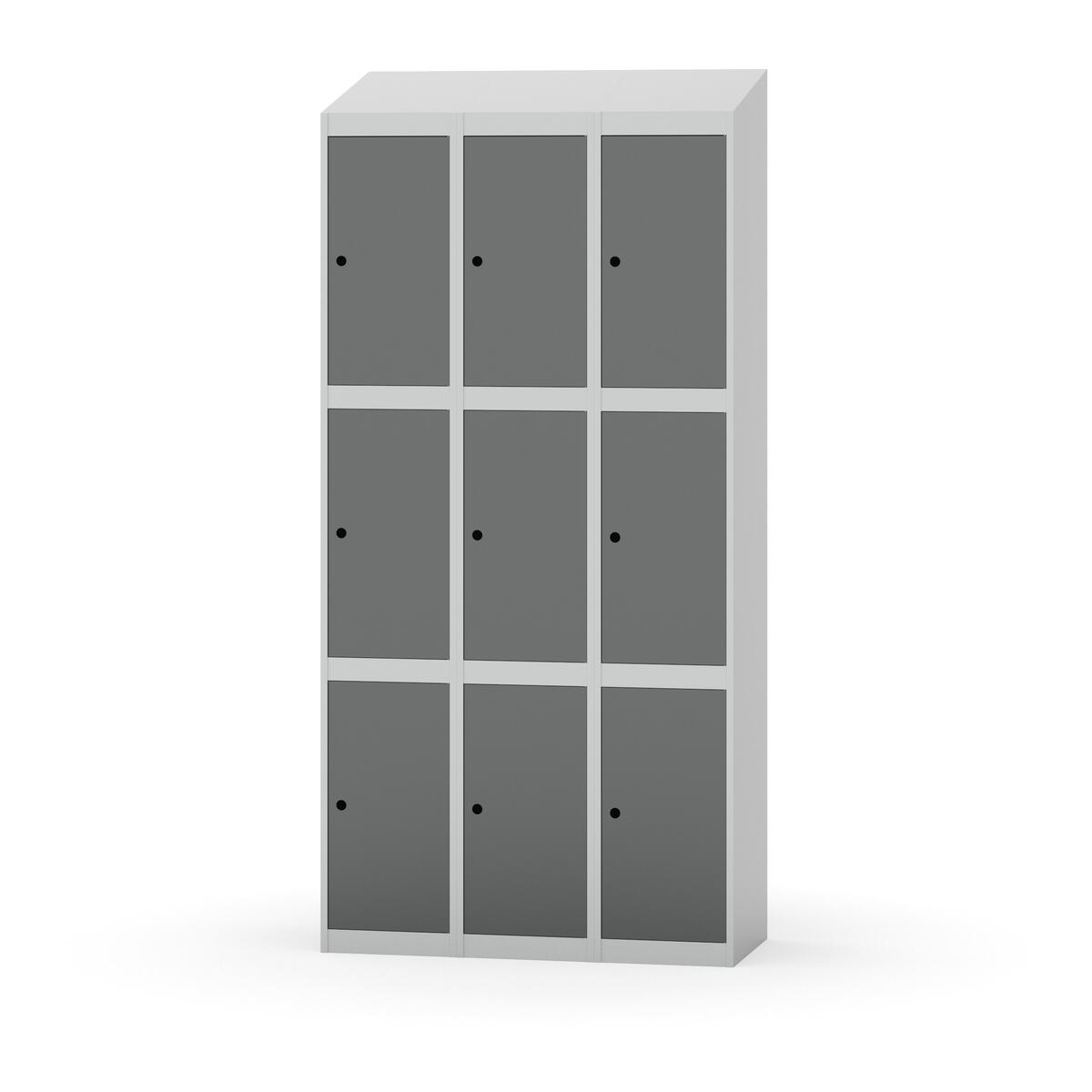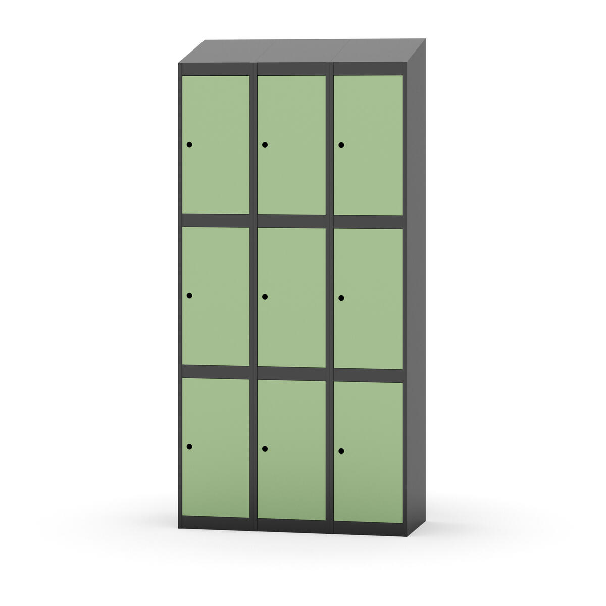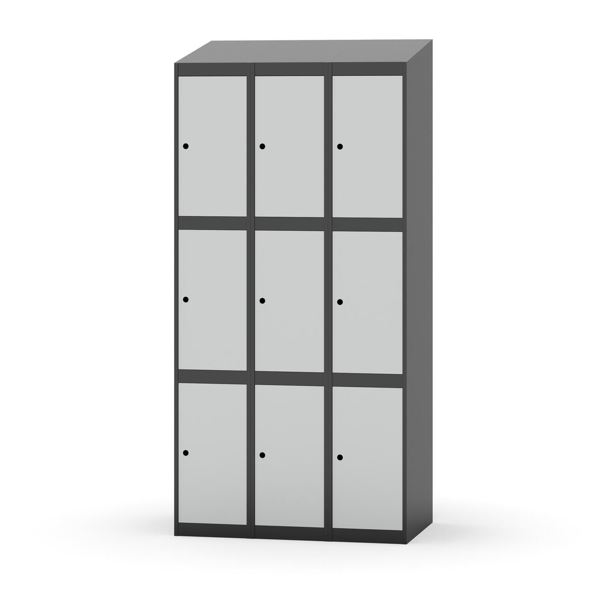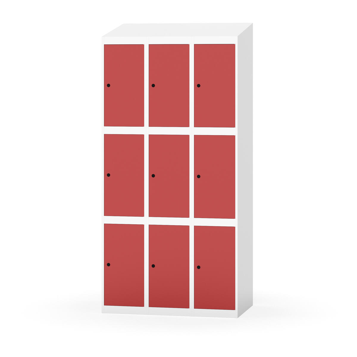 Elevskab som er tilpasset de mest krævende skolemiljøer. Fuldsvejset stel med forstærket låge og karm. Vælg mellem låge i metal eller laminat. Metallågen er udstyret med dørstopper i stål, indvendig forstærkningsplade omkring låsehullet, dobbelte stålplader og en ekstra forstærkning mellem pladerne. Laminatlågen er indstøbt i en stålramme, som er udstyret med dørstopper i stål. Lågerne kan åbnes 90 grader. Indretning: Ingen. Plan bund uden kant. Ventilation gennem huller i top-/bundplade. Bemærk, at lås samt sokkel/ben bestilles på separate varenumre. Leveres med færdigmonteret lås. Det valgte understel monteres ved levering.