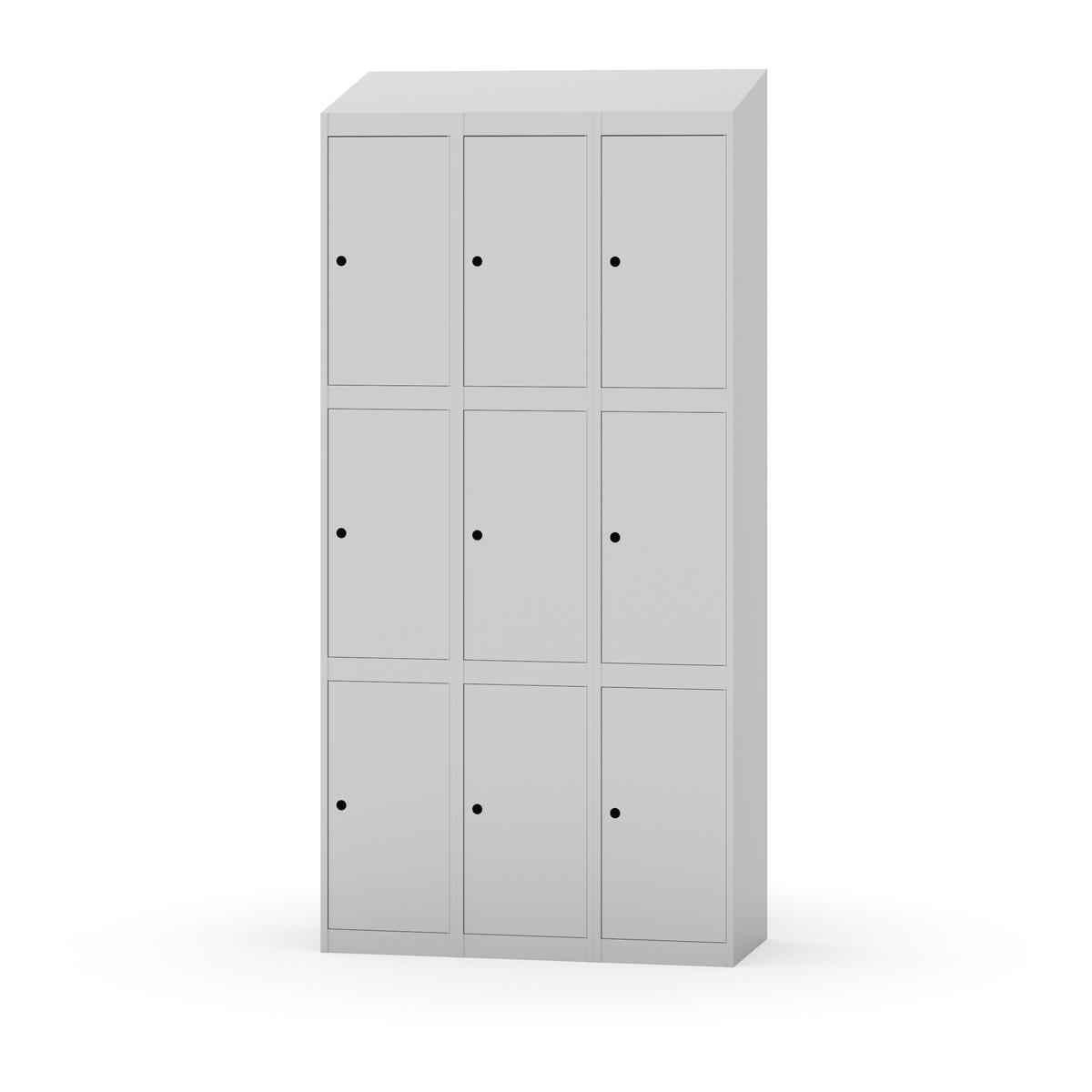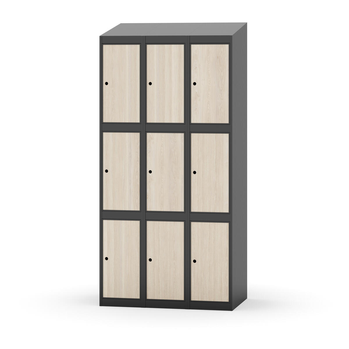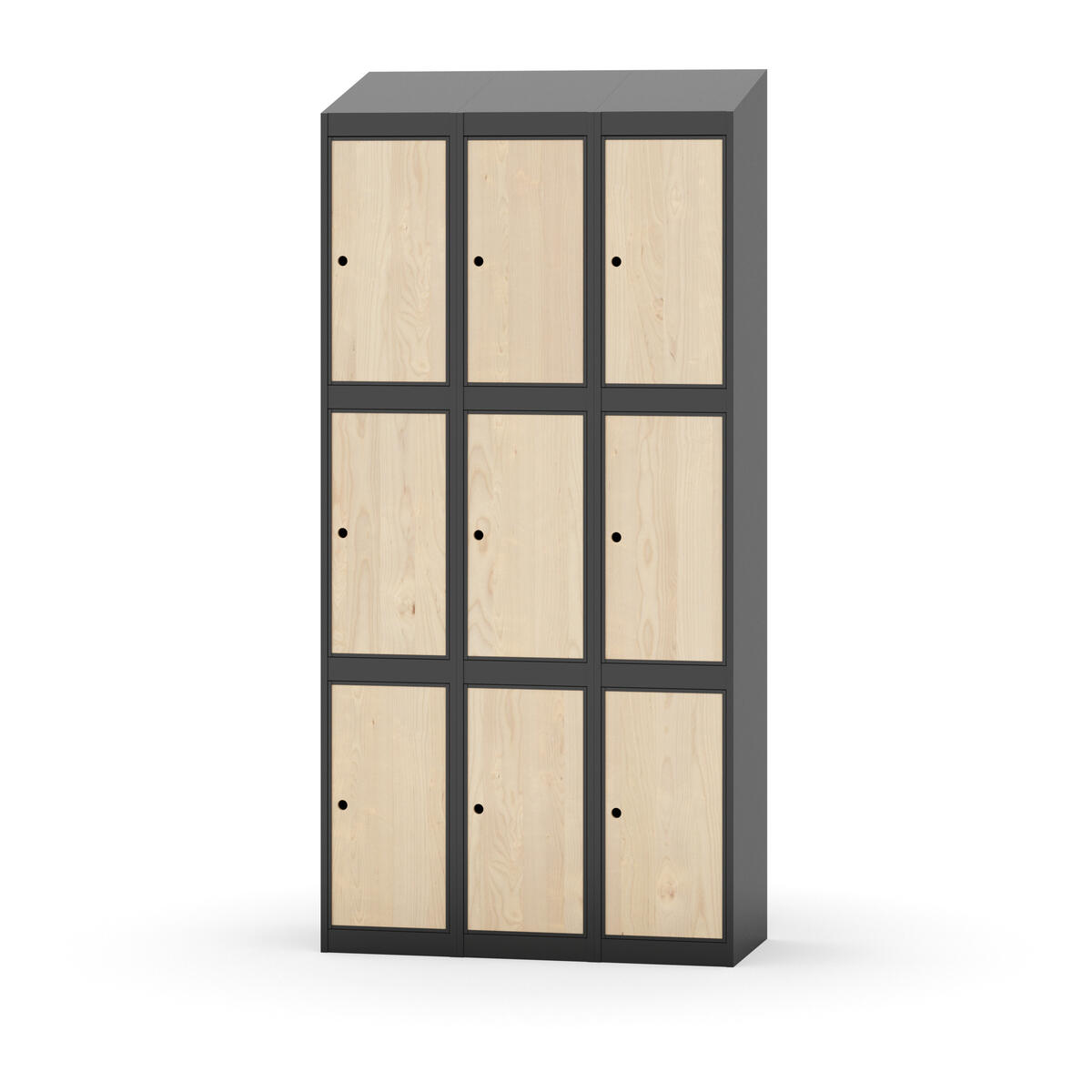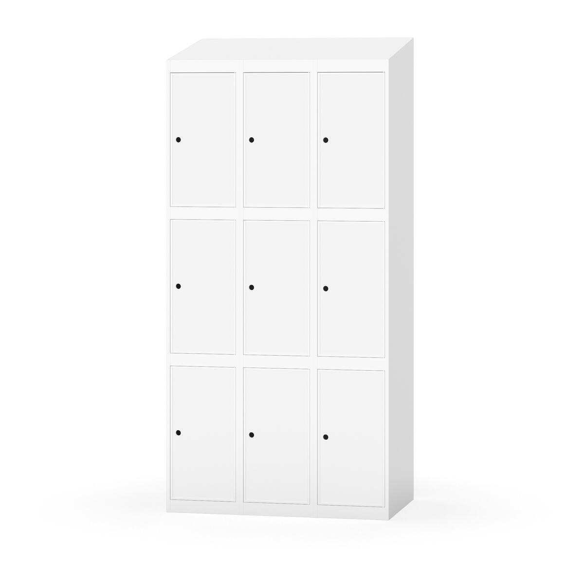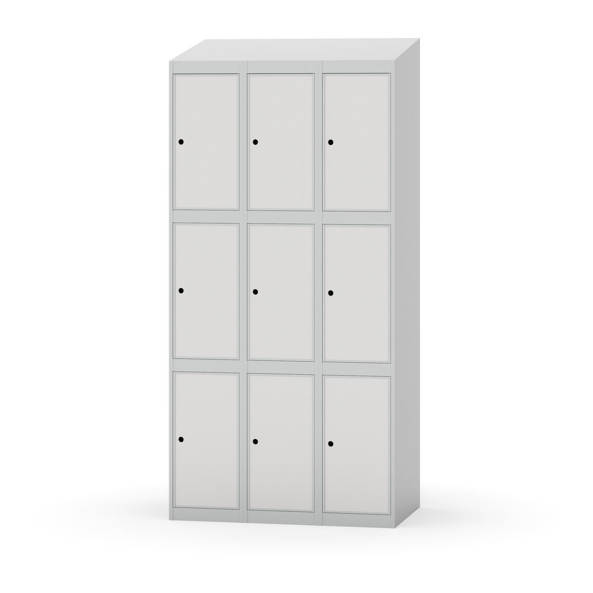 Elevskab som er tilpasset de mest krævende skolemiljøer. Fuldsvejset stel med forstærket låge og karm. Vælg mellem låge i metal eller laminat. Metallågen er udstyret med dørstopper i stål, indvendig forstærkningsplade omkring låsehullet, dobbelte stålplader og en ekstra forstærkning mellem pladerne. Laminatlågen er indstøbt i en stålramme, som er udstyret med dørstopper i stål. Lågerne kan åbnes 90 grader. Indretning: Ingen. Plan bund uden kant. Ventilation gennem huller i top-/bundplade. Bemærk, at lås samt sokkel/ben bestilles på separate varenumre. Leveres med færdigmonteret lås. Det valgte understel monteres ved levering.