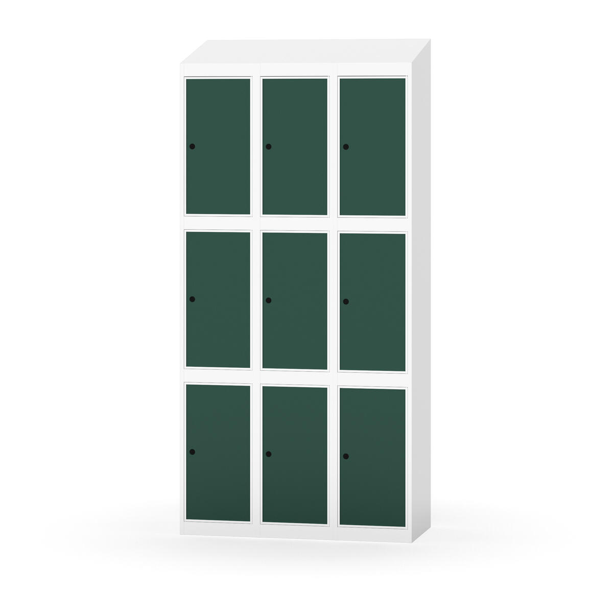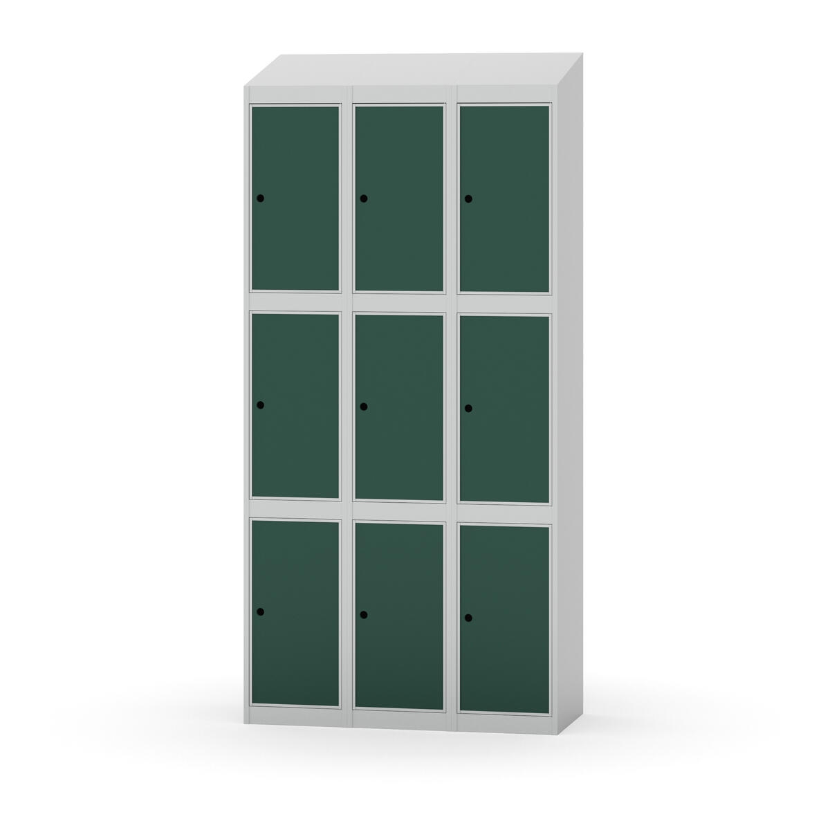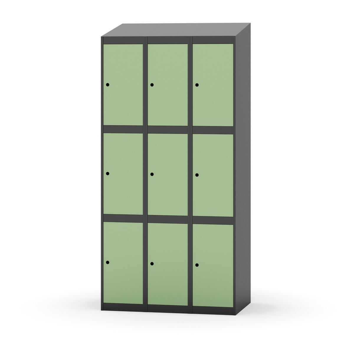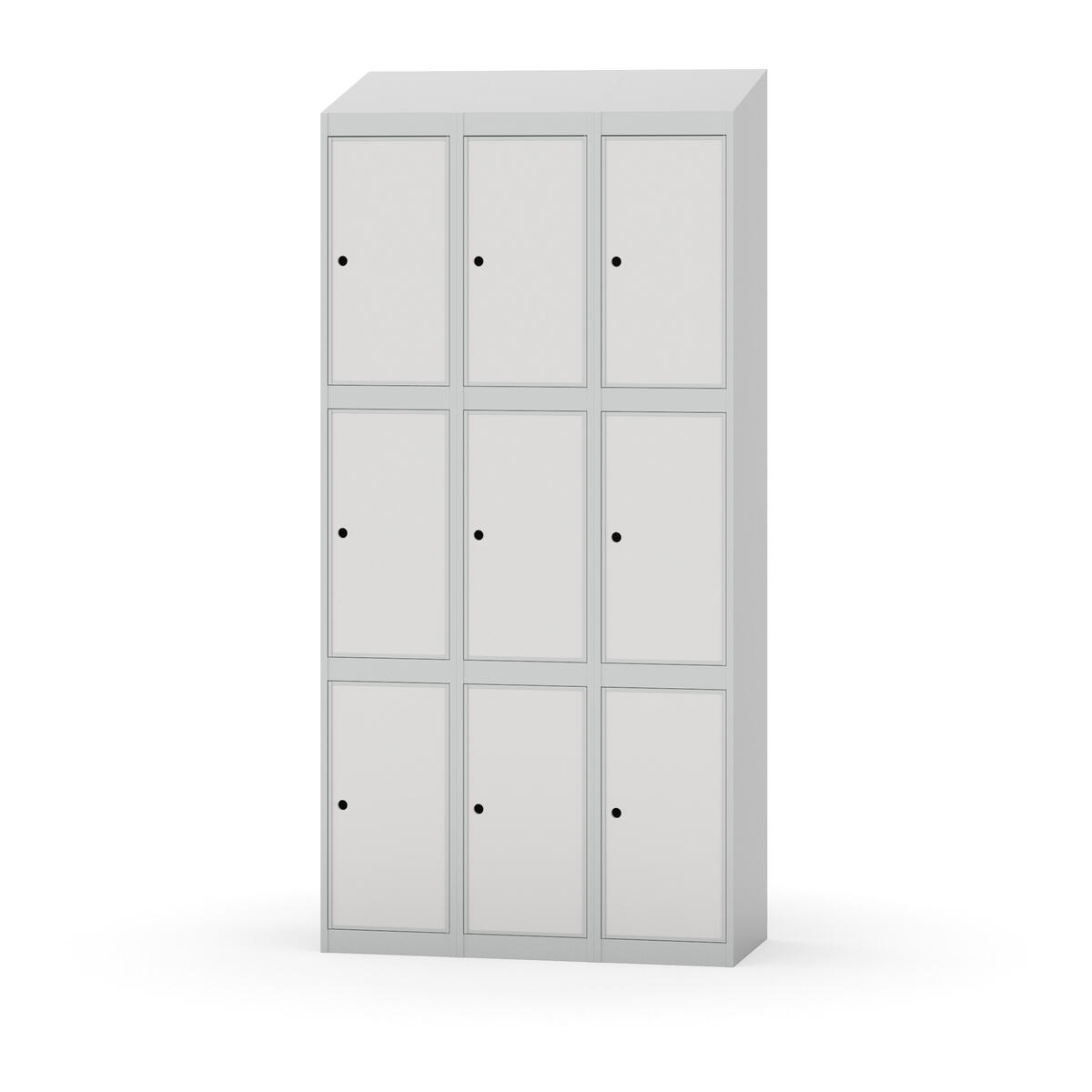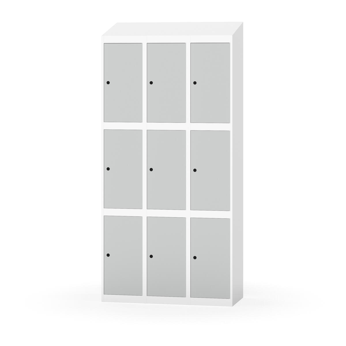 Elevskab som er tilpasset de mest krævende skolemiljøer. Fuldsvejset stel med forstærket låge og karm. Vælg mellem låge i metal eller laminat. Metallågen er udstyret med dørstopper i stål, indvendig forstærkningsplade omkring låsehullet, dobbelte stålplader og en ekstra forstærkning mellem pladerne. Laminatlågen er indstøbt i en stålramme, som er udstyret med dørstopper i stål. Lågerne kan åbnes 90 grader. Indretning: Ingen. Plan bund uden kant. Ventilation gennem huller i top-/bundplade. Bemærk, at lås samt sokkel/ben bestilles på separate varenumre. Leveres med færdigmonteret lås. Det valgte understel monteres ved levering.