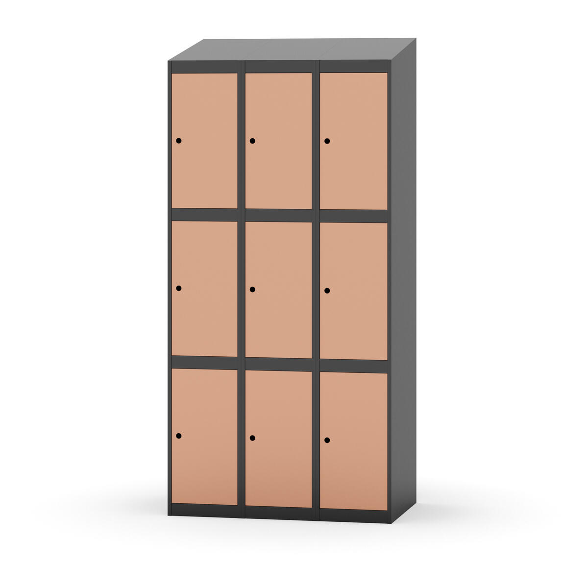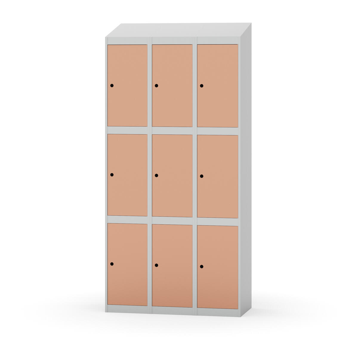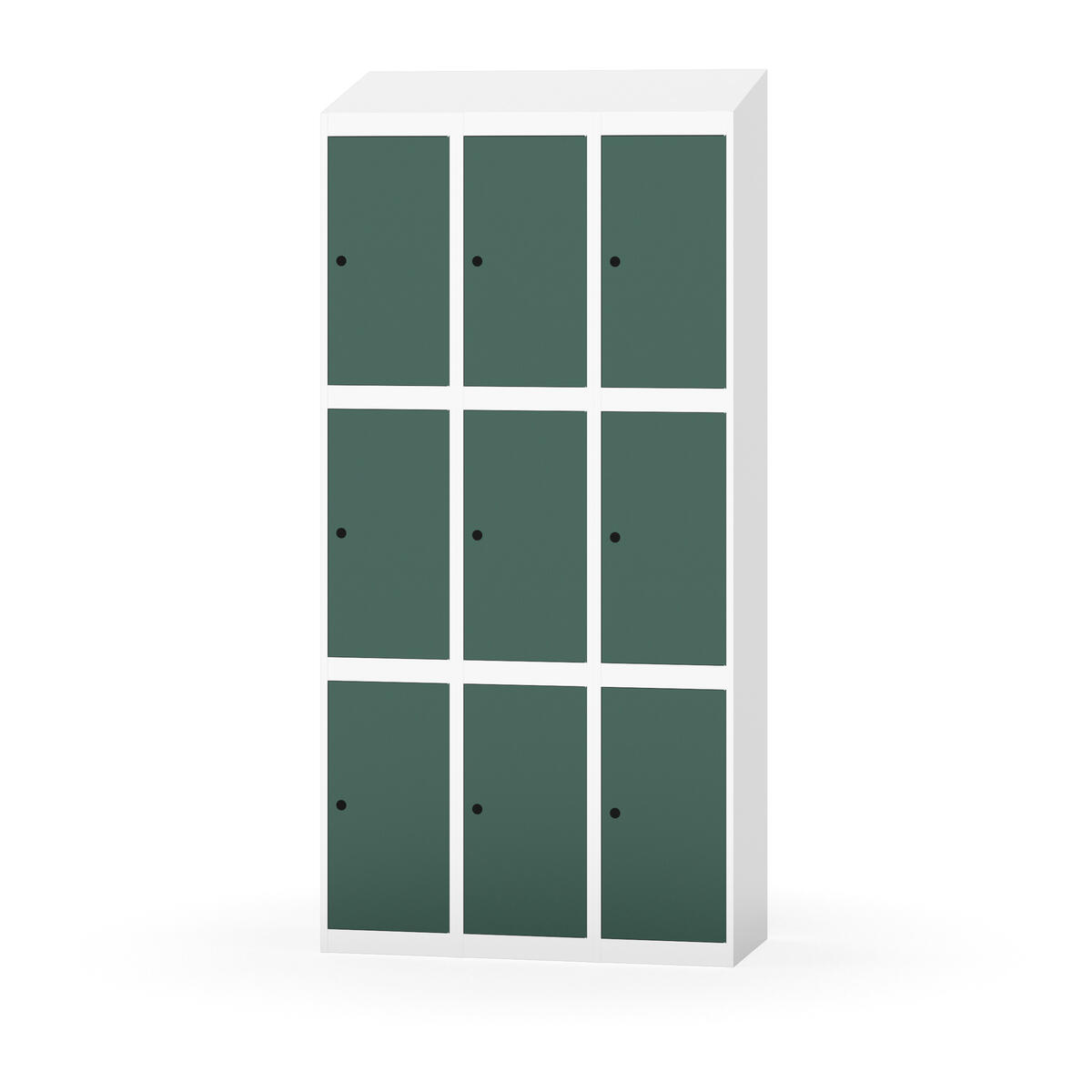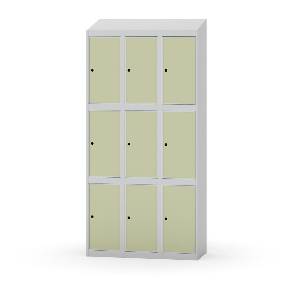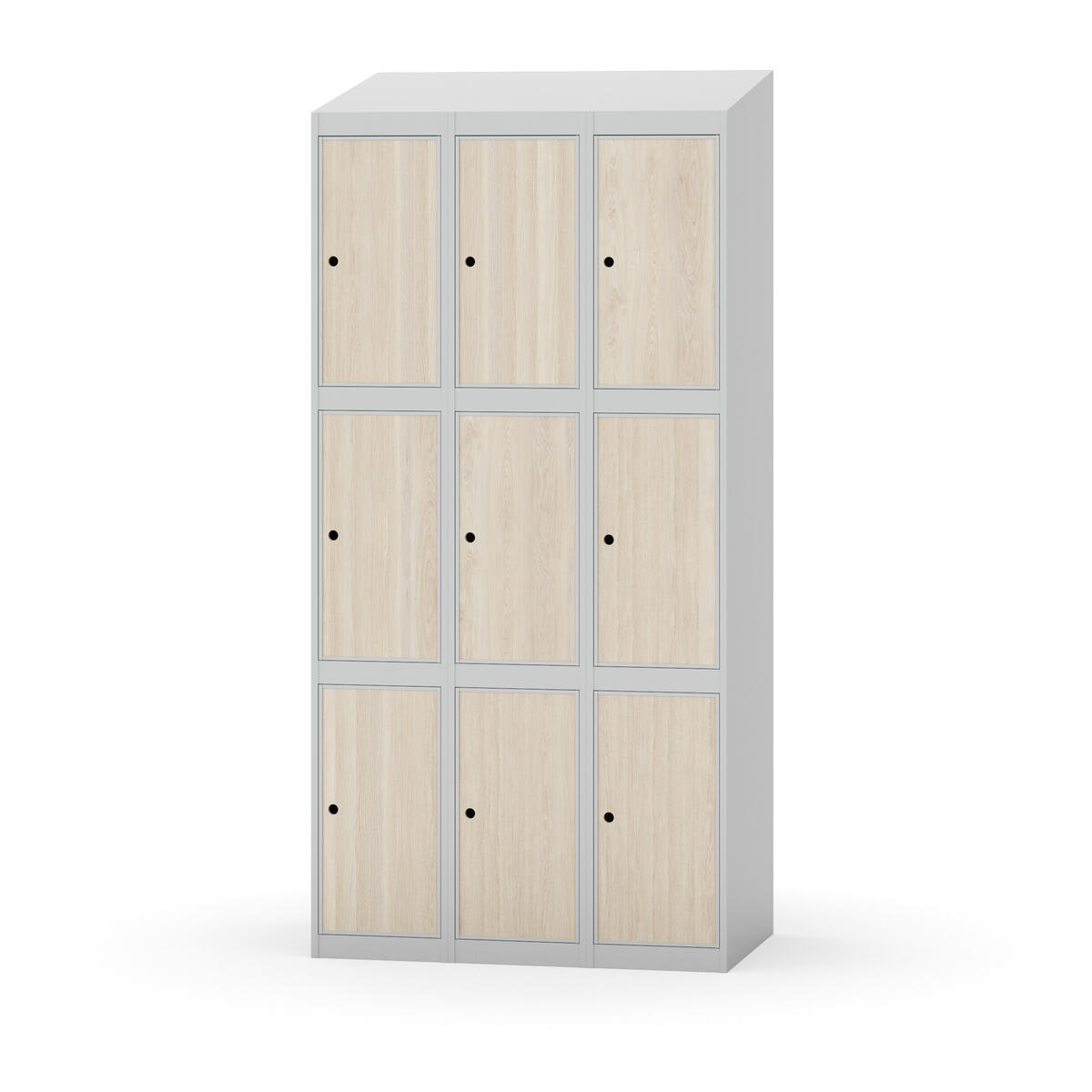 Elevskab som er tilpasset de mest krævende skolemiljøer. Fuldsvejset stel med forstærket låge og karm. Vælg mellem låge i metal eller laminat. Metallågen er udstyret med dørstopper i stål, indvendig forstærkningsplade omkring låsehullet, dobbelte stålplader og en ekstra forstærkning mellem pladerne. Laminatlågen er indstøbt i en stålramme, som er udstyret med dørstopper i stål. Lågerne kan åbnes 90 grader. Indretning: Ingen. Plan bund uden kant. Ventilation gennem huller i top-/bundplade. Bemærk, at lås samt sokkel/ben bestilles på separate varenumre. Leveres med færdigmonteret lås. Det valgte understel monteres ved levering.