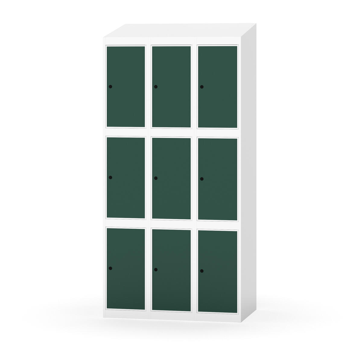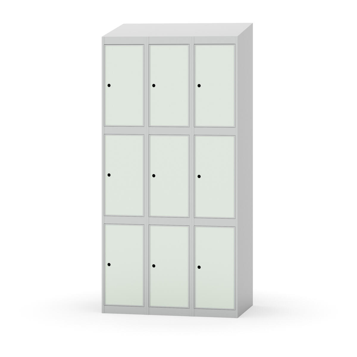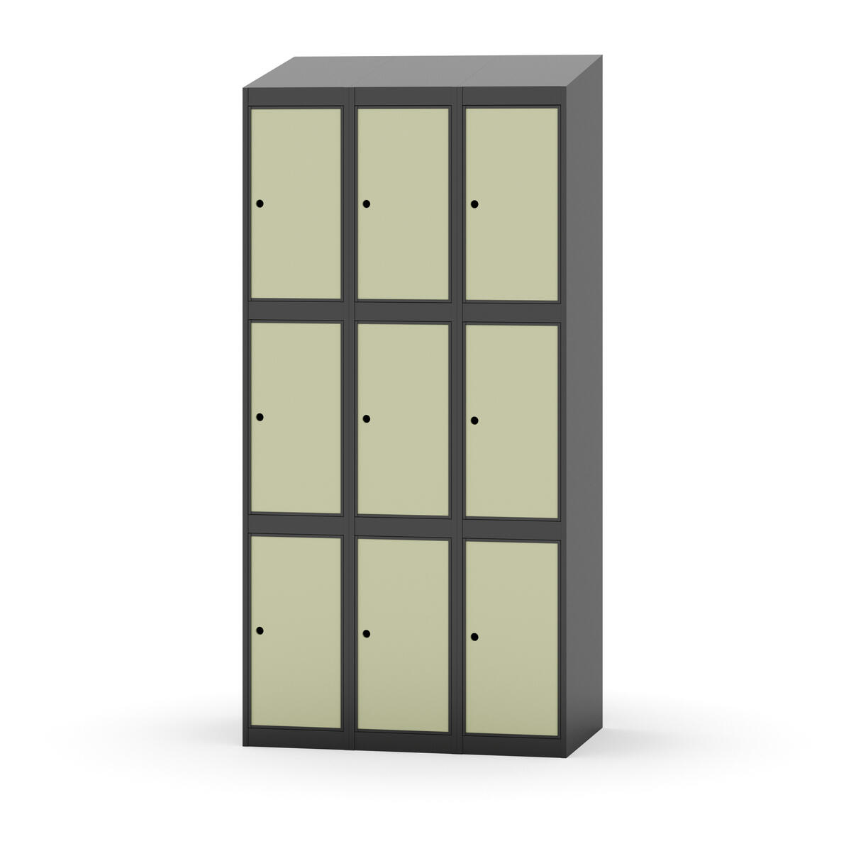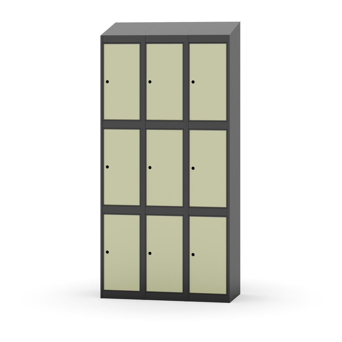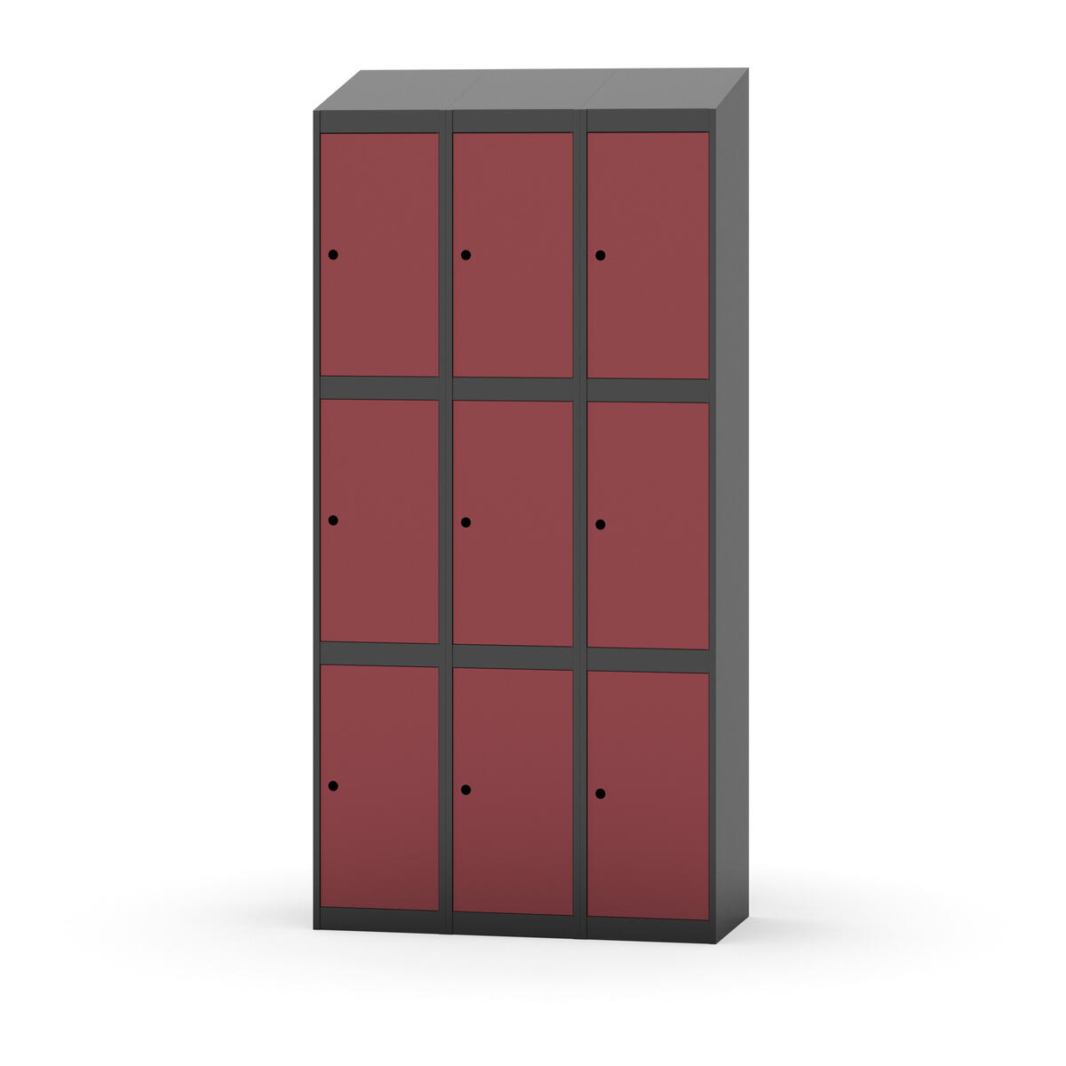Elevskab som er tilpasset de mest krævende skolemiljøer. Fuldsvejset stel med forstærket låge og karm. Vælg mellem låge i metal eller laminat. Metallågen er udstyret med dørstopper i stål, indvendig forstærkningsplade omkring låsehullet, dobbelte stålplader og en ekstra forstærkning mellem pladerne. Laminatlågen er indstøbt i en stålramme, som er udstyret med dørstopper i stål. Lågerne kan åbnes 90 grader. Indretning: Ingen. Plan bund uden kant. Ventilation gennem huller i top-/bundplade. Bemærk, at lås samt sokkel/ben bestilles på separate varenumre. Leveres med færdigmonteret lås. Det valgte understel monteres ved levering.