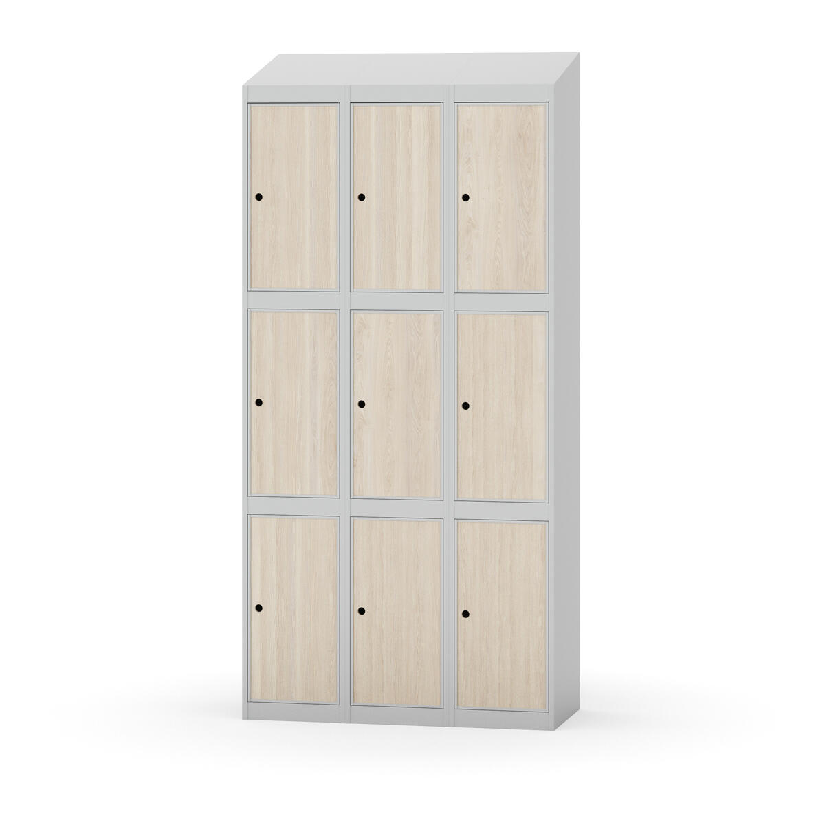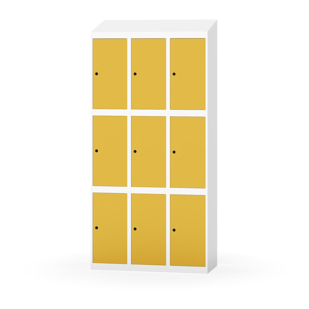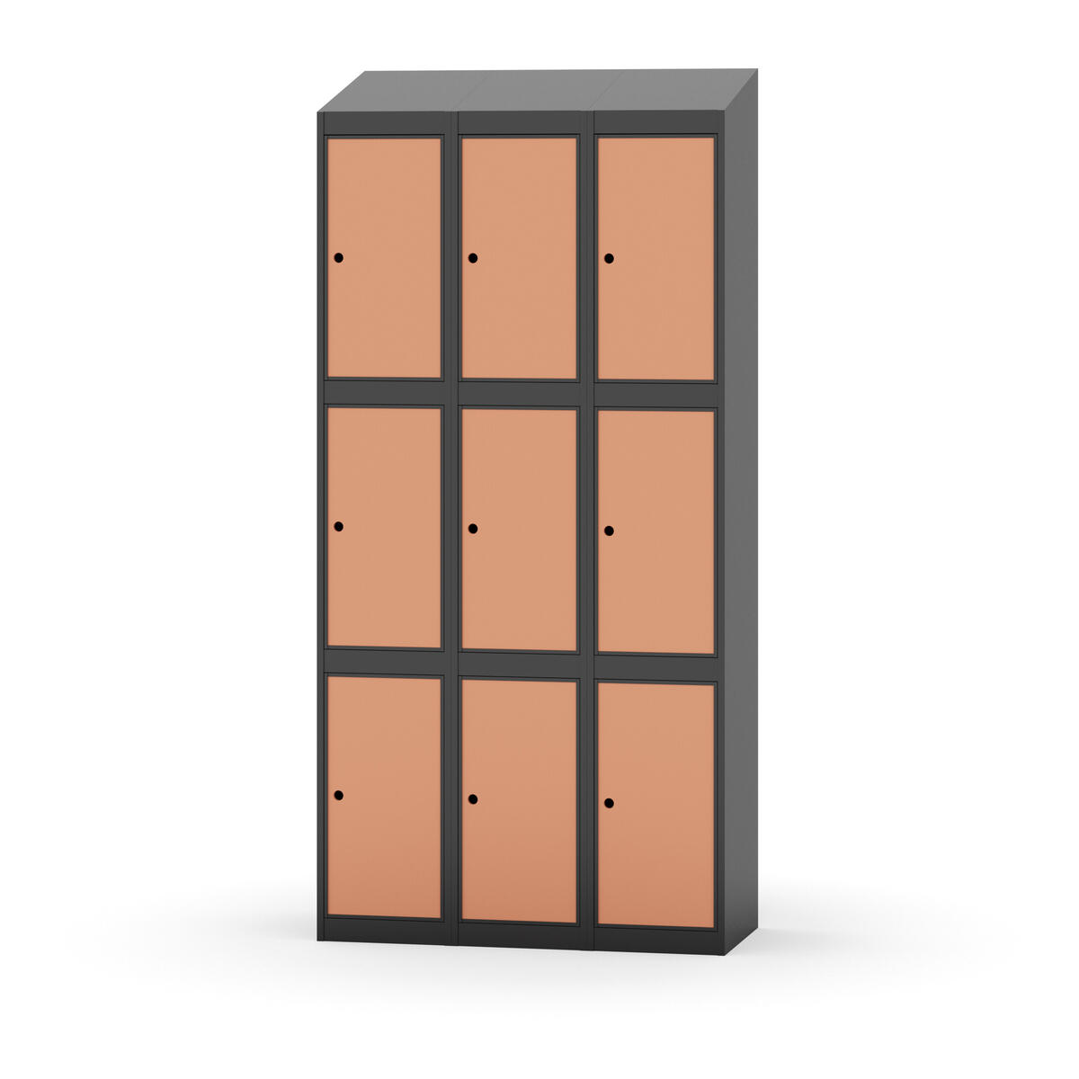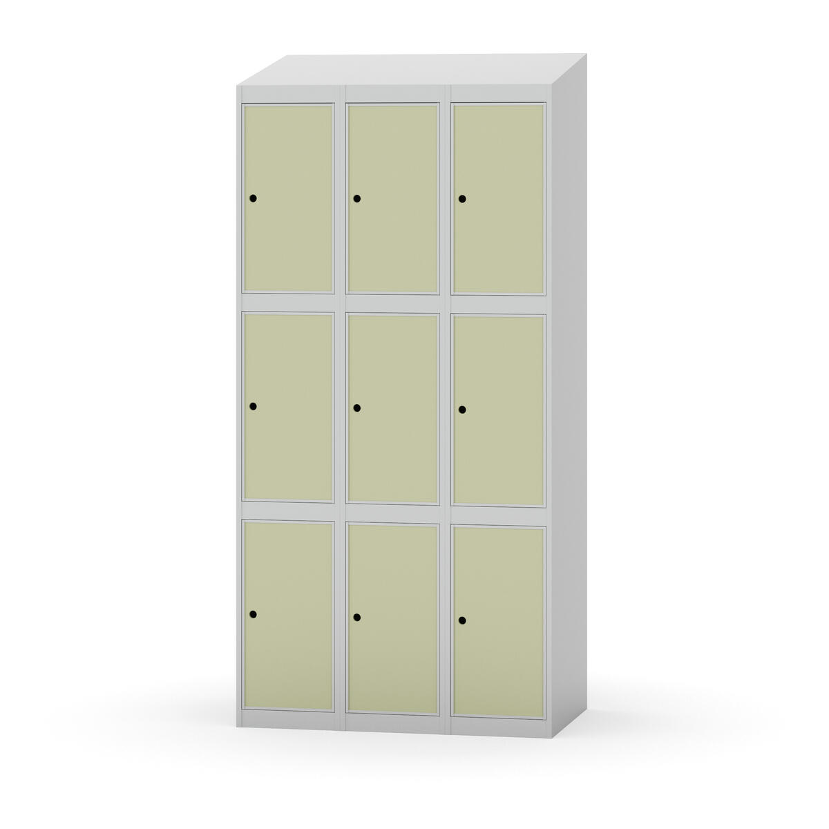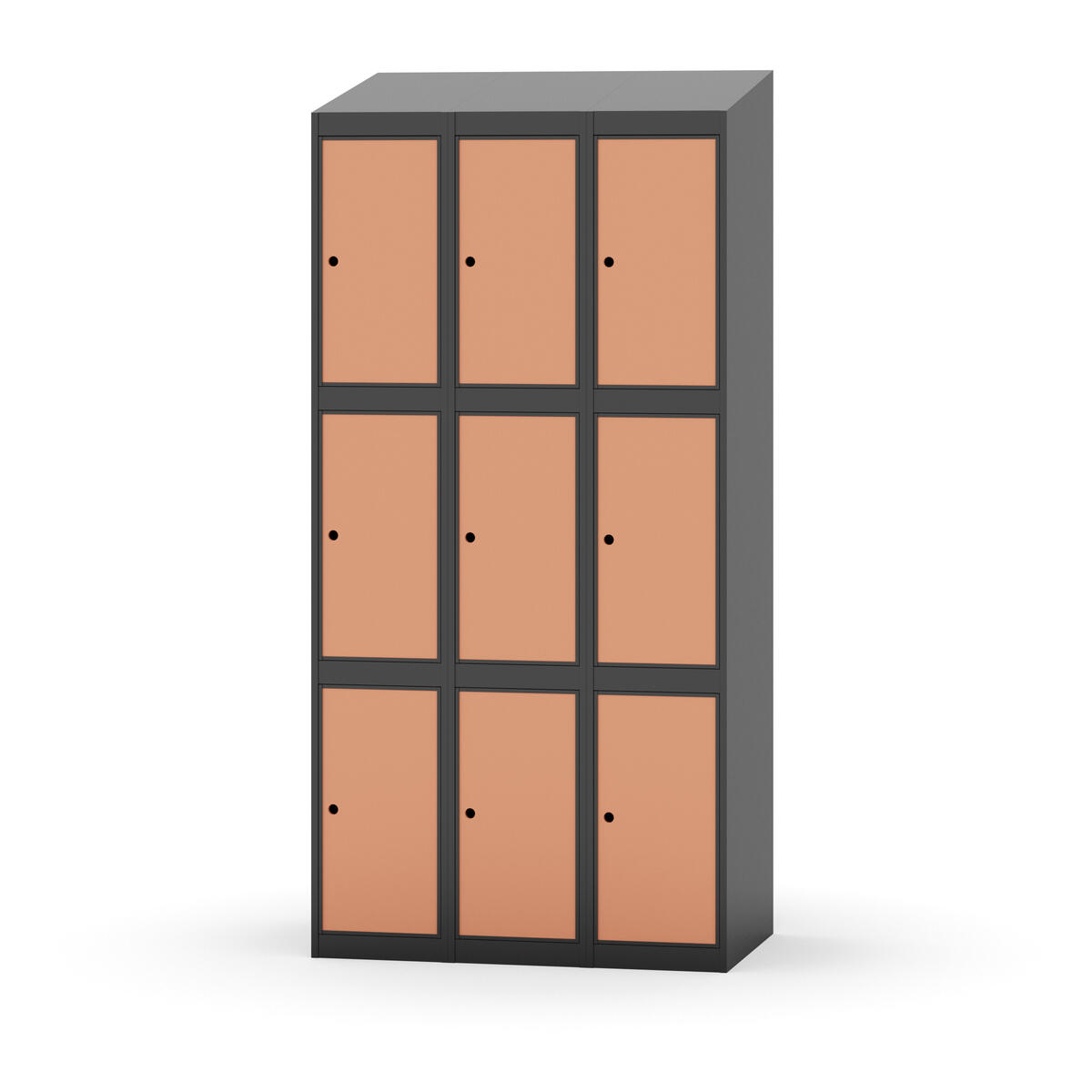 Elevskab som er tilpasset de mest krævende skolemiljøer. Fuldsvejset stel med forstærket låge og karm. Vælg mellem låge i metal eller laminat. Metallågen er udstyret med dørstopper i stål, indvendig forstærkningsplade omkring låsehullet, dobbelte stålplader og en ekstra forstærkning mellem pladerne. Laminatlågen er indstøbt i en stålramme, som er udstyret med dørstopper i stål. Lågerne kan åbnes 90 grader. Indretning: Ingen. Plan bund uden kant. Ventilation gennem huller i top-/bundplade. Bemærk, at lås samt sokkel/ben bestilles på separate varenumre. Leveres med færdigmonteret lås. Det valgte understel monteres ved levering.