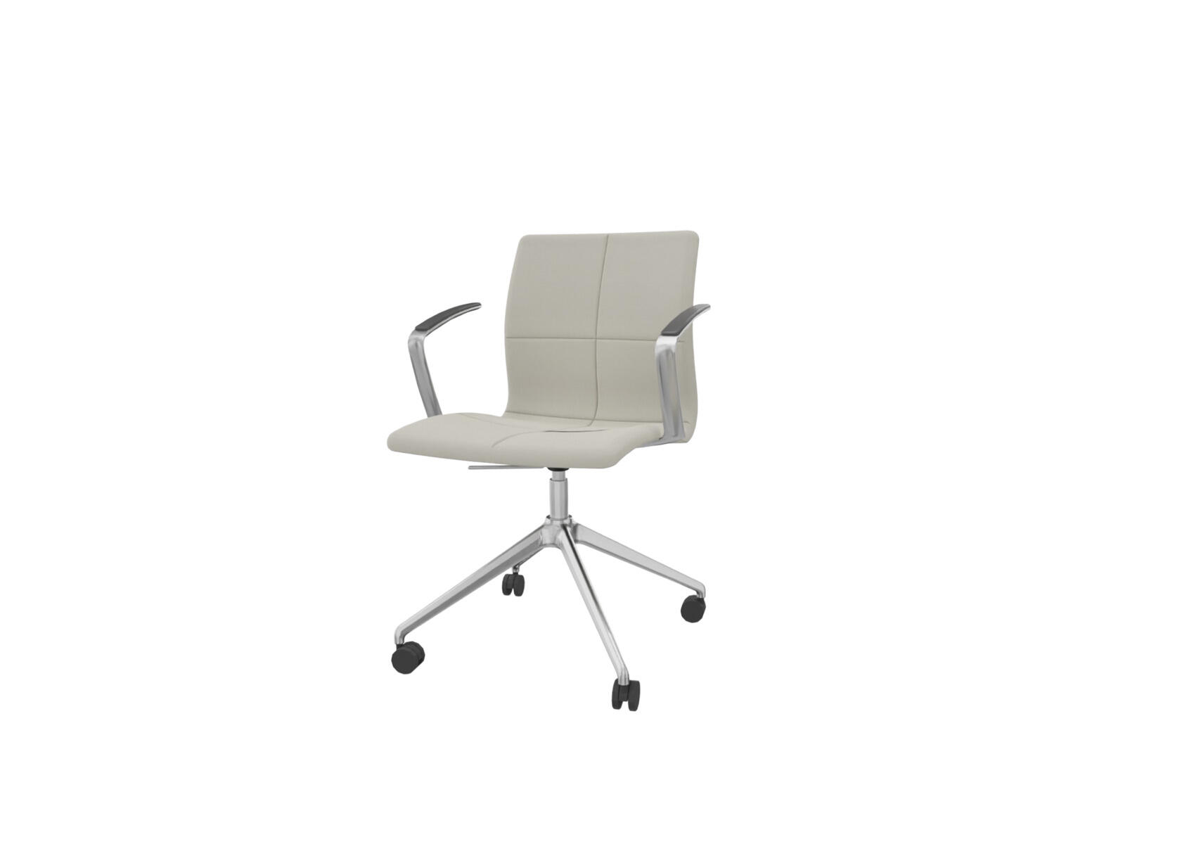 En tidløs, ergonomisk og komfortabel konferencestol til mødelokaler og konferencemiljøer. Den har en glat lav ryg og et sæde af formpresset finer polstret med koldskum, som sikrer både komfort og støtte. Vippefunktion med 7° bagud og 4° fremad. Poleret metalkryds med 4 hårde hjul til bløde gulve. For ekstra komfort kan armlæn tilkøbes som et tilvalg.