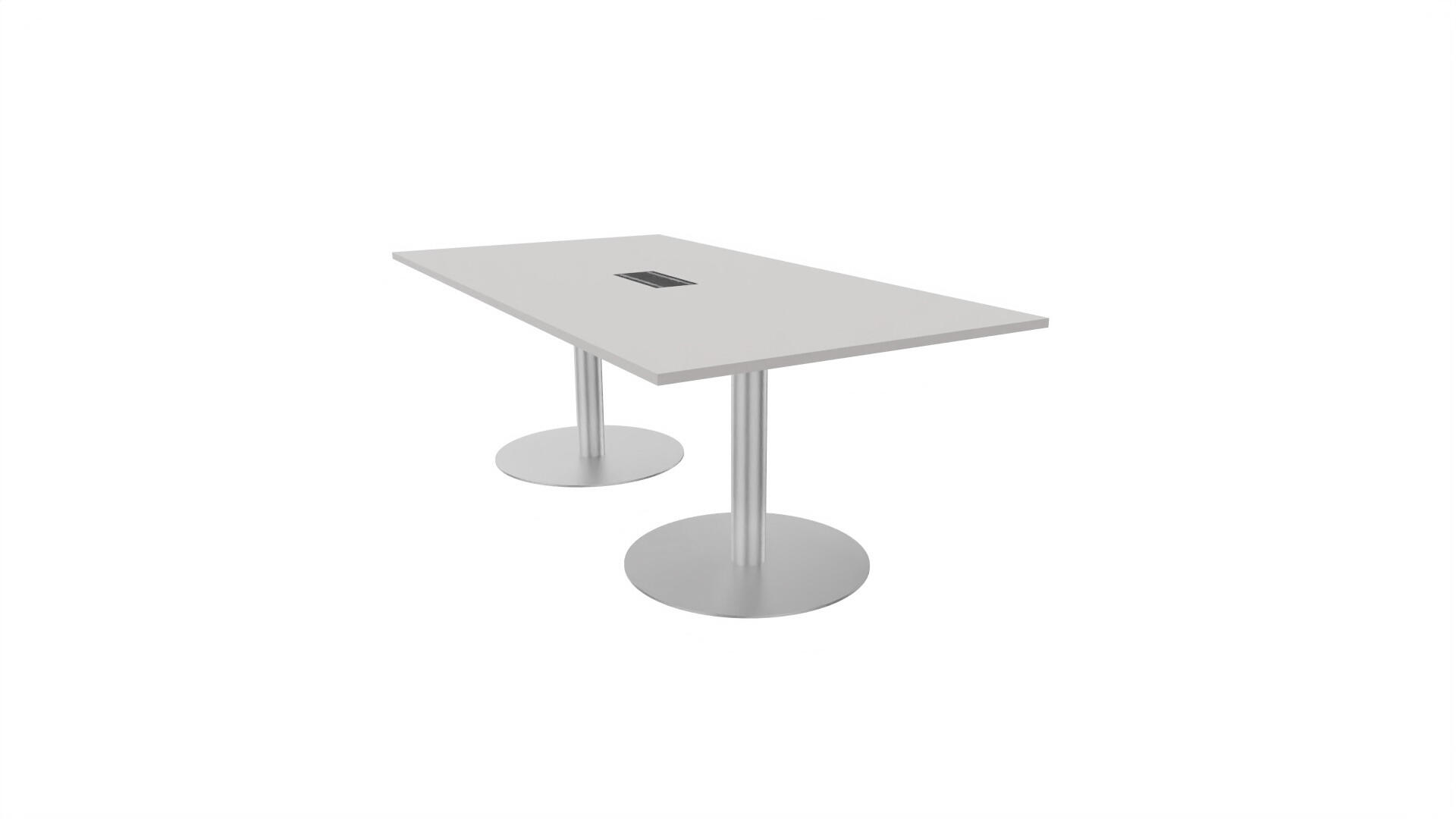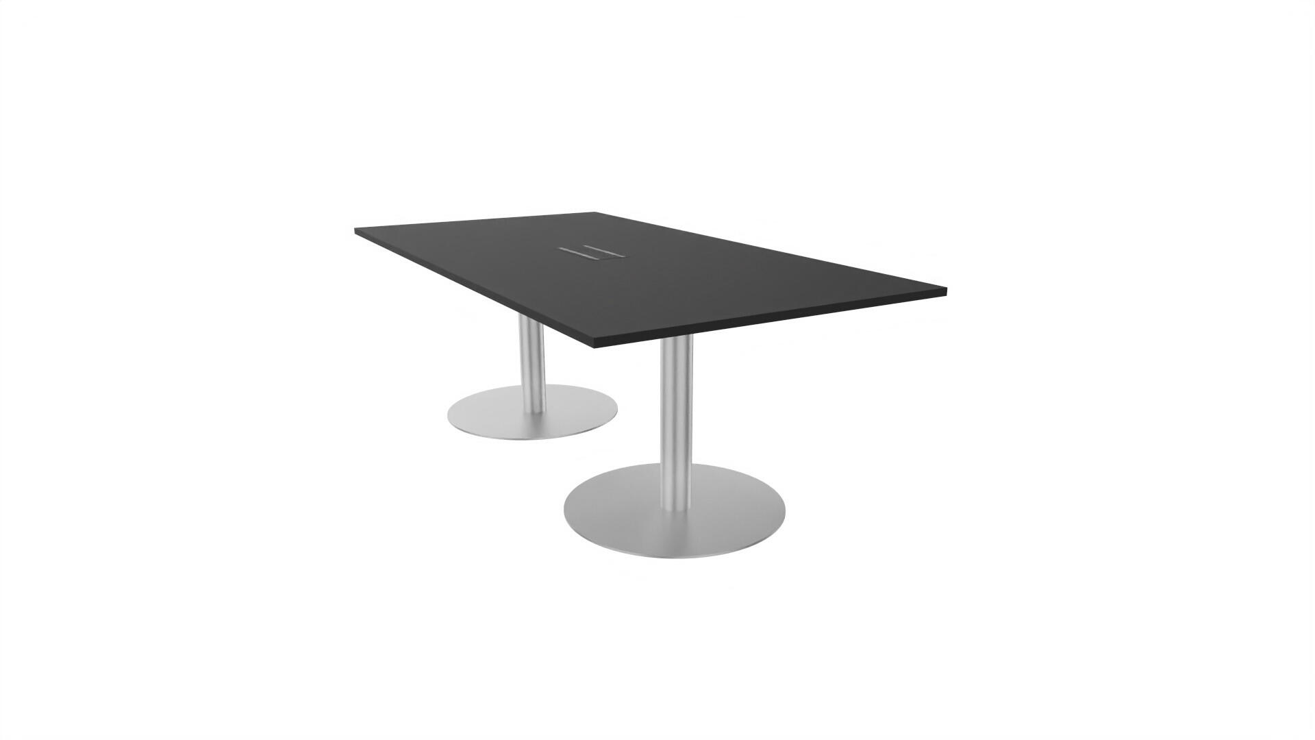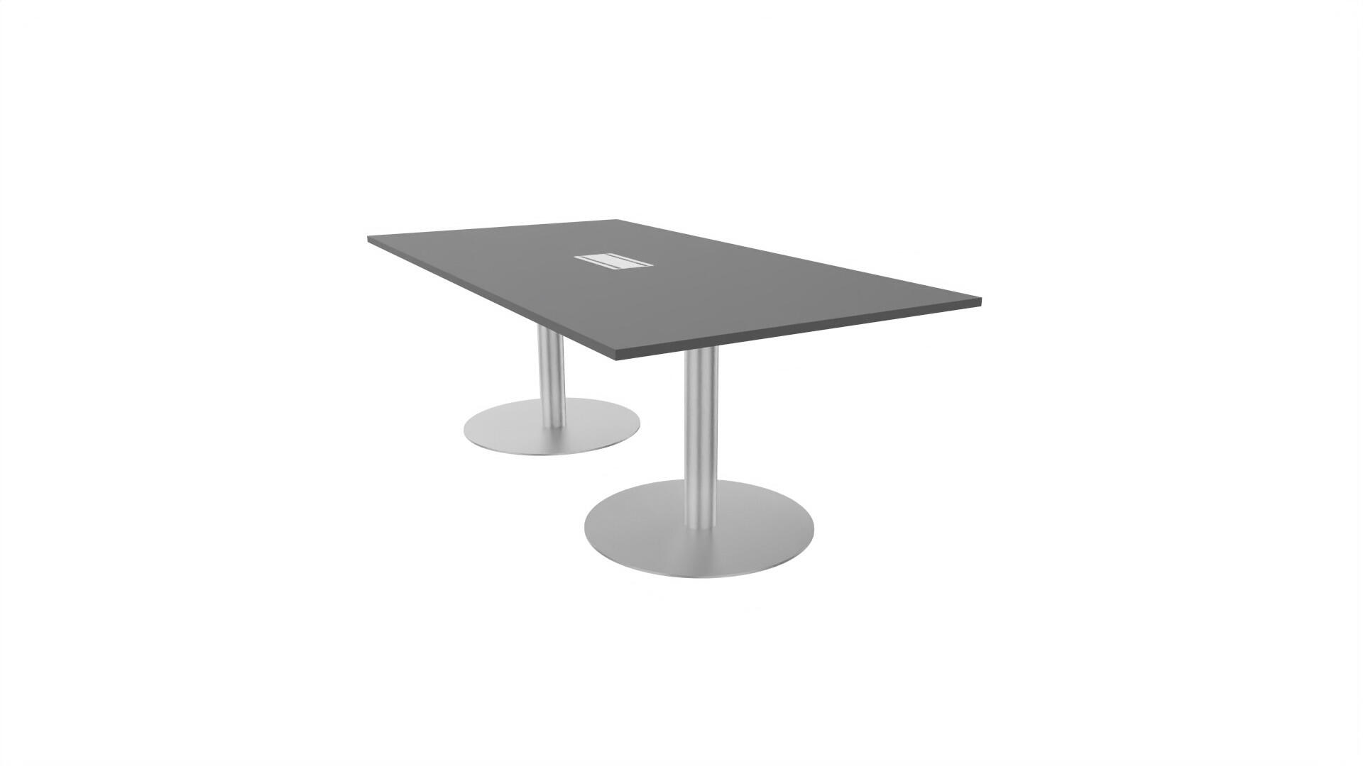 Et konferencebord med rektangulær bordplade og lige kant. Kerne af spånplade beklædt med laminat og ABS-kantliste. 2 søjleben Ø10,2 cm, fod Ø72 cm. Udover standardlaminat fås bordet også med et sort nanolaminat, som har en overflade, som er mat og modstandsdygtigt mod fingeraftryk. Som tilvalg fås også 2 mediabokse (32x15 cm) indfældet i bordet. Hver mediaboks består af 2x 230V stikkontakter, 1x USB og 1x HDMI.