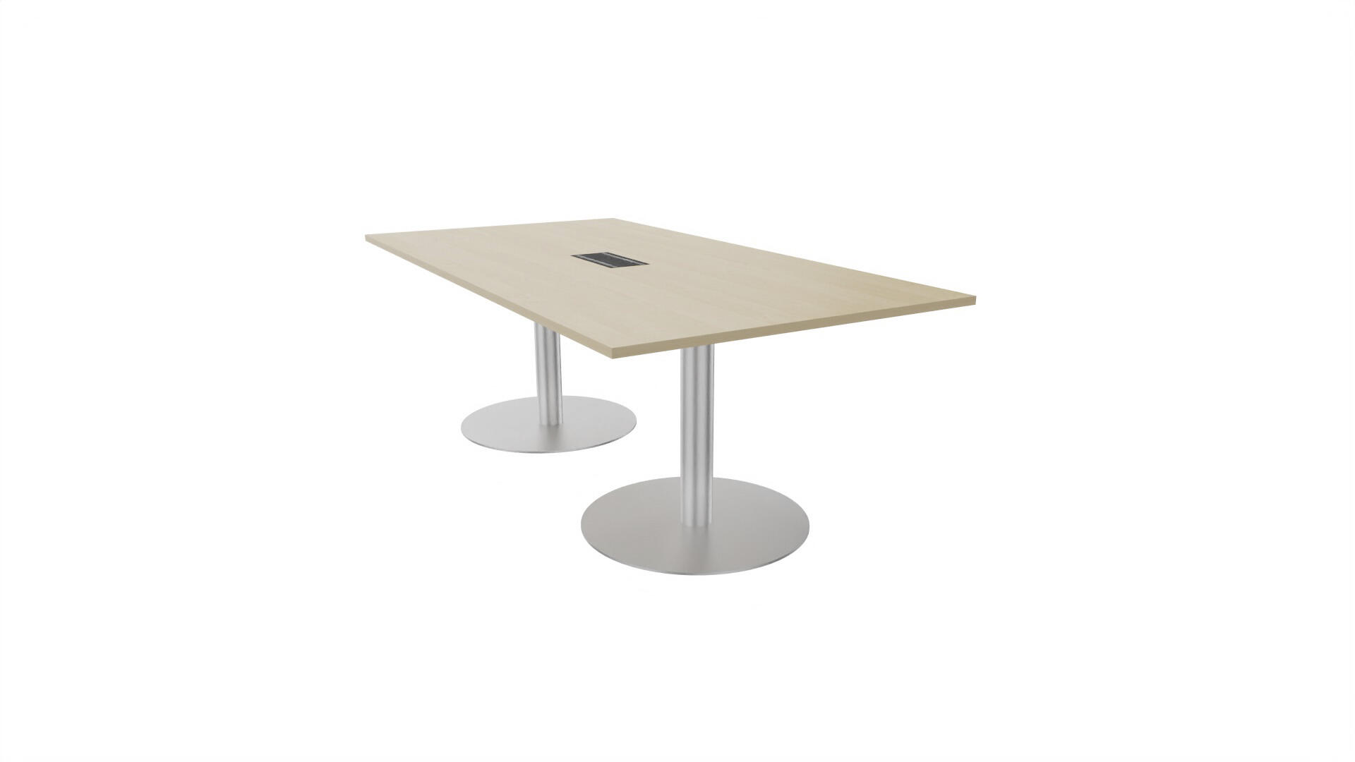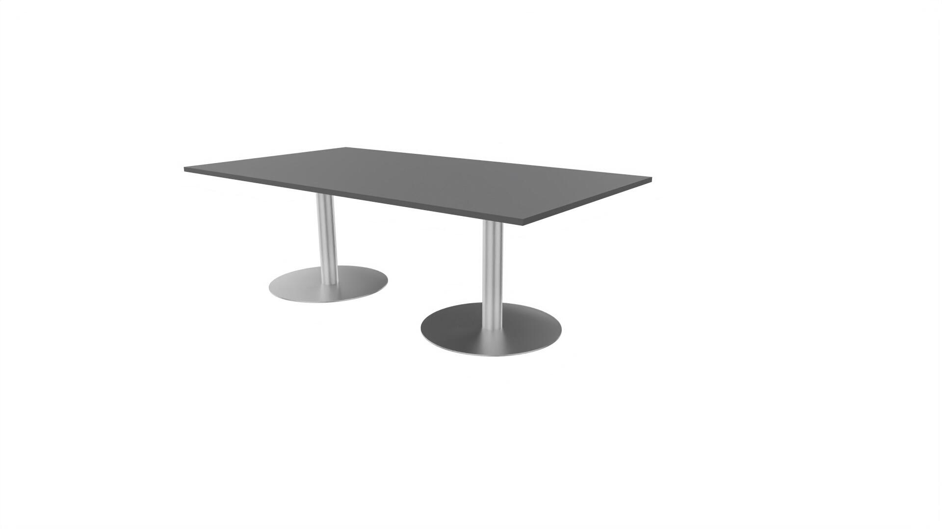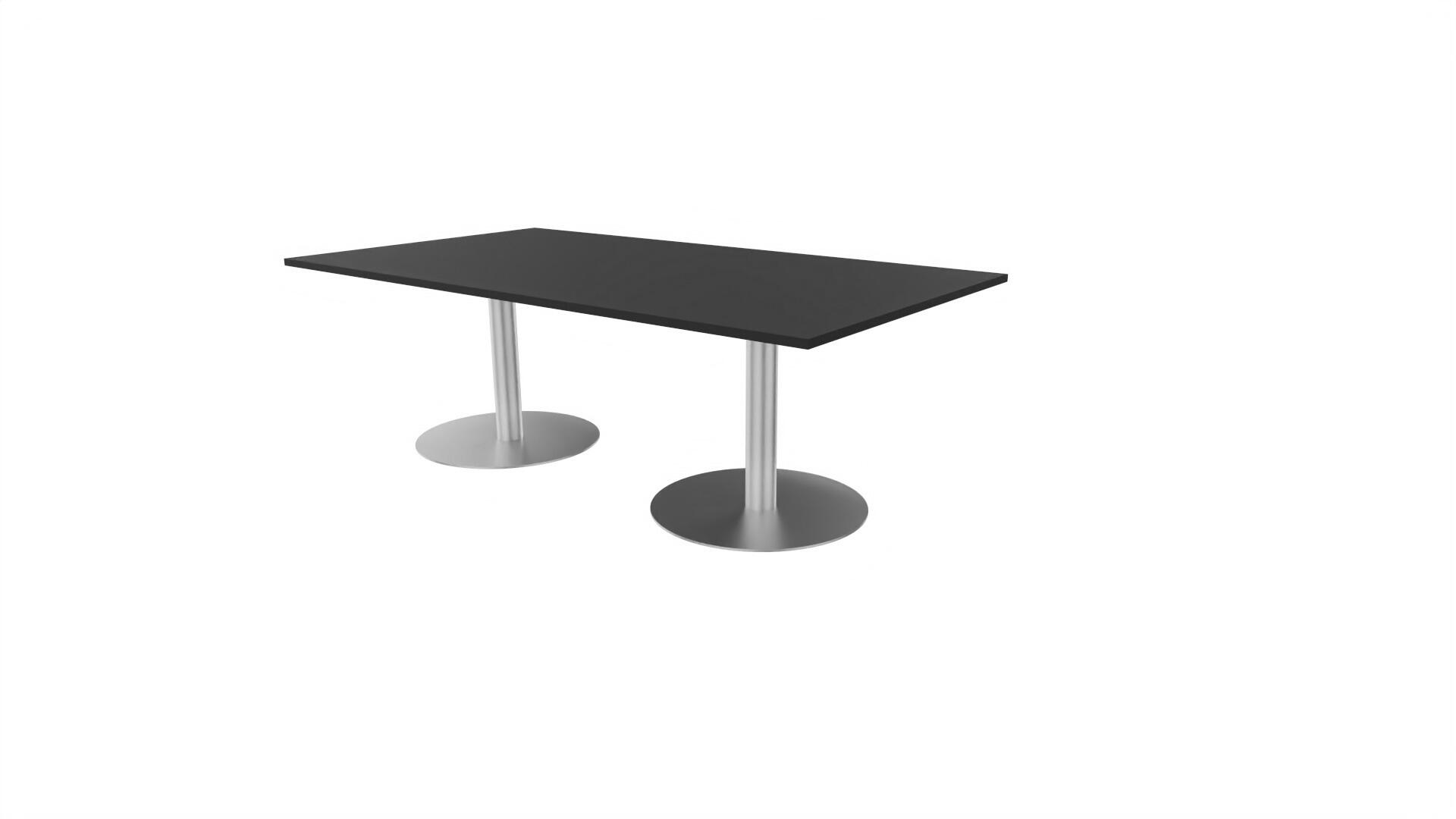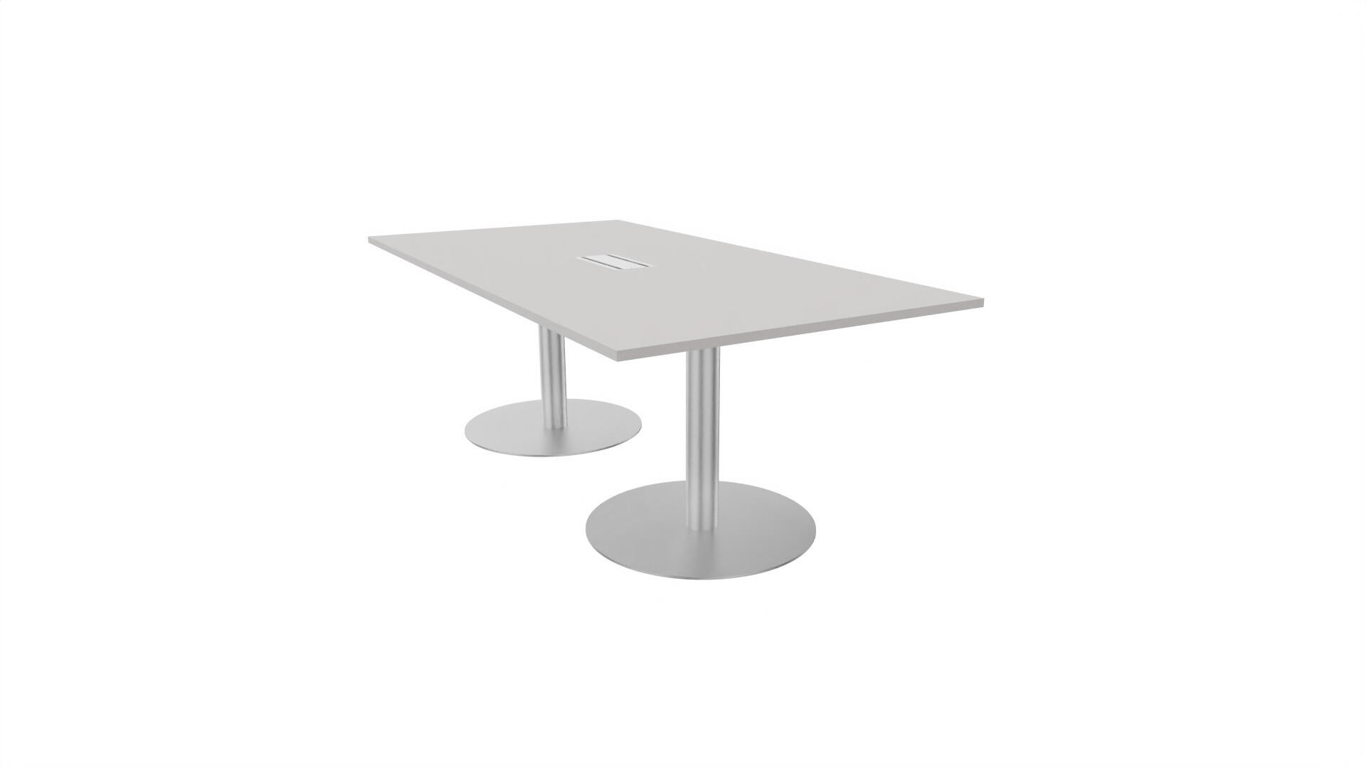 Et konferencebord med rektangulær bordplade og lige kant. Kerne af spånplade beklædt med laminat og ABS-kantliste. 2 søjleben Ø10,2 cm, fod Ø72 cm. Udover standardlaminat fås bordet også med et sort nanolaminat, som har en overflade, som er mat og modstandsdygtigt mod fingeraftryk. Som tilvalg fås også 2 mediabokse (32x15 cm) indfældet i bordet. Hver mediaboks består af 2x 230V stikkontakter, 1x USB og 1x HDMI.