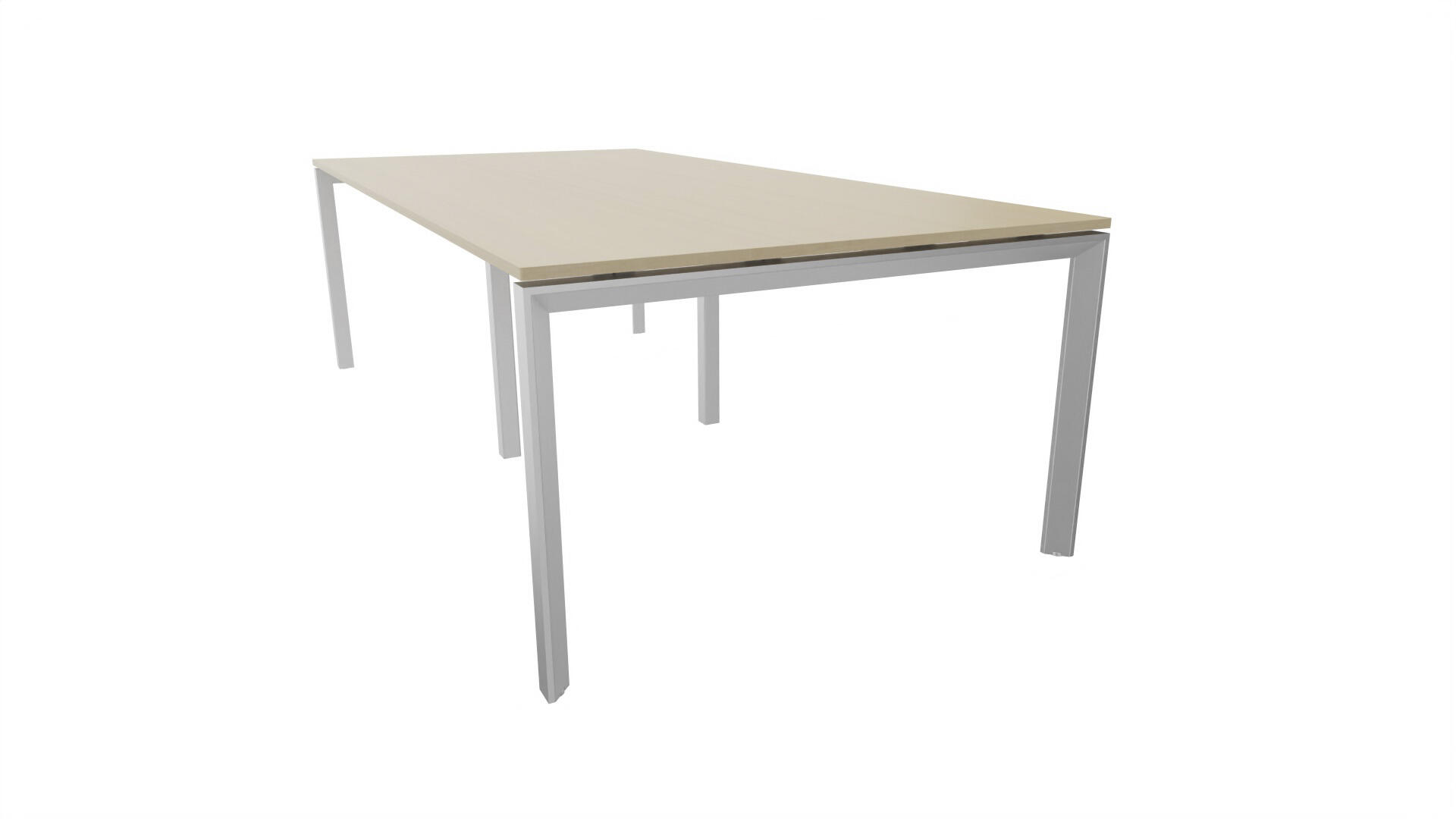 Et konferencebord med rektangulær bordplade og lige kant. Kerne af spånplade beklædt med laminat og ABS-kantliste. 2 søjleben Ø10,2 cm, fod Ø72 cm. Udover standardlaminat fås bordet også med et sort nanolaminat, som har en overflade, som er mat og modstandsdygtigt mod fingeraftryk. Som tilvalg fås også 2 mediabokse (32x15 cm) indfældet i bordet. Hver mediaboks består af 2x 230V stikkontakter, 1x USB og 1x HDMI.