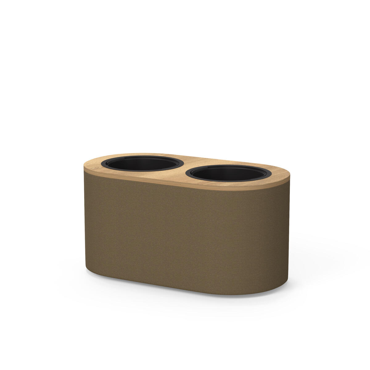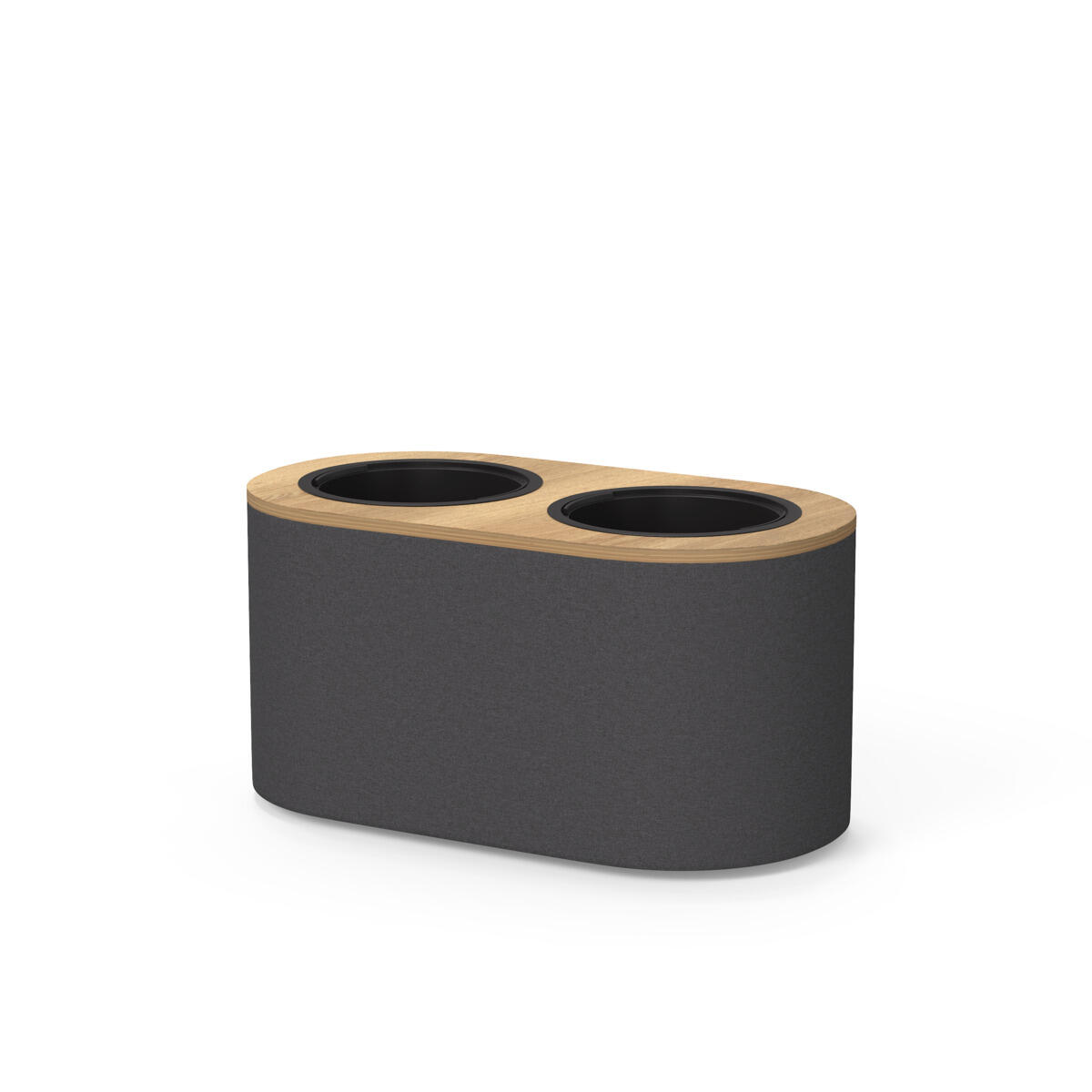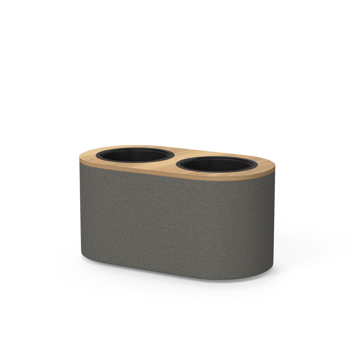 Elegant rumdeler på hjul, betrukket med tekstil og designet til at kunne kombineres med planter. Den medfølgende plastindsats har indfældet håndtag, så den let kan løftes ud og sættes tilbage. Perfekt til at skabe fleksible og grønne rumløsninger. Mål på plastindsats: B24/22 x D24/22 x H20 cm.