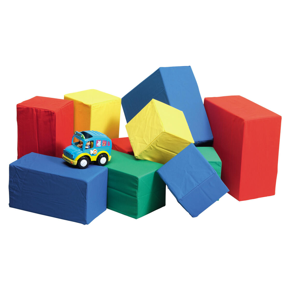 10 stk./pk. Beklædt med aftageligt bomuldsbetræk, som kan vaskes ved 60°C. Økotex. Indhold: 4 stk. 20x20x20 cm, 4 stk. 40x20x20 cm, 2 stk. 40x40x20 cm. Ass. farver. Vægt ca. 6 kg.